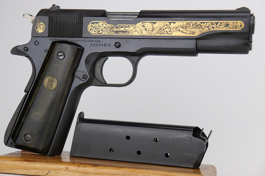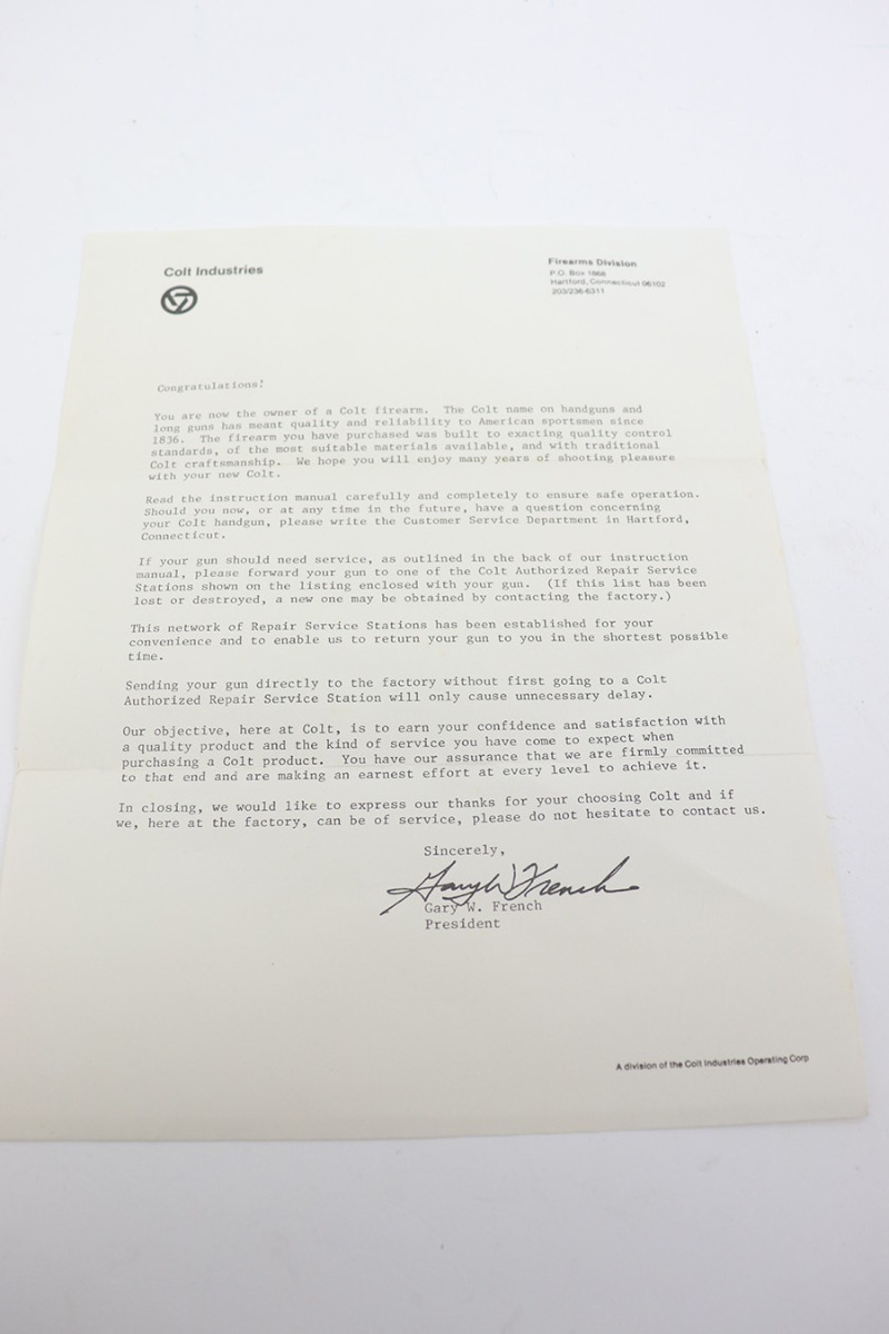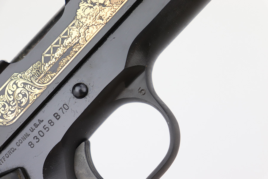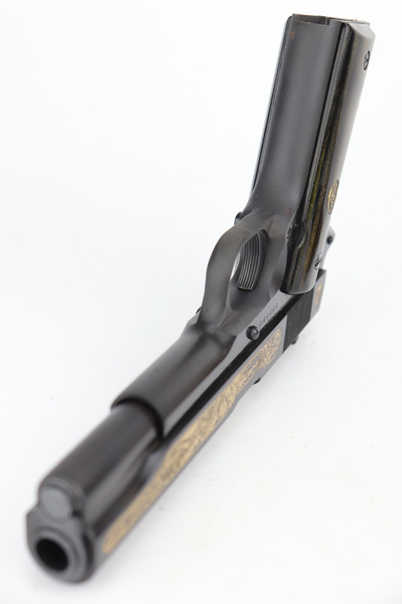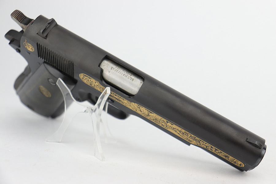 6/15/23 – This is a rare series 70 Colt that was made to commemorate the O.S.S, which was the predecessor to the C.I.A. Only 250 of these were produced, and this one is in nearly unfired condition aside from some rust that got on the hammer from moisture exposure. The listing includes the original box and Styrofoam insert, and the box has the matching serialized label (though it has fallen off). These were also sold with a briefcase that had a book on OSS history and a mag pouch but only the briefcase remains with this listing.