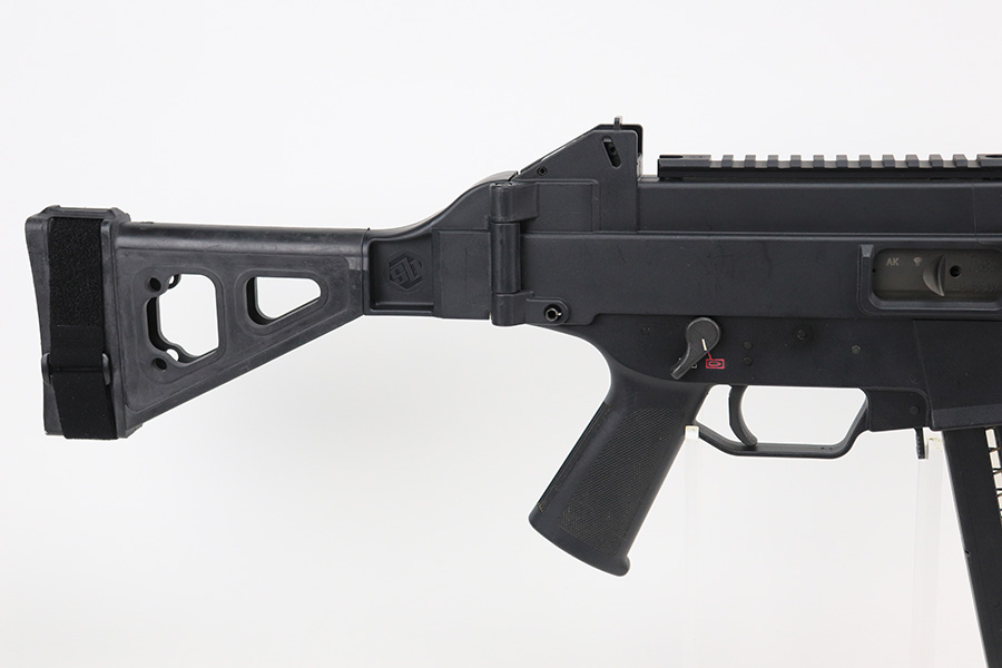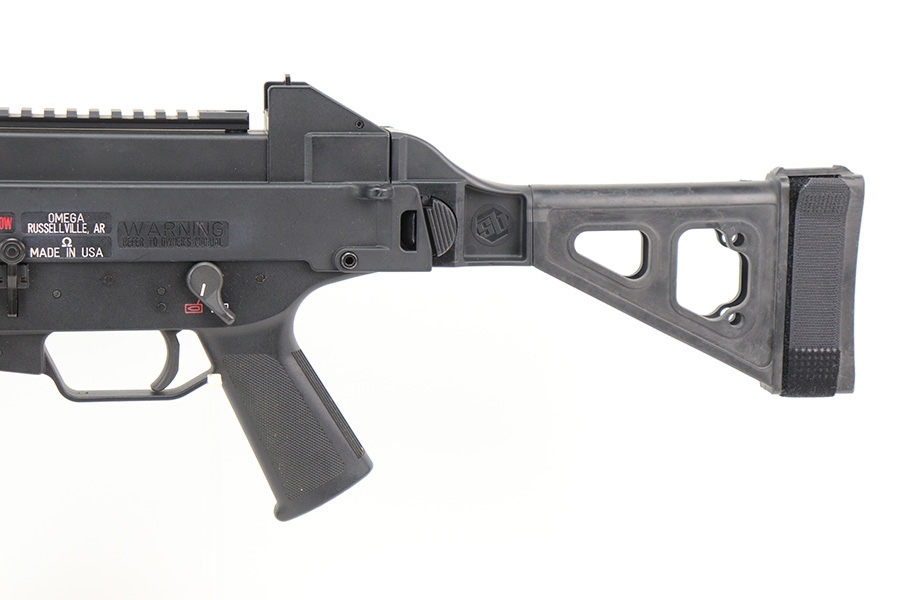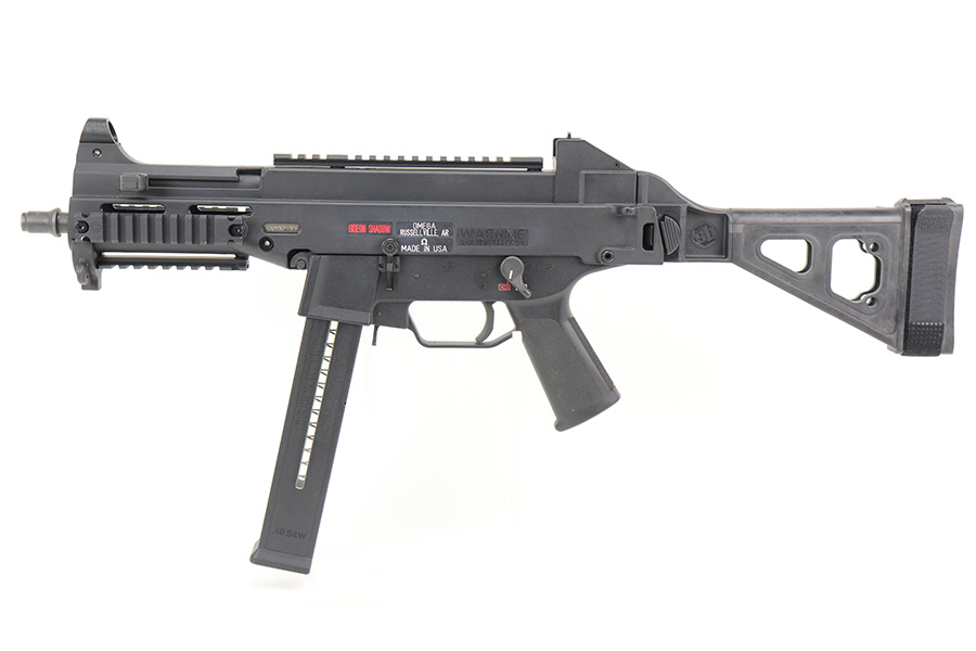 5/9/22 – This is a near-mint example of an Omega Gideon Shadow AR Pistol. The Omega Gideon Shadow (GS) pistol is recoil operated, closed bolt, lightweight, durable and easy to maintain semi auto pistol. Weighing in at less than 5 lbs. the Omega GS pistol is a superior subgun range performer and is 1.5 pounds less than the MP5 . Each Omega GS pistol receiver is made from high impact glass reinforced polymer. A superior pistol platform providing enhanced strength, durability, light and nimble operation. The Omega GS pistol is a highly effective range performer sure to please shooters of any background or shooter skill level. Comes with one HK-made magazine. Built by Omega. Some parts are made by HK and marked as such. Comes with SB Tactical brace and rails. The gun is in like-new condition with just some minor scuffs here and there. Minty bore. Each pistol covers 3 of the most popular calibers in 9mm, .40 and .45 respectively. The end user can simply swap the barrel, bolt and magazine and the end user can change the caliber in a matter of minutes. This one is set up for .40 S&W.