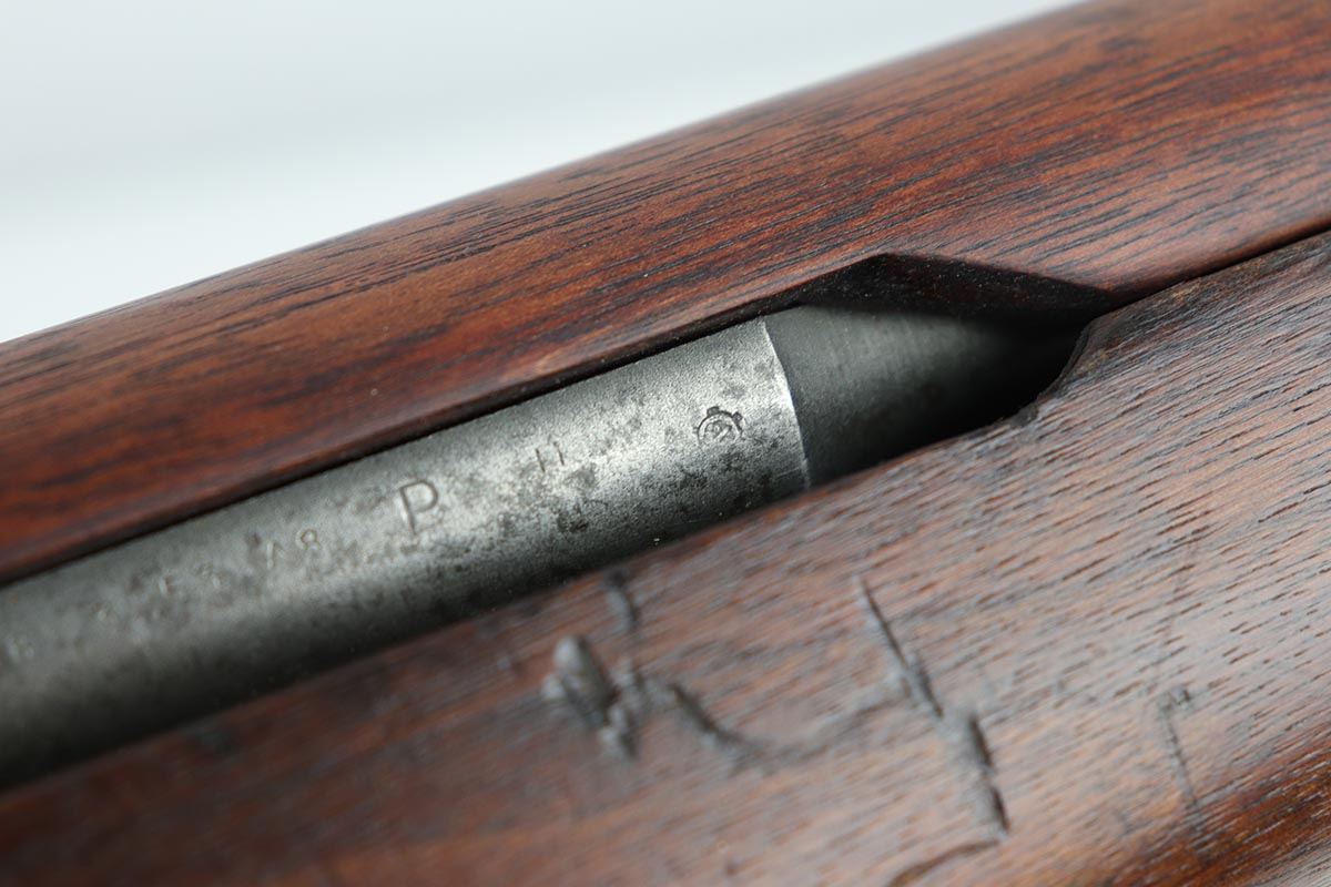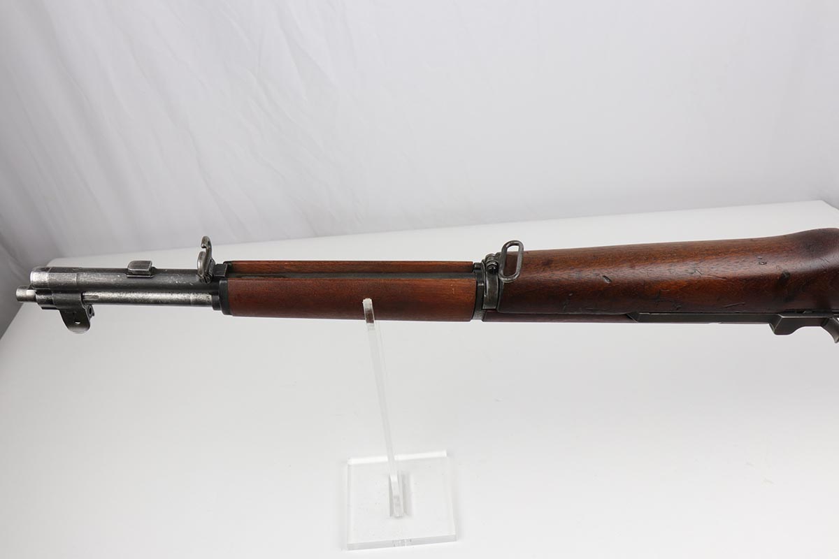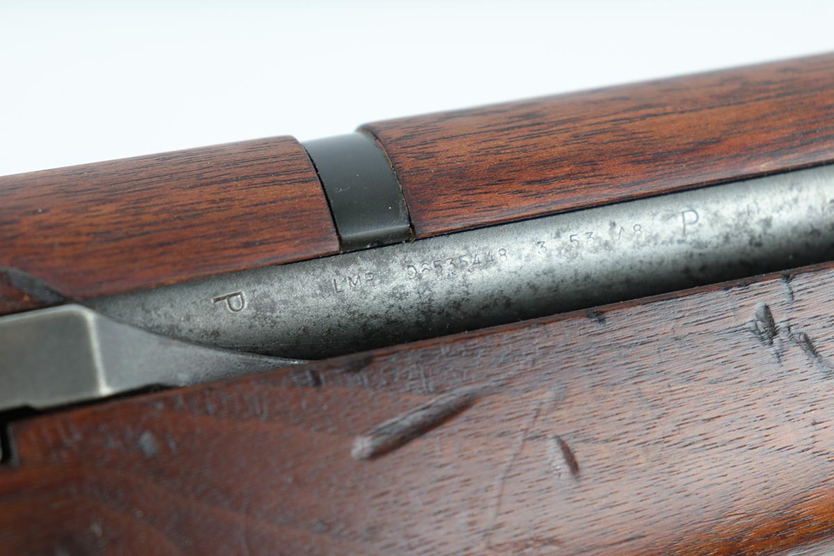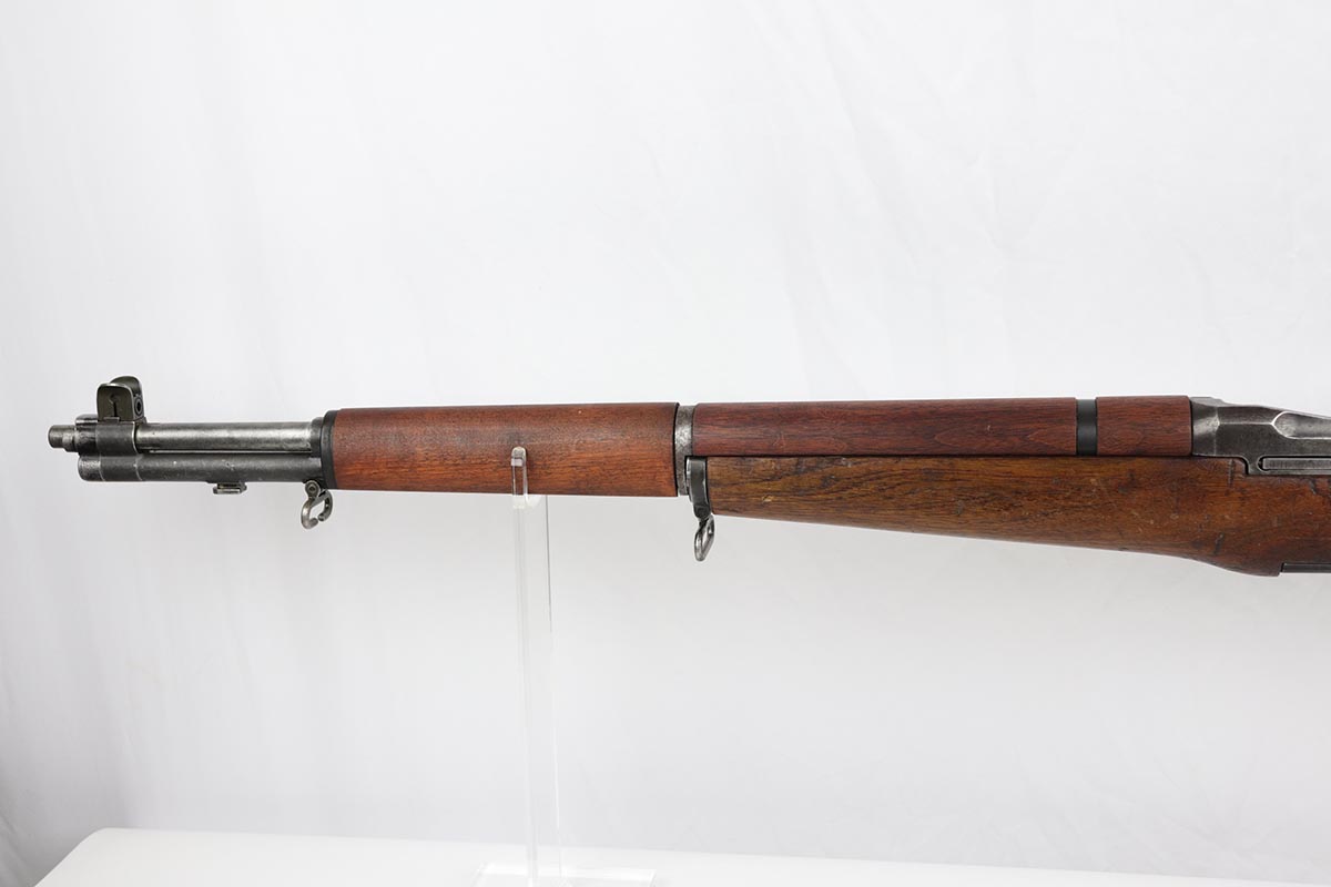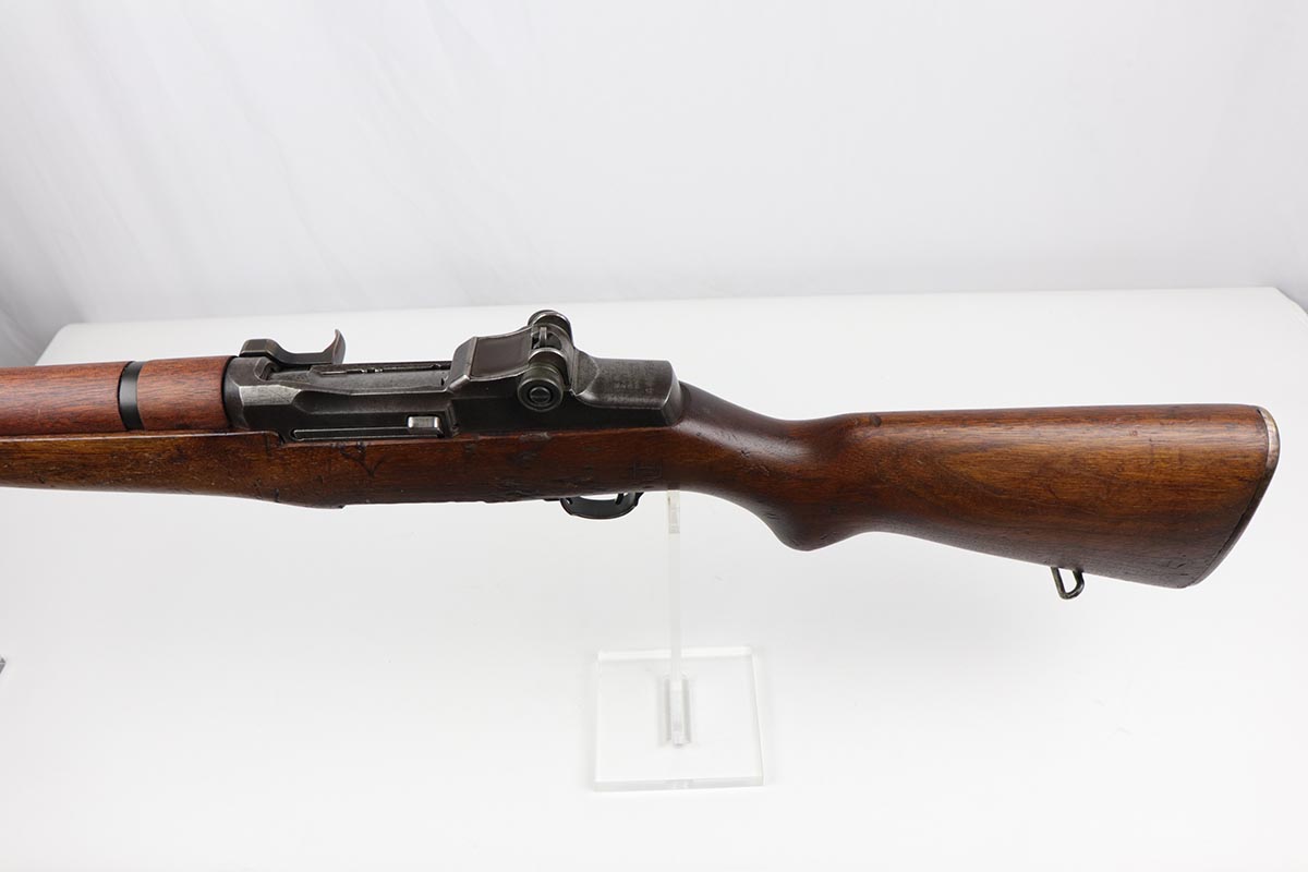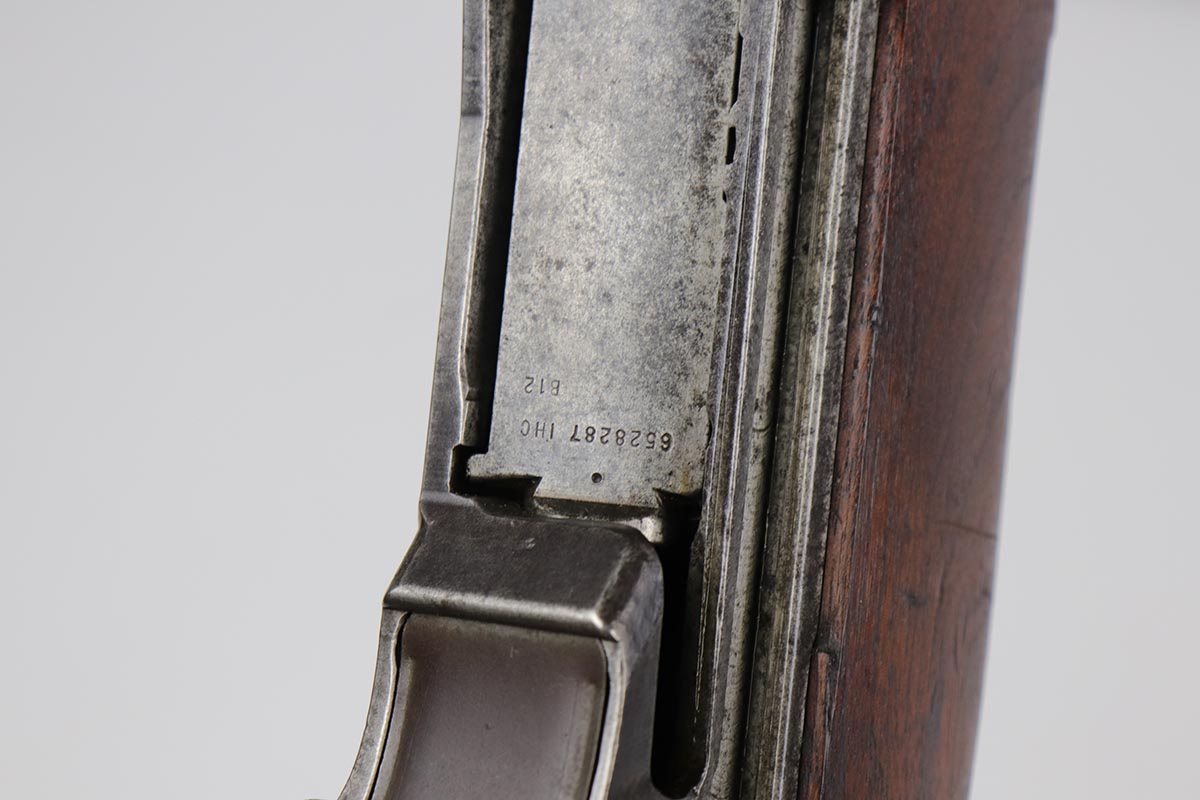 7/19/19 – This is an all original, all correct International Harverster (IHC) M1 Garand, manufactured in March of 1953. The receiver, barrel, stock, and all internal parts are correct and matching. Overall, the gun is in good condition except for some spotty discoloration and patina on the receiver throughout, significant thinning of the finish on the barrel, and muzzle wear. The stock is in good condition. There some small surface handling marks throughout, but no major scratches or dents. The cartouche on the left side of the stock and the “P” marking just behind the trigger guard are visible and crisp. The bore is in decent condition – strong rifling, 7.5/10. The gun is fully operable and the action is smooth. The gun does not come with a sling. C&R eligible.