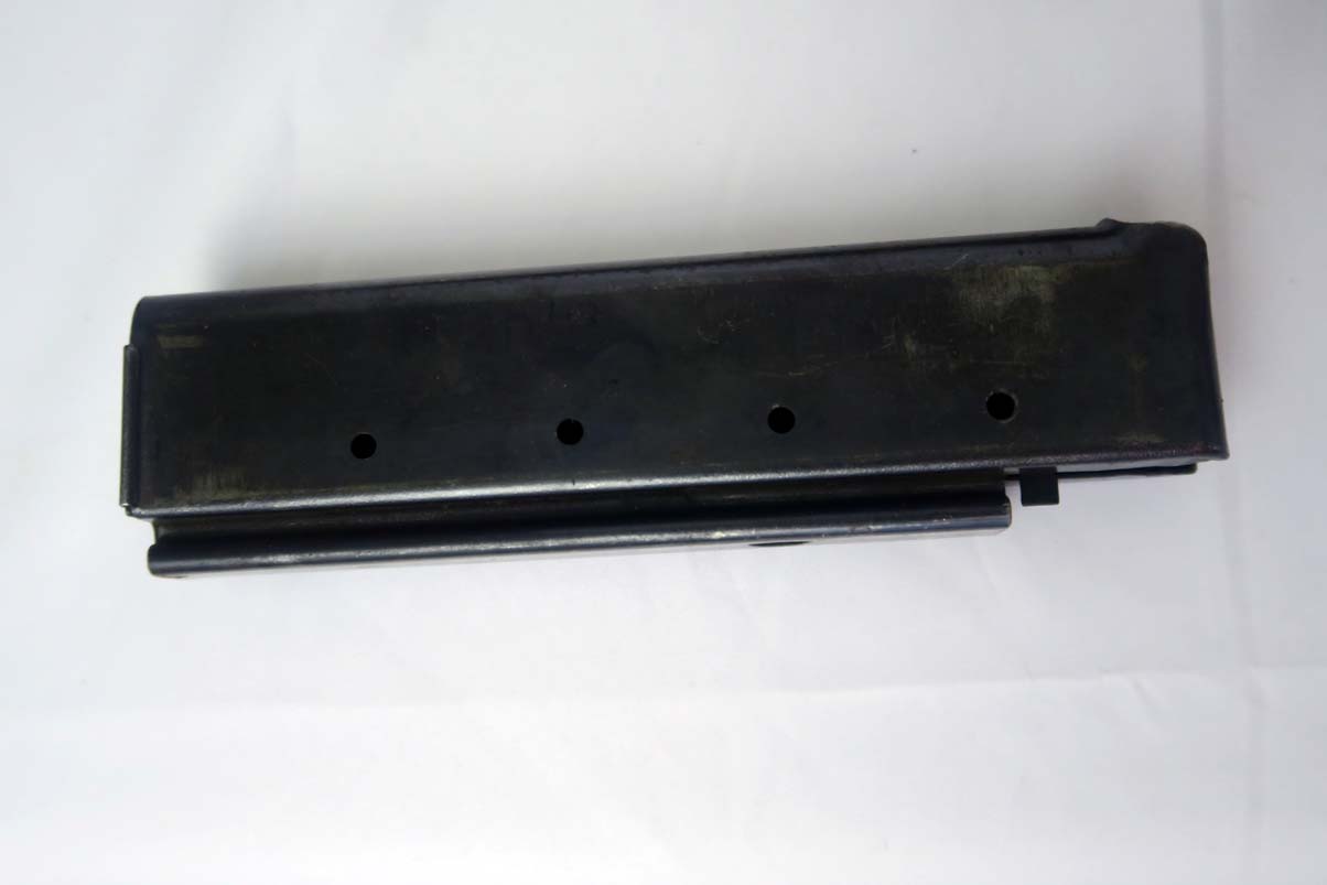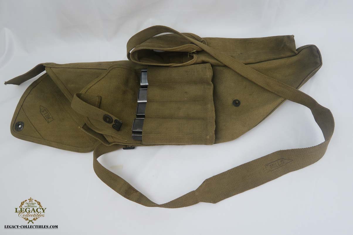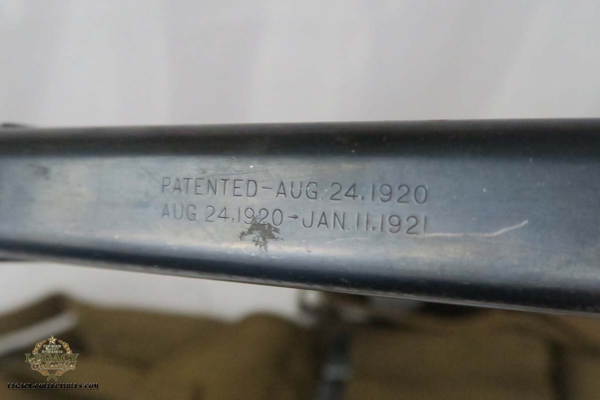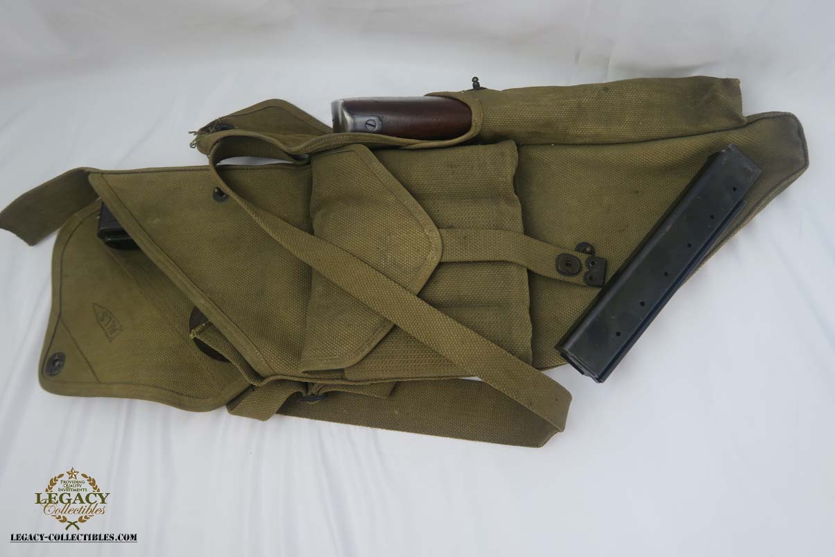 1/16/17 – This is an original fully automatic Thompson Submachine Gun from 1921/1928!  It is an early Navy as it has you can see where it was original stamped 1921 and then restamped to be 1928.  It is in very good condition with about 95% of its original finish.  Nice wood and all original.  This was a popular rifle during WWII and probably best known from the gangster films.  It is .45 caliber and comes with 4 original 20 round magazines.  There is also a post-war 30 round magazine.  It comes with an original carrying case.  Fits the gun and four magazines.  The bore is very nice with strong rifling.  This requires a Class 3 permit for purchase as it is full auto.  Great chance to own the iconic Thompson Submachine Gun!