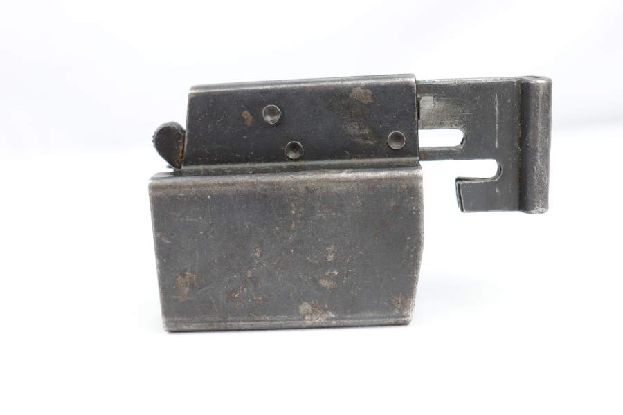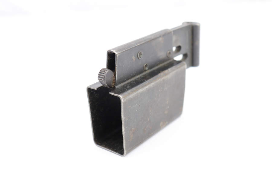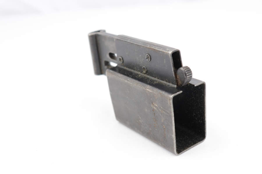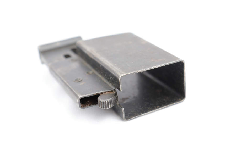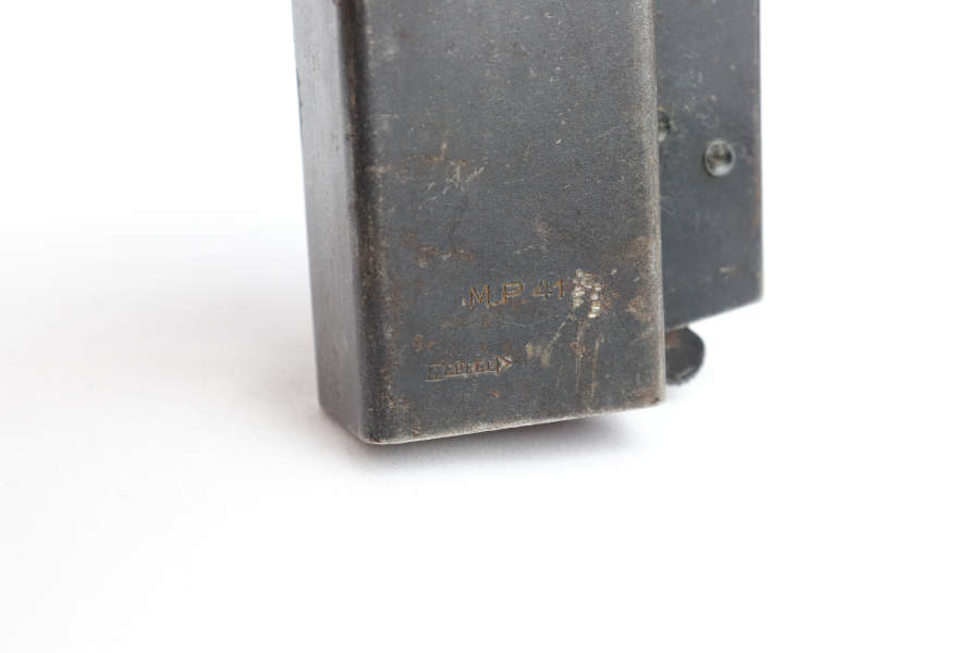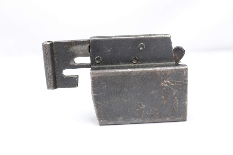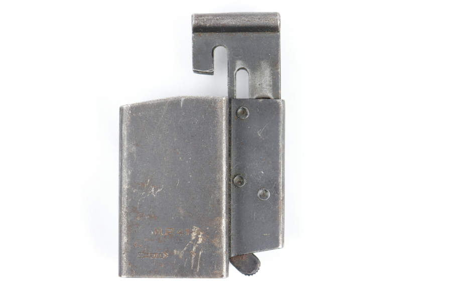 01/06/20 – This is an original WW2 MP41/40 magazine loader in excellent condition. Although it is stamped MP41 it is functional for the MP38 and MP40. It is maker marked by Haenel. The loader has a very smooth action with very little wear. There is some slight scratching and has a few dents next to the MP41 stamp.