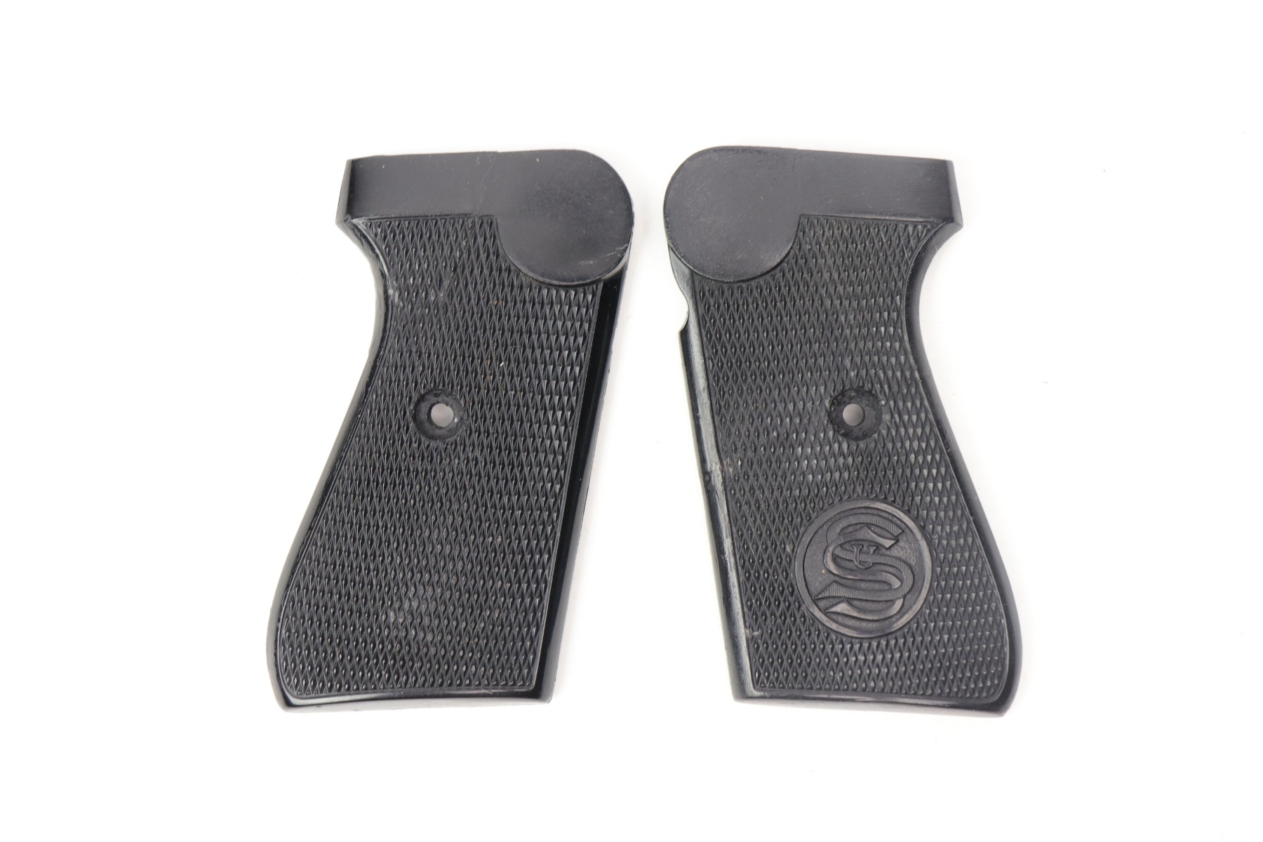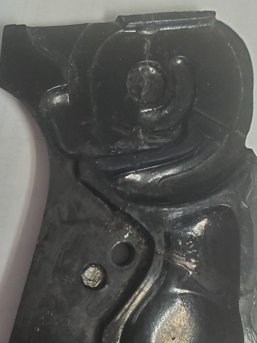 8/17/20 – This is an original pair of WW2 era Sauer 38h grips. The original Sauer 38h grips are very hard to find. These grips have been repaired, as shown on the interior of the grips. The repairs are not visible on the exterior of the grip panels, except maybe a small line on the right panel.