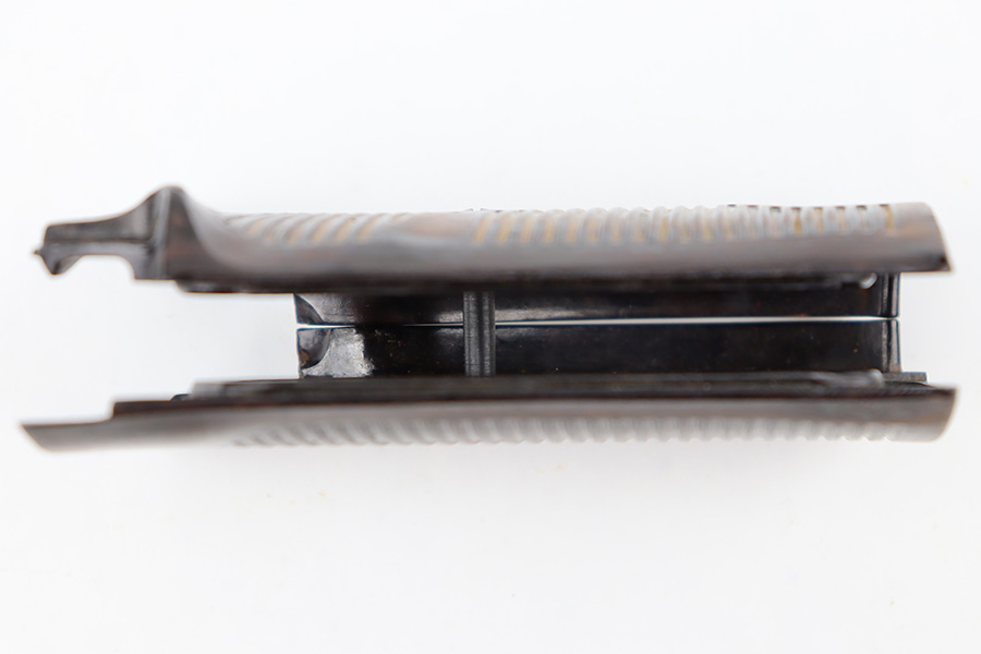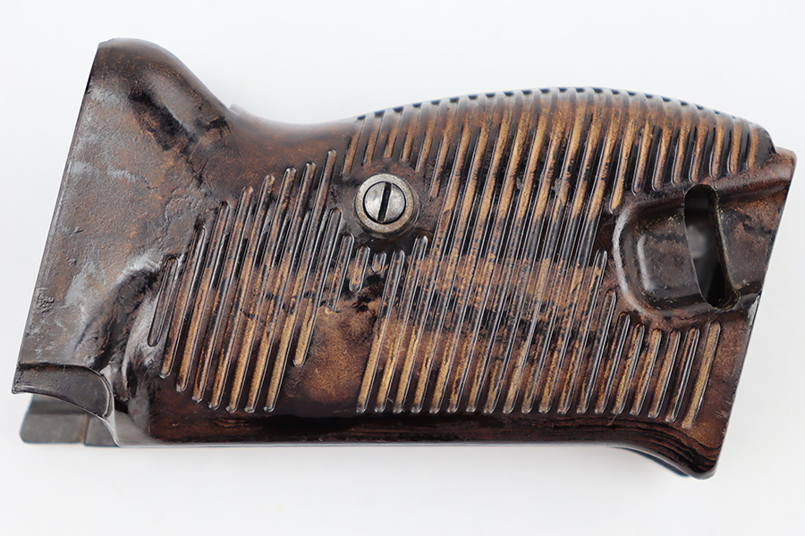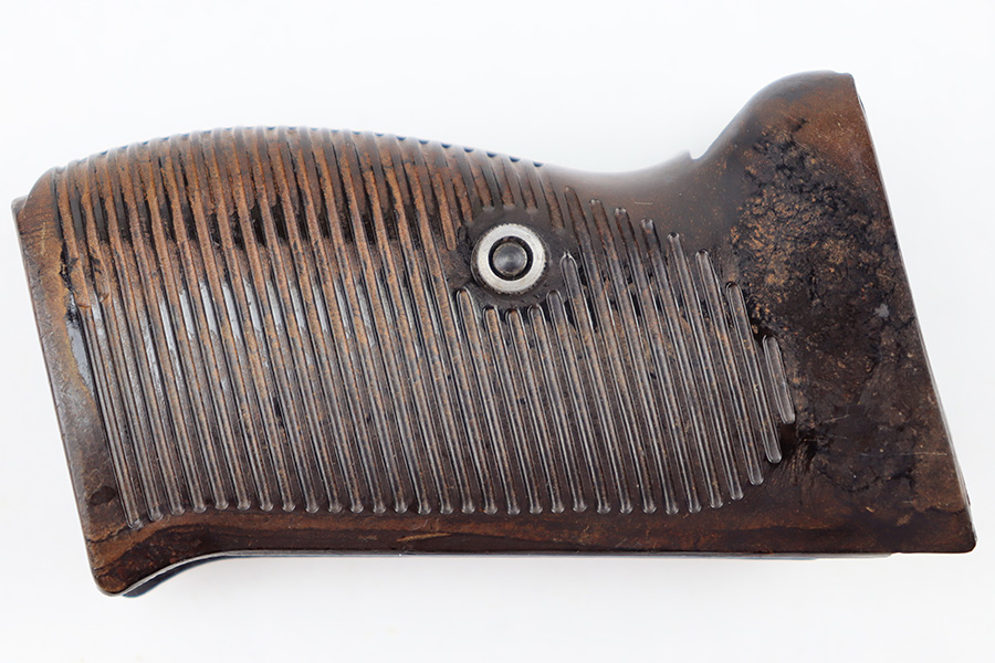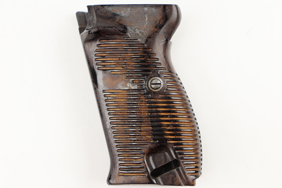 9/7/23 – This is an original pair of WW2 production P.38 grips. Great for Mauser or Walther examples. No cracks or chips, and 5 broken lines around the screw escutcheon. Some mild discoloration but no major issues. Comes with an original screw as well.