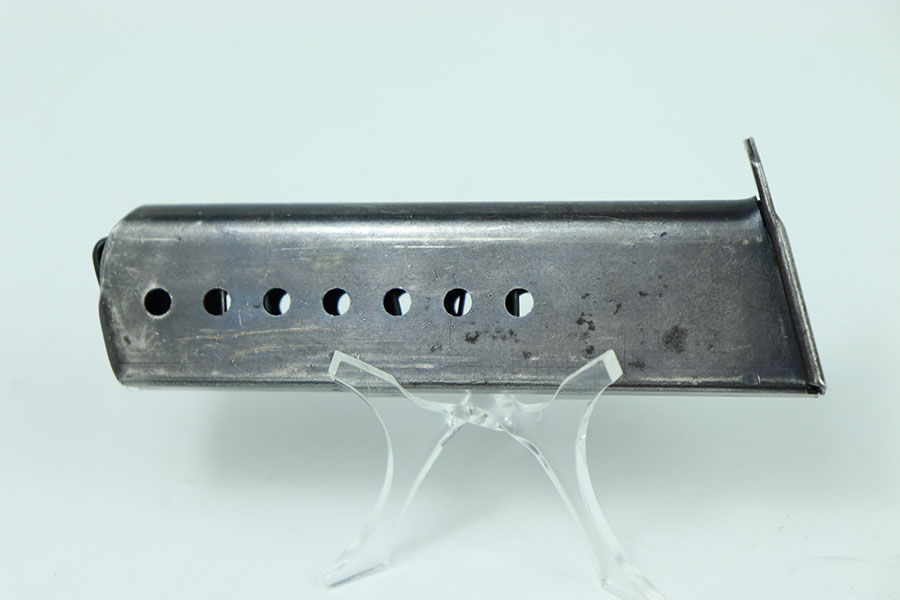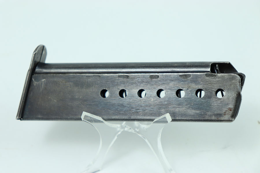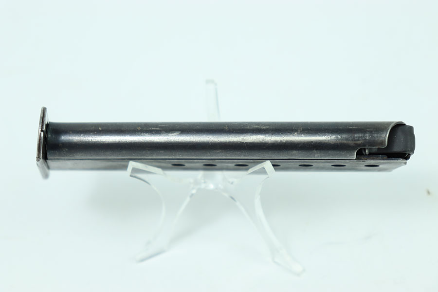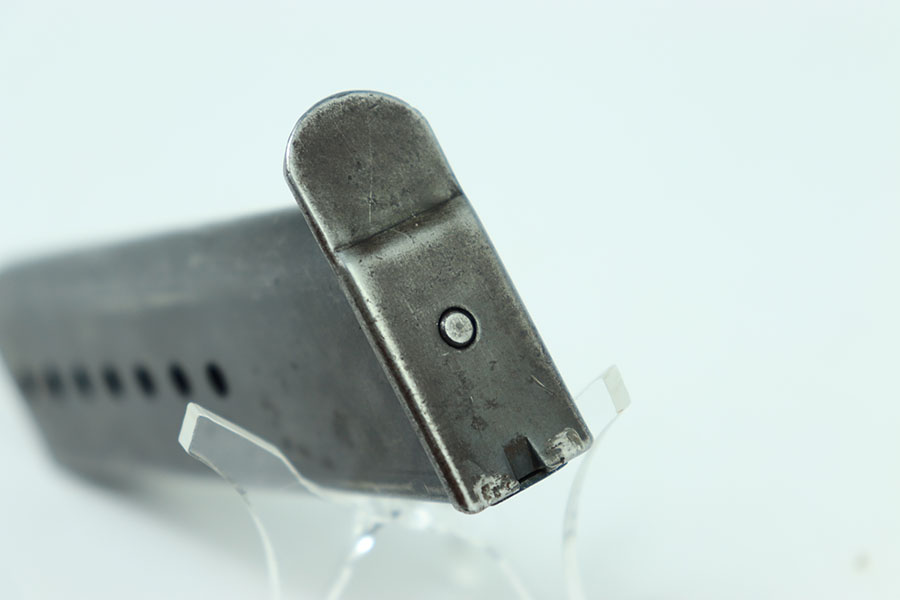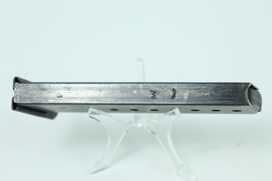 5/23/24 – This is an original example of a WW2 JVD P.38 Magazine with the WaA706 military proof stamp. This example has some mild wear throughout the magazines with a few scratches on the left side. The magazine has machining marks on the left side indicating it’s a later war magazine. The spring is strong and fully functional.