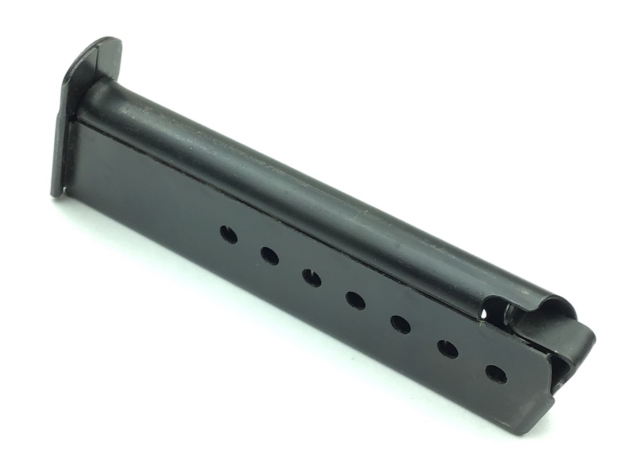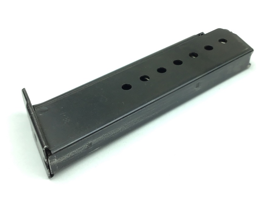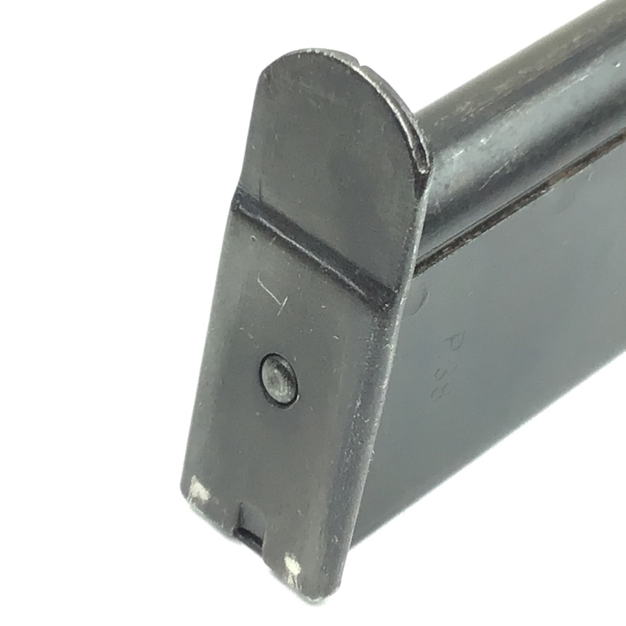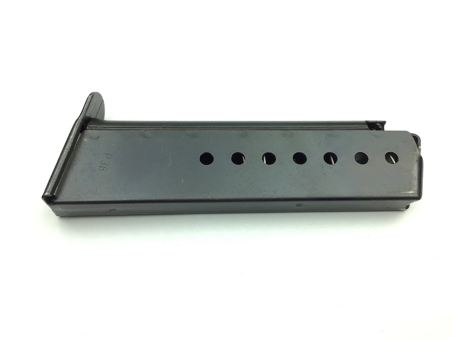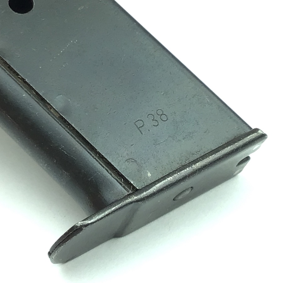 7/9/20 – This is an original WW2 variation P.38 magazine. The left side of the frame is stamped “P.38”.  The spine is stamped with two eagle 359 proof stamps. There are no other markings. The spring is excellent and fully functional. The original blued finish has minimal wear with no pitting or corrosion. Near mint condition. Great for an early Walther P.38.