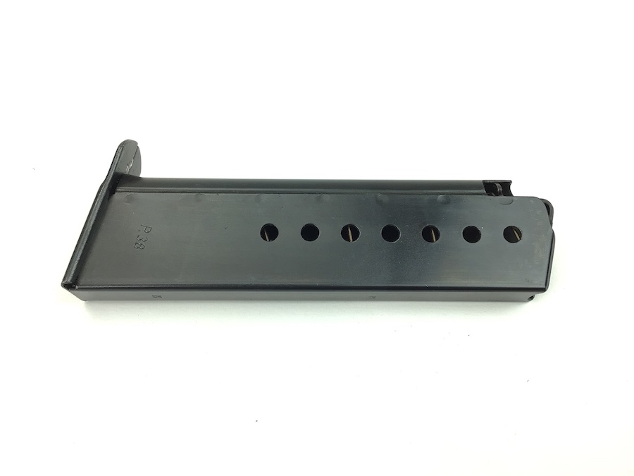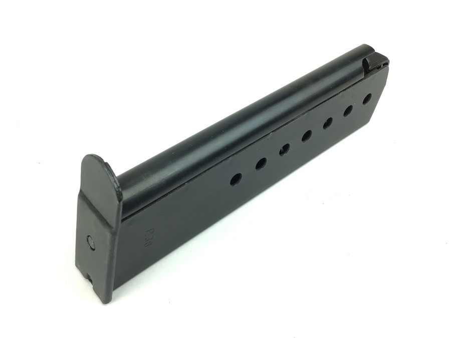 10/22/21 – This is an original WW2 variation P.38 magazine. The left side of the frame is stamped “P.38”. The spine is stamped with 2, eagle 359 proof stamp. There are no other markings. The spring is excellent and fully functional. The original blued finish has minimal wear with no pitting or corrosion.