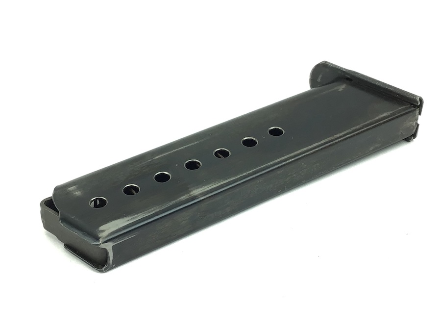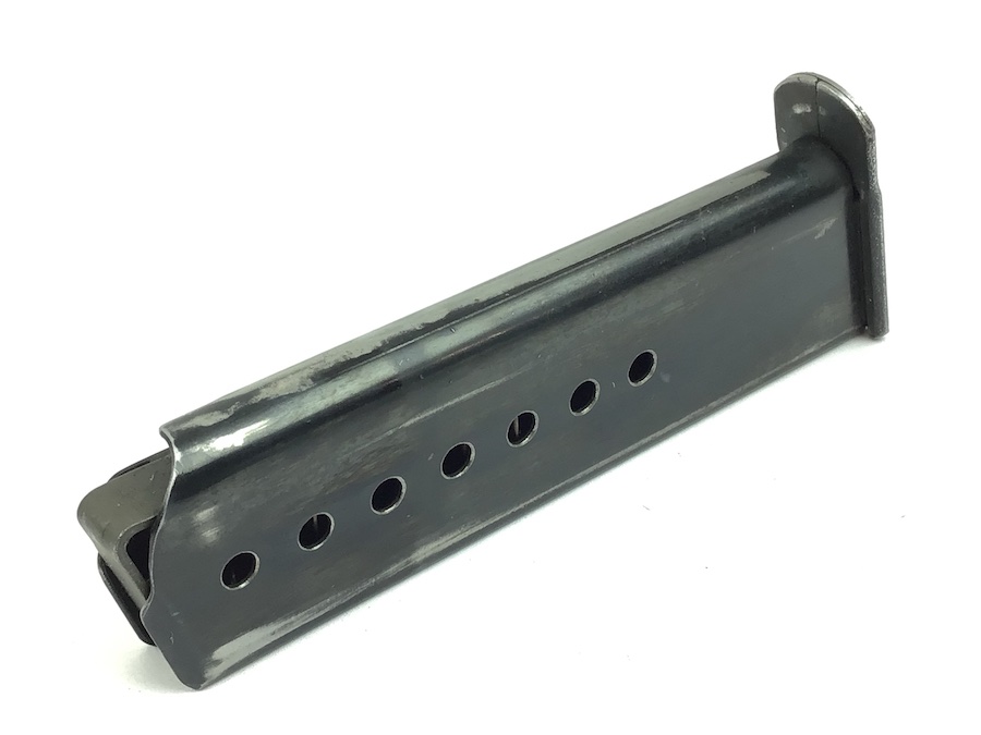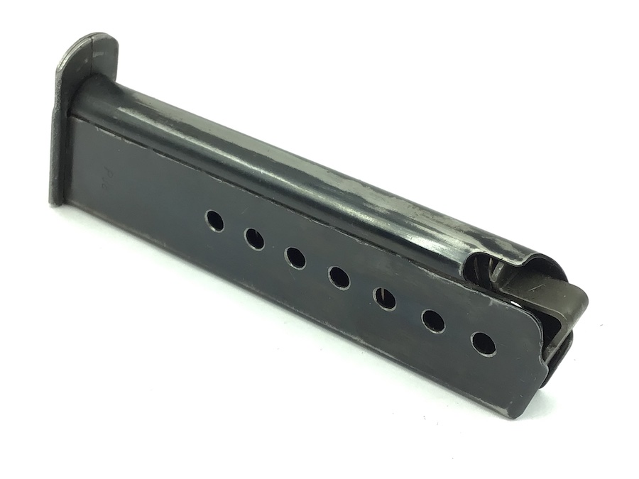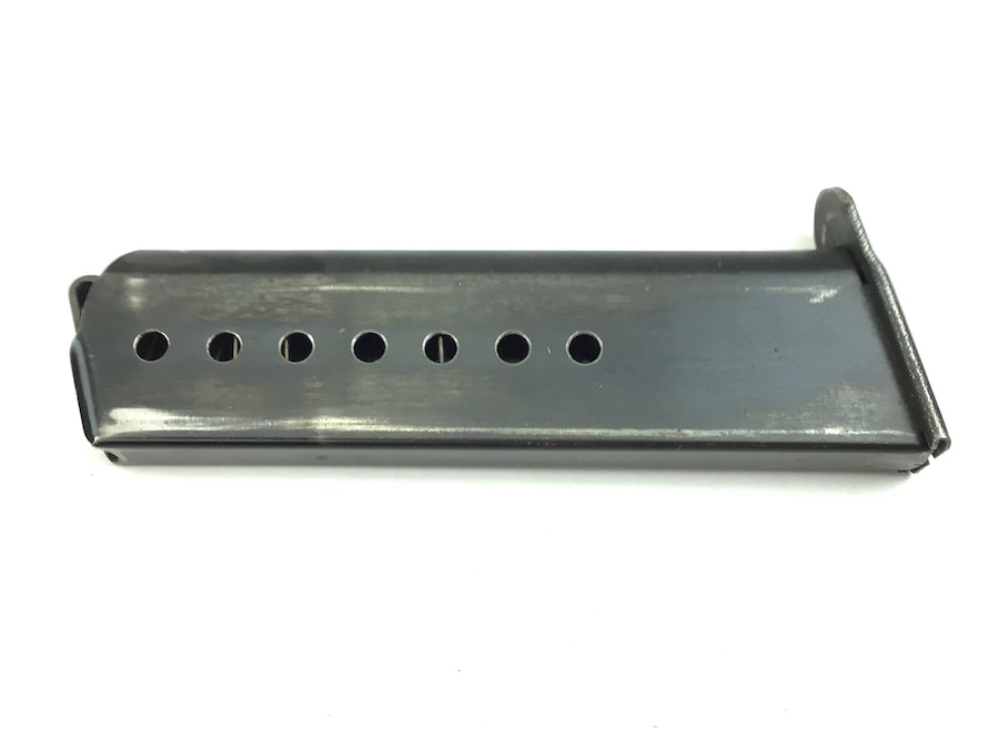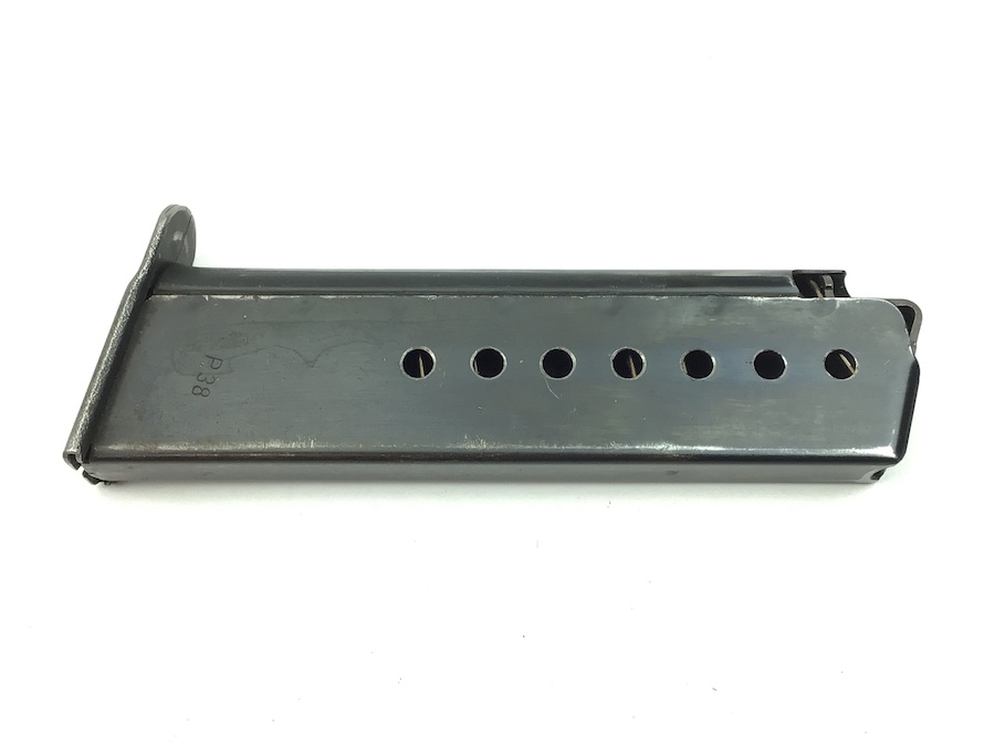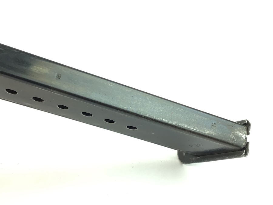 11/19/21 – This is an original WW2 variation P.38 magazine. The left side of the frame is stamped “P.38”. The spine is stamped with two, eagle 359 proof stamps. There are no other markings. The spring is excellent and fully functional. The original blued finish has minor wear with no pitting or corrosion. Great for an early Walther P.38.