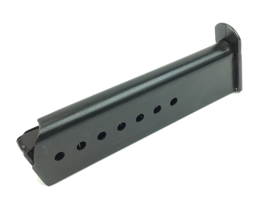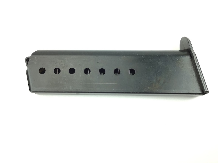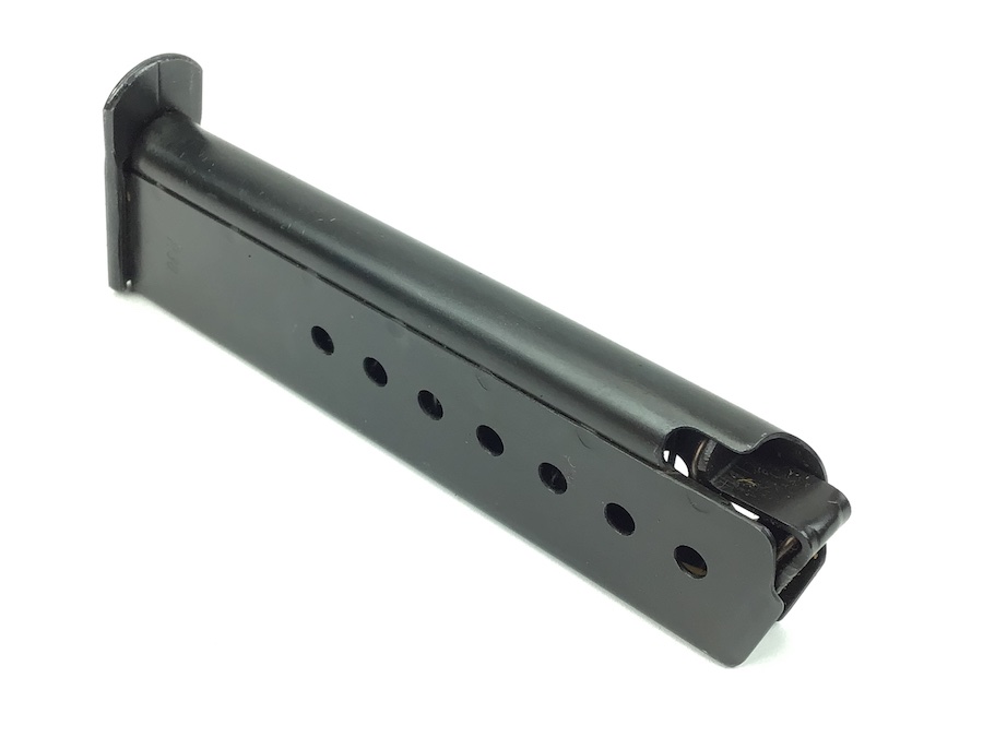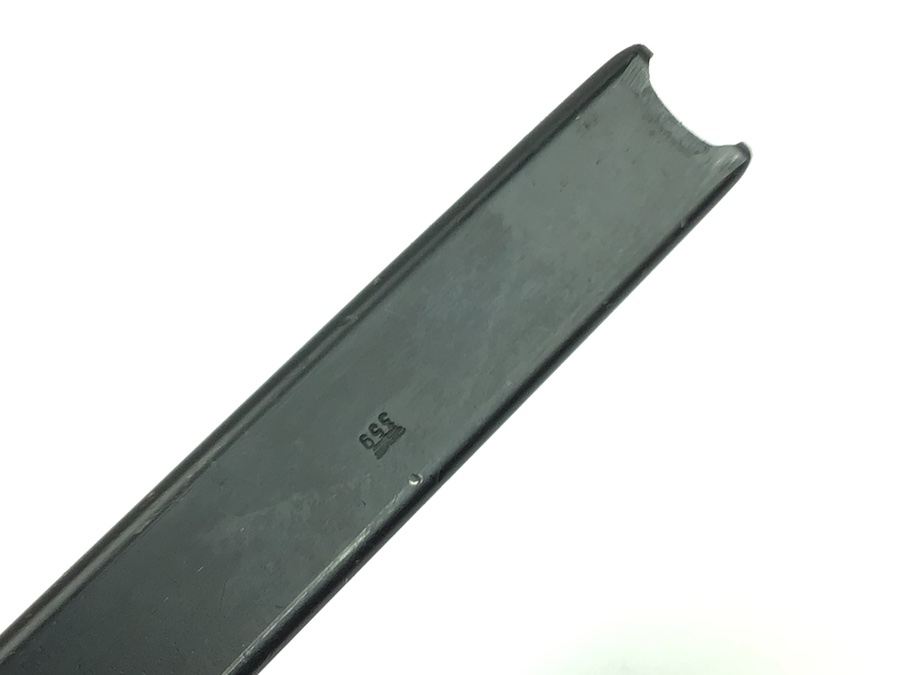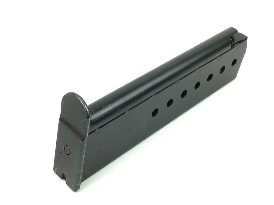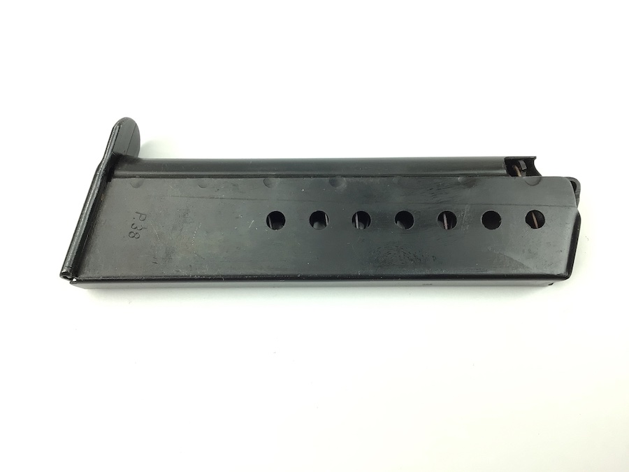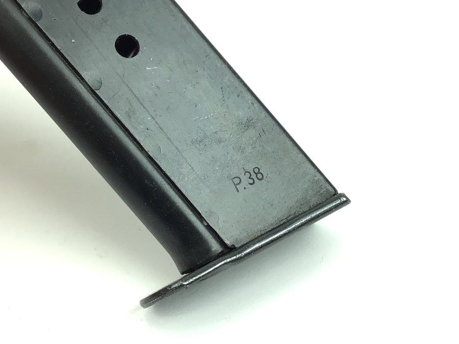 12/6/21 – This is an original WW2 variation P.38 magazine. The left side of the frame is stamped “P.38”.  The spine is stamped with the eagle 359 proof stamp. There are no other markings. The spring is excellent and fully functional. The original blued finish has minimal wear with no pitting or corrosion. These magazines were provided with the total number of 90,000 pistols produced from May 1942 until February 1943.