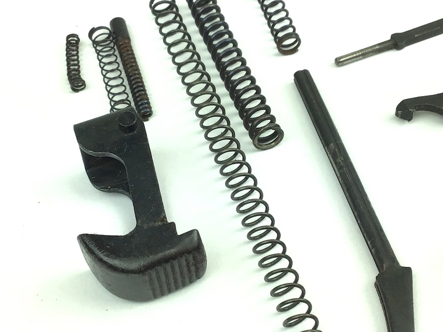 4/14/20 – Original and great condition small parts kit for P.38 9mm pistols. These parts were removed from a spreewerke made pistol, but can be used for all manufacturers. All unmarked parts in usable condition. No corrosion. Some typical bluing wear. Authentic parts from the WWII era.