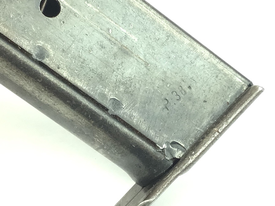4/11/22 – This original magazine was produced by Walther and is stamped with P.38v on the left side of the housing. No other markings. No acceptance stamp is found on the spine, as this magazine was issued with commercial P.38’s.