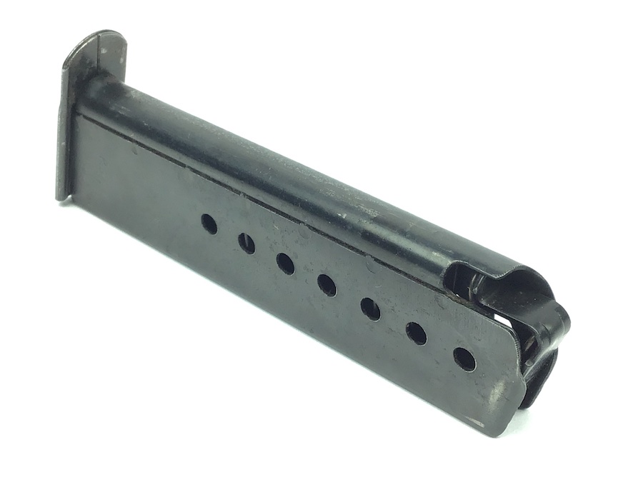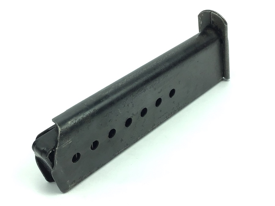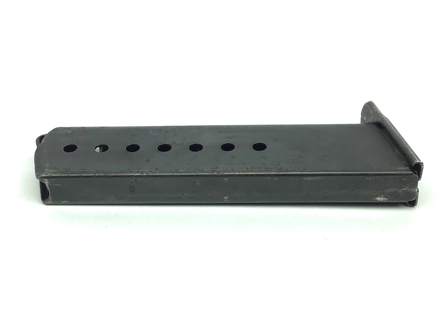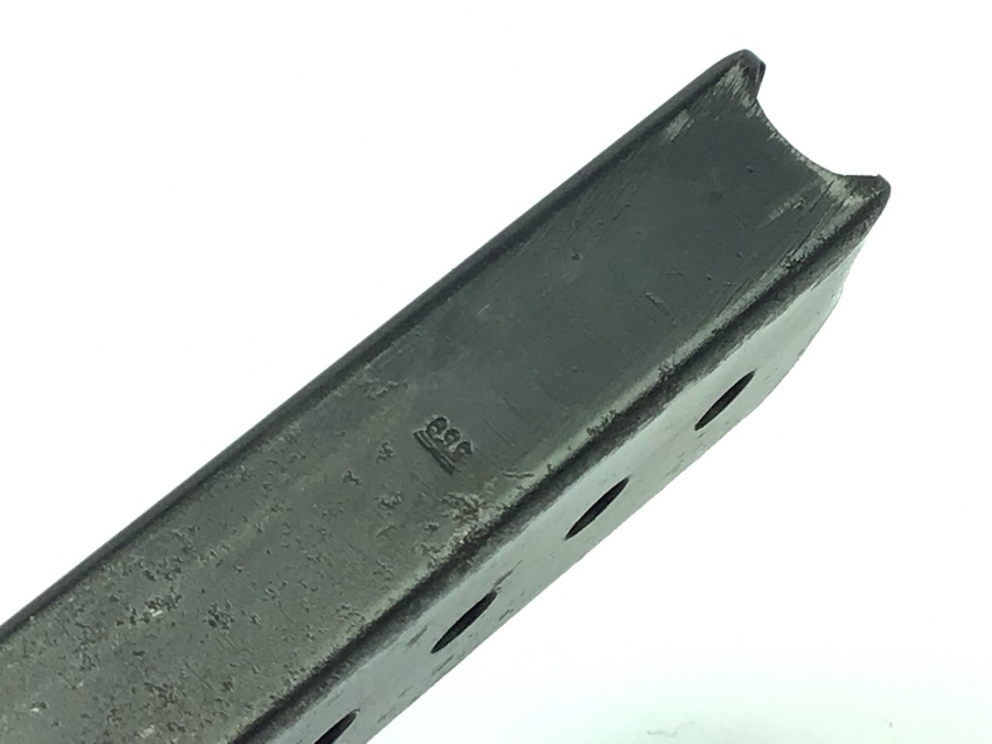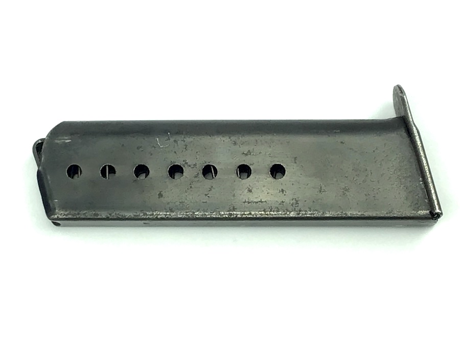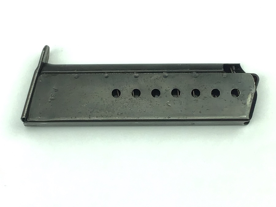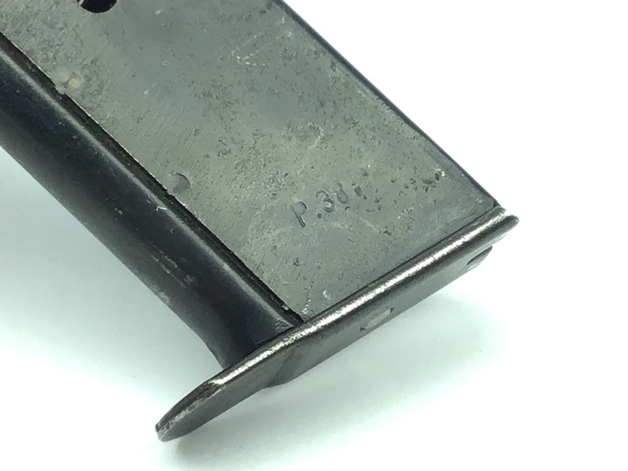 9/24/20 – This is an original WW2 variation P.38 magazine. The left side of the frame is stamped “P.38v”. The spine is stamped with “E/359” upside down near the top. The spring is excellent and fully functional. The original blued finish has minimal wear with no pitting or corrosion.