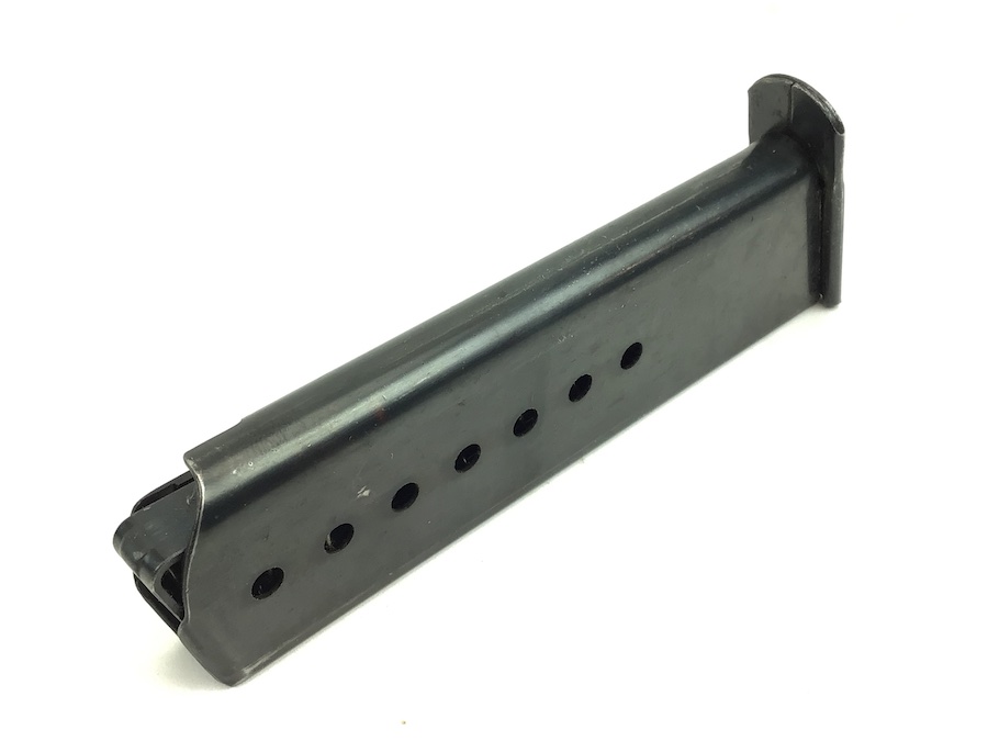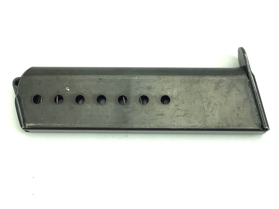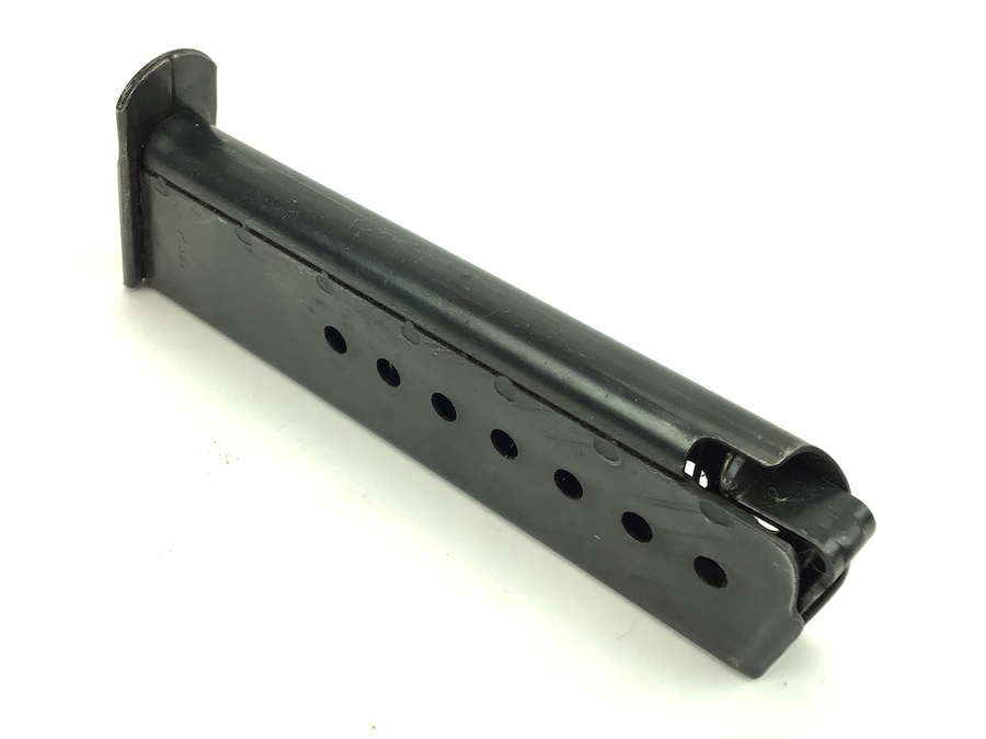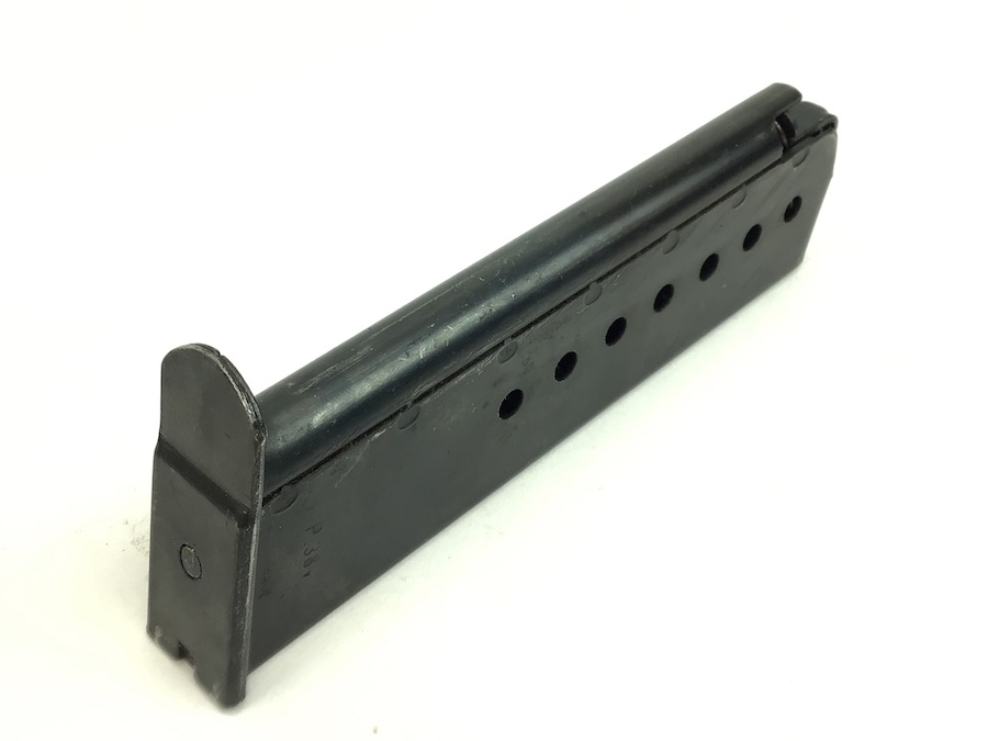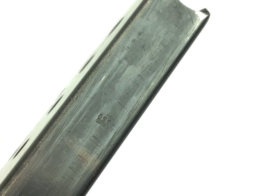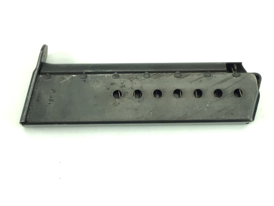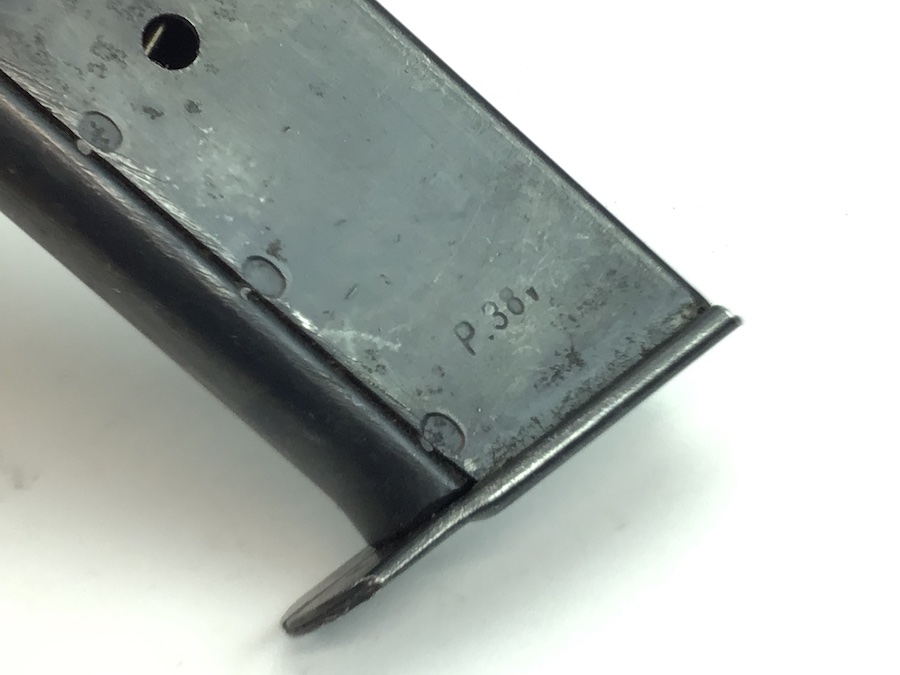 1/19/22 – This is an original WW2 variation P.38 magazine. The left side of the frame is stamped “P.38v”. The spine is stamped with “E/359” upside down near the top. The spring is excellent and fully functional. The original blued finish has minimal wear.