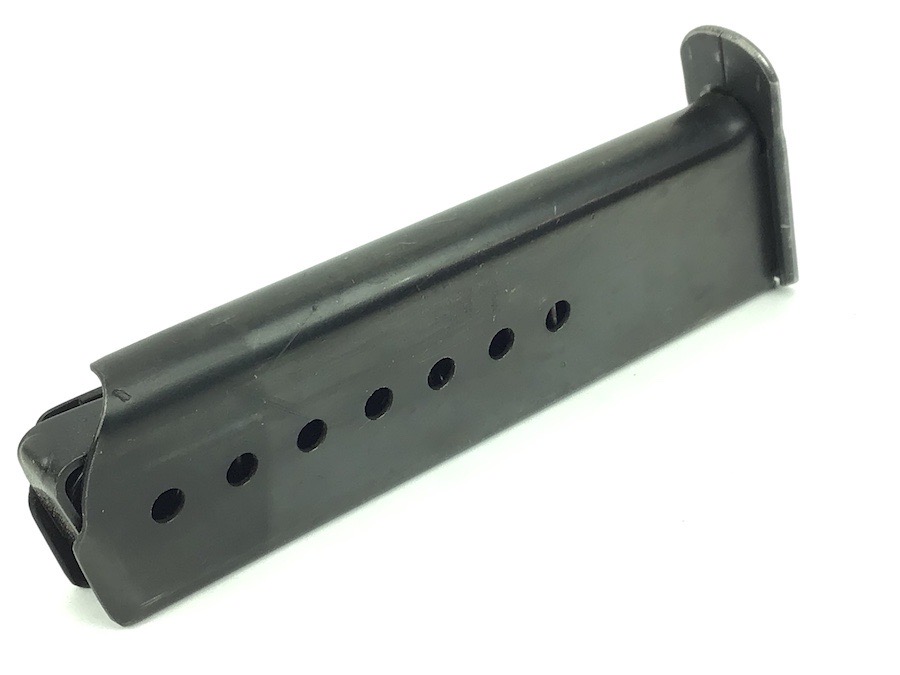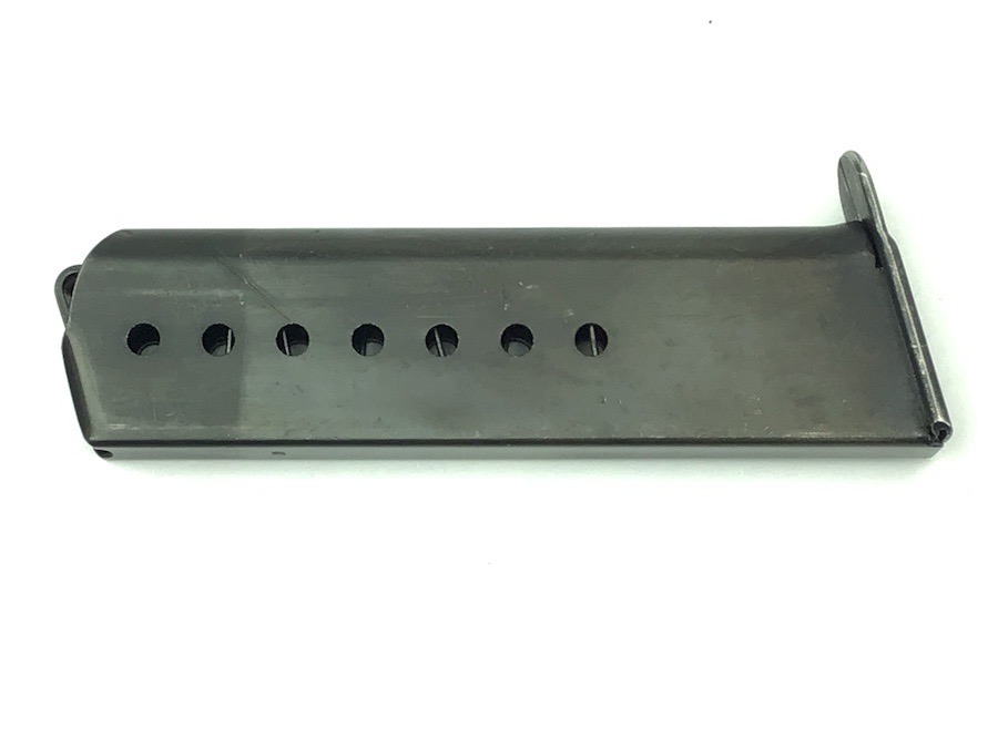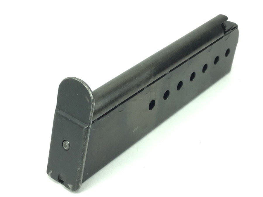 11/30/22 – This is a Mauser produced magazine that was issued with P.38 handguns during 1943 and 1944. Stamped on the left side with P.38v and one eagle 135 proof stamp on the spine. Excellent condition with a strong smooth spring. Minimal wear.