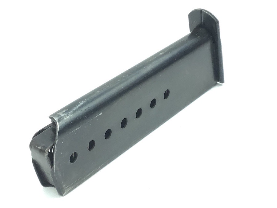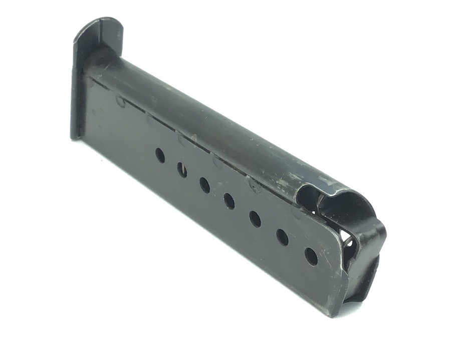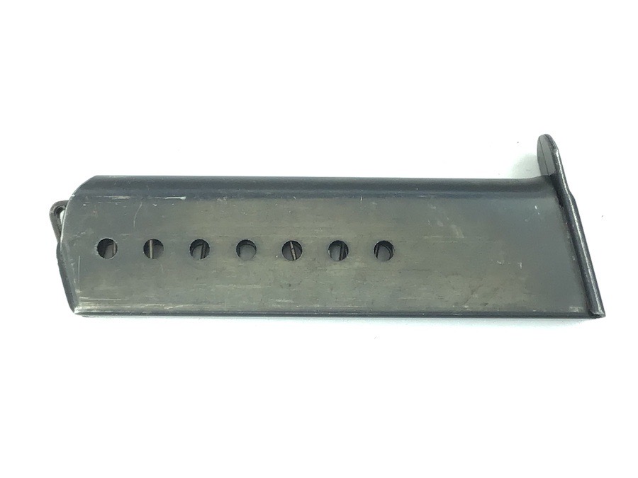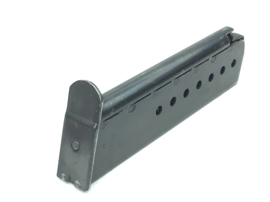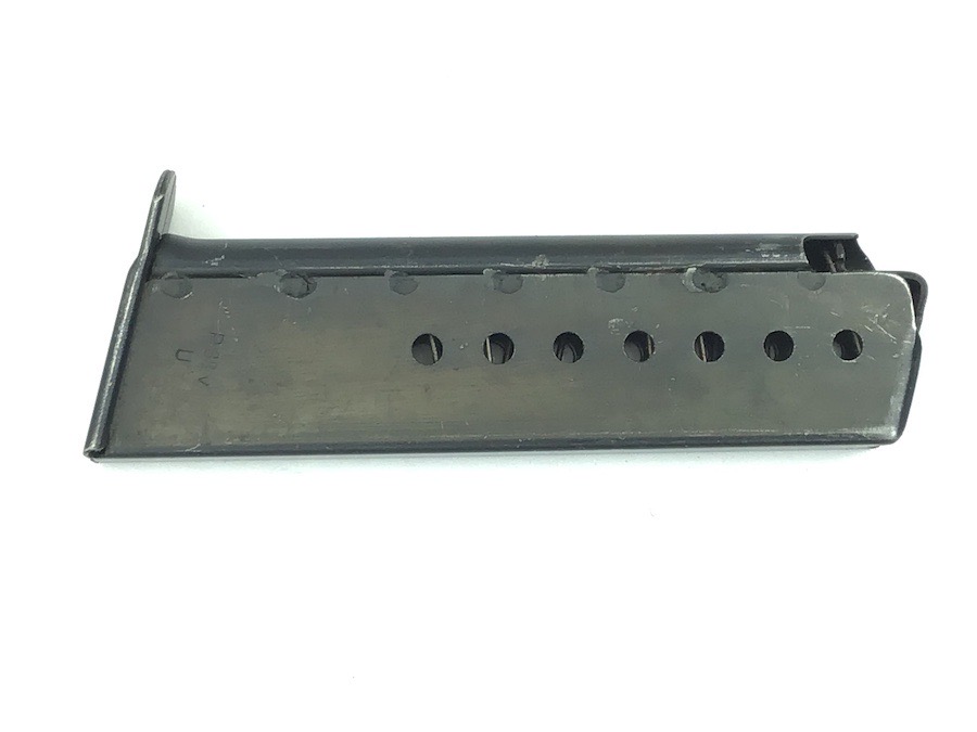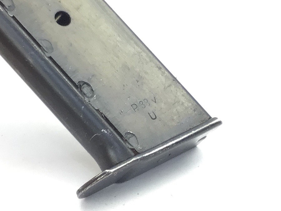 5/25/23 – This is an original late WW2 variation P.38 magazine. The left side of the frame is stamped “P.38v U”. The U stands for unhardened metal which was a late-war manufacturing technique used to speed production. There are no other markings. The spring is excellent and fully functional. The original finish has minor wear.