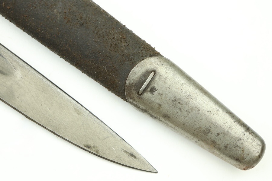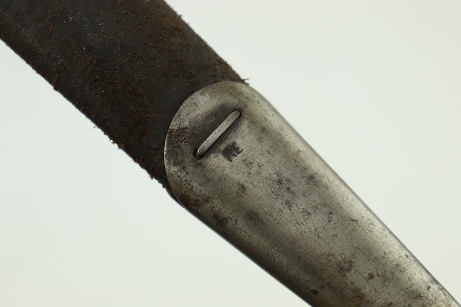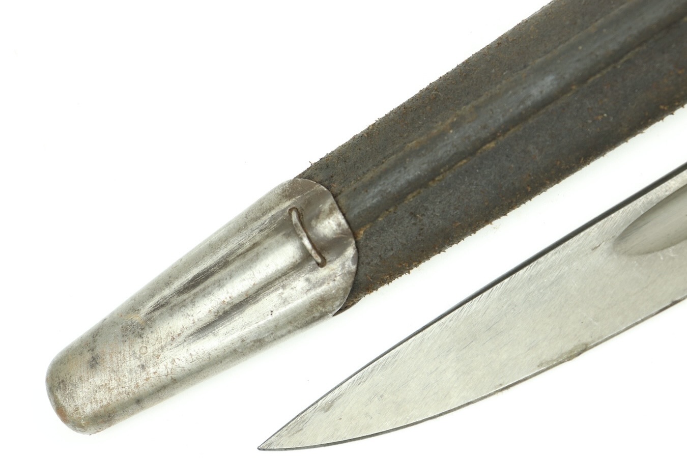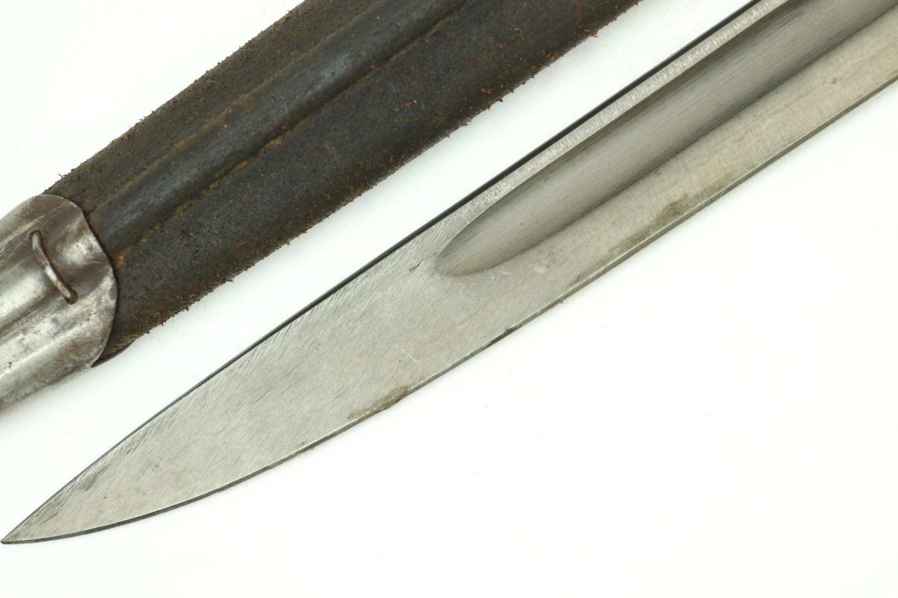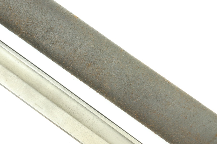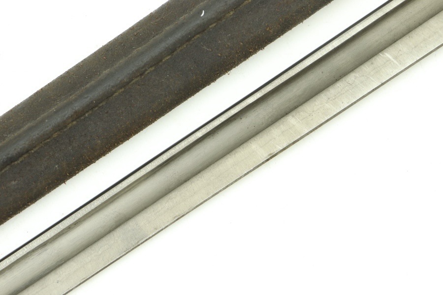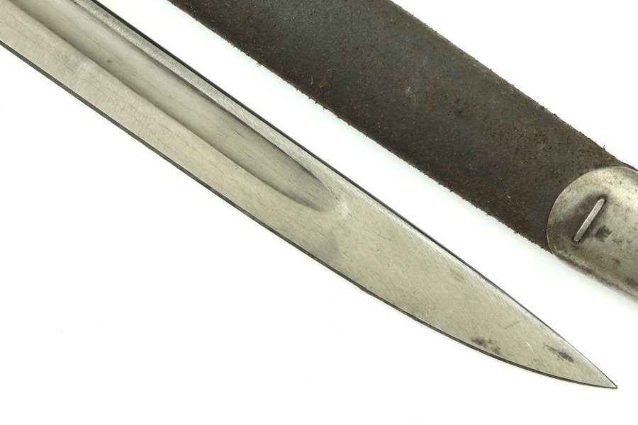 10/25/23 – This is an original and excellent condition P1907 Wilkinson bayonet. Bayonet comes with a very nice leather scabbard that has very little wear. The blade shows very little wear and retains its factory edge. Ricasso is dated and has maker stamps as well as British inspection proofs. The cross guard and pommel show minor finish loss with no rust or pitting. Bayonet is fitted with a set of excellent dark brown wood grips that have few imperfections.