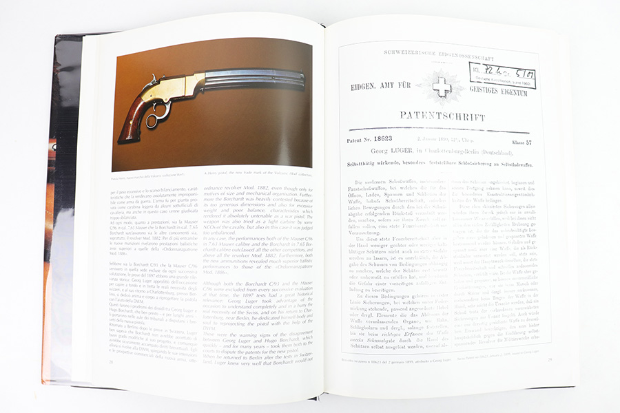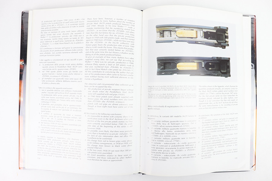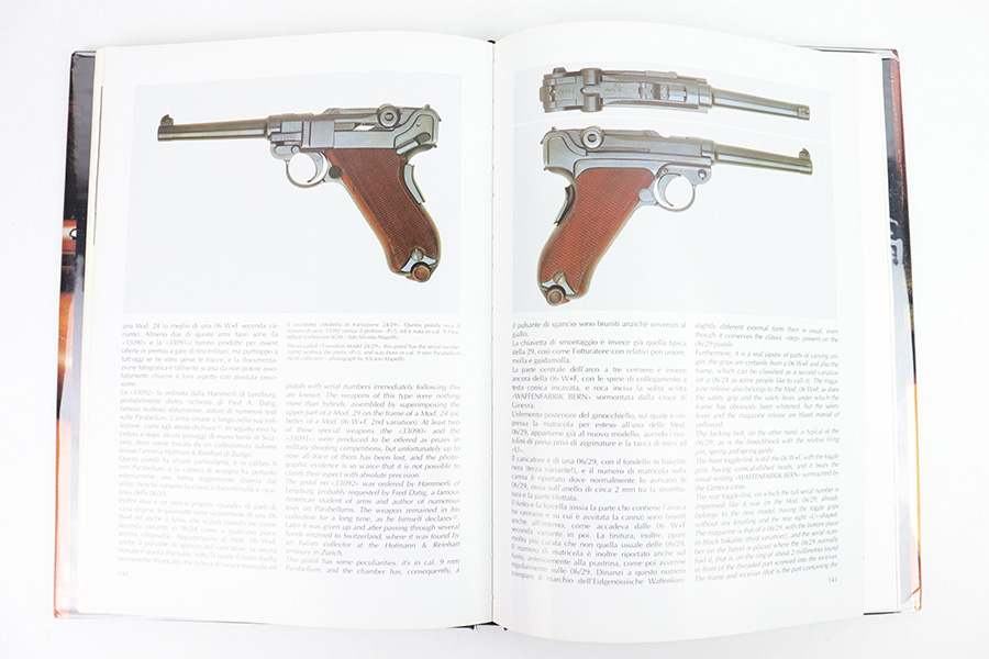 2/6/23 – This is an Italian/English copy of Vittorio Bobba’s collector resource book, “Parabellum Storia E Tecnica Delle Luger Svizzere” or “Parabellum A Technical History Of Swiss Lugers”. The hardcover book is in excellent condition. The book sleeve that covers the whole exterior of the book is protected with a layer of plastic film. All interior pages are in excellent condition. The book (224 pages) contains over 150 images including drawings, color photographs, and particulars, and is divided into three parts: the history and models of the Swiss Luger, the component sheets, and a detailed appendix that contains numerous technical data. This is a must have book for any Swiss Luger Collectors.