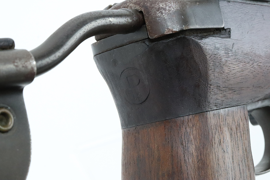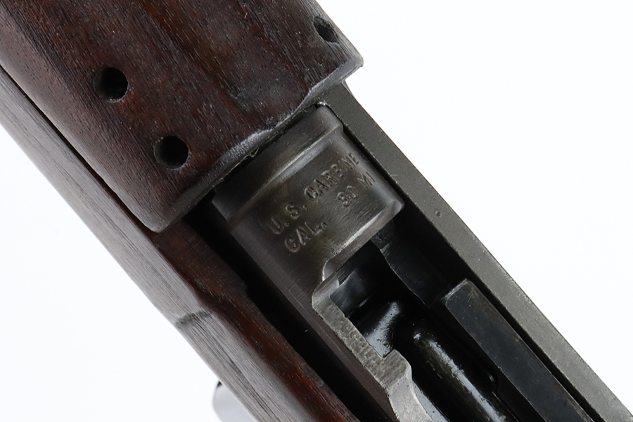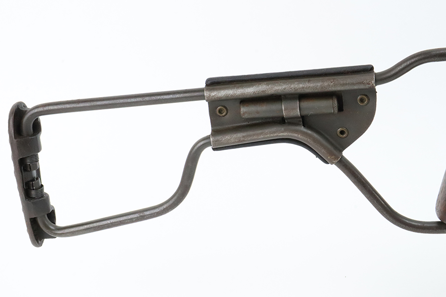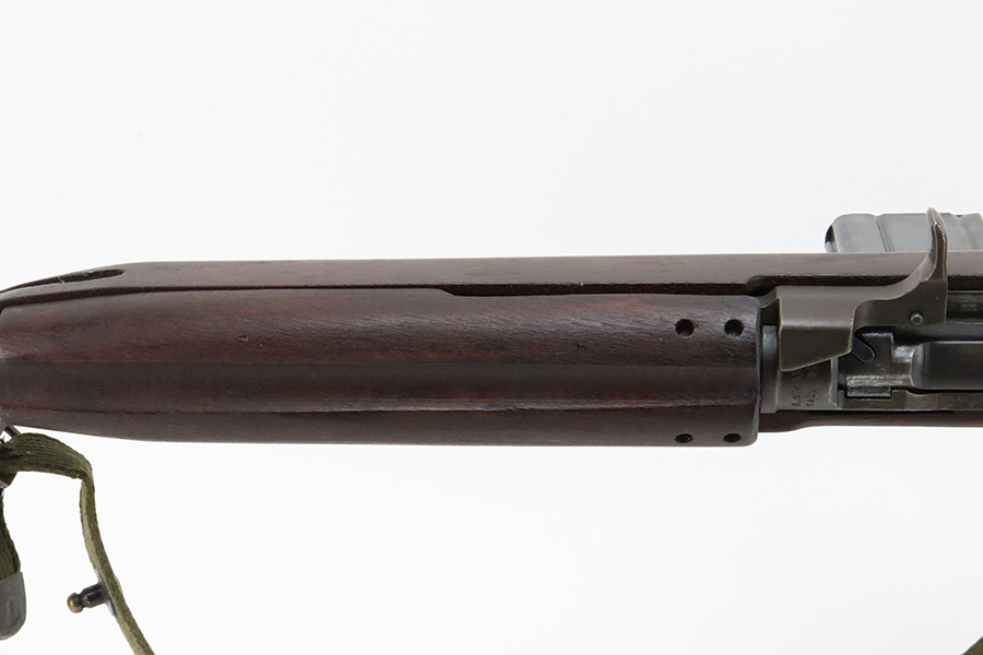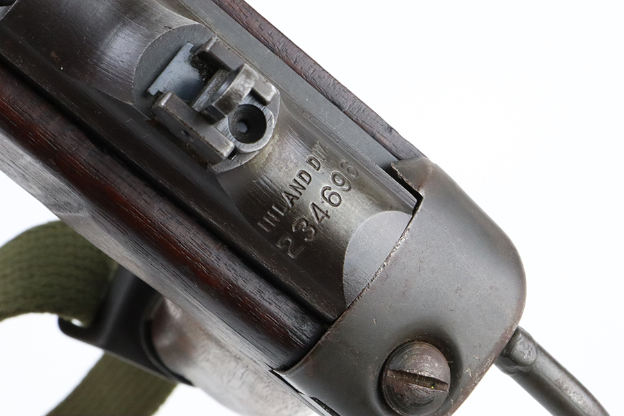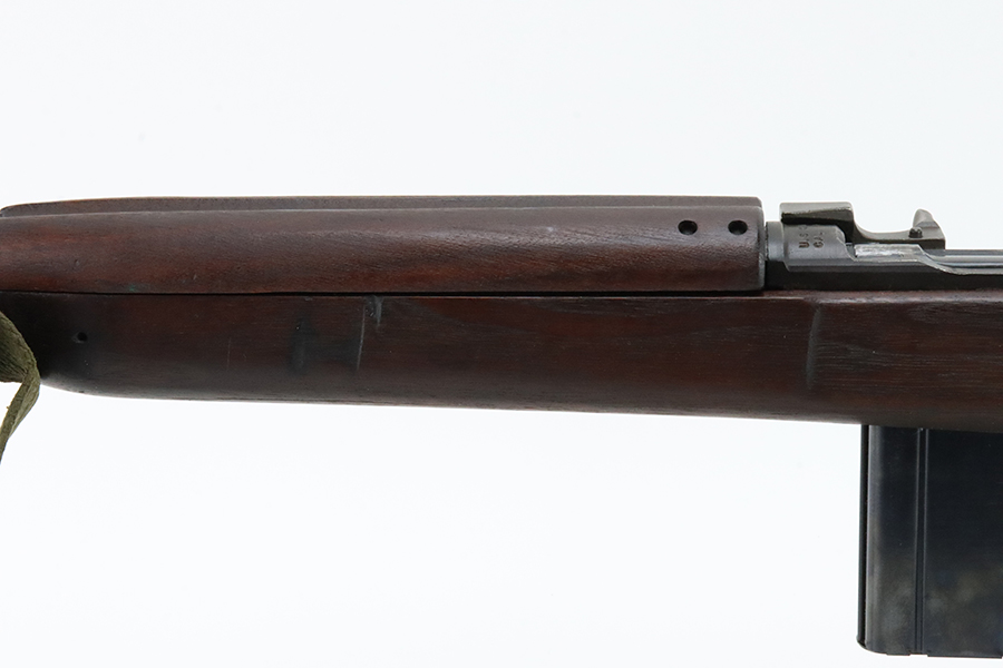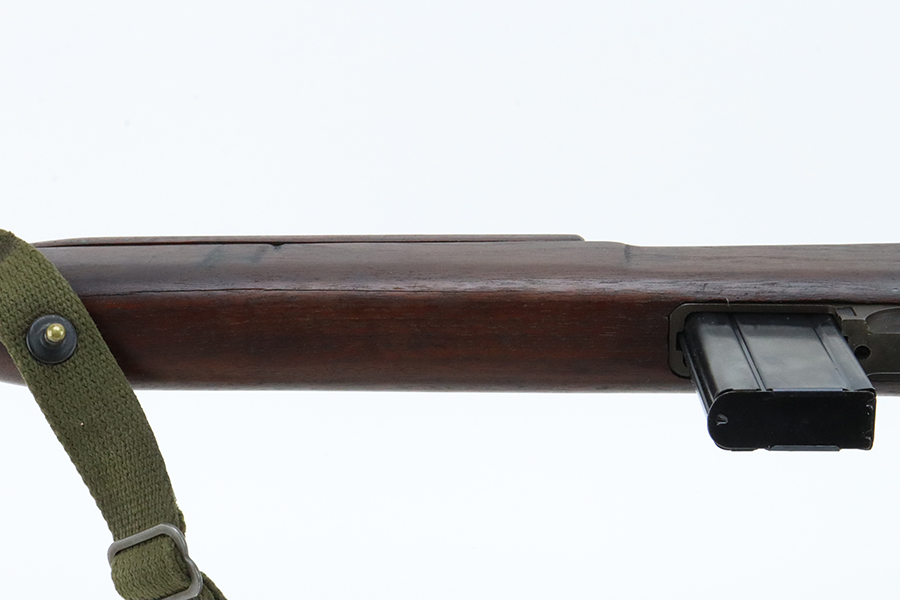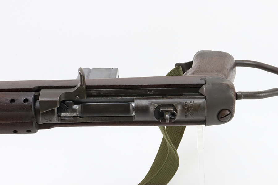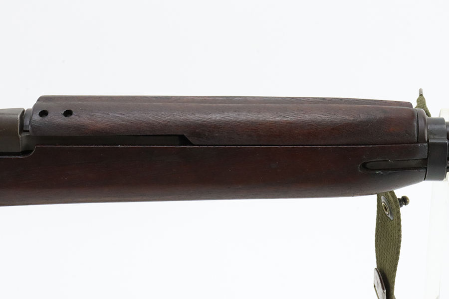 3/11/24 – This is a rare Inland Paratrooper M1A1 carbine in all original condition. It’s an early Type 1 example with flip sight, six digit serial and no bayonet lug. Barrel dated to February of 1943, and Inland parts throughout. Original cheekpad with correct brass rivets. Crossed cannons cartouche on bottom of the grip. IO marked as well on inside of handguard. Circle P on the back of the stock. No signs of a bayo lug ever added or removed. No stake marks on the original rear site. Excellent, original finish that rates about 97%. Mint bore. Comes with a canvas sling and one magazine. A couple of bruises on the left side of the stock. The upper handguard is a little loose.