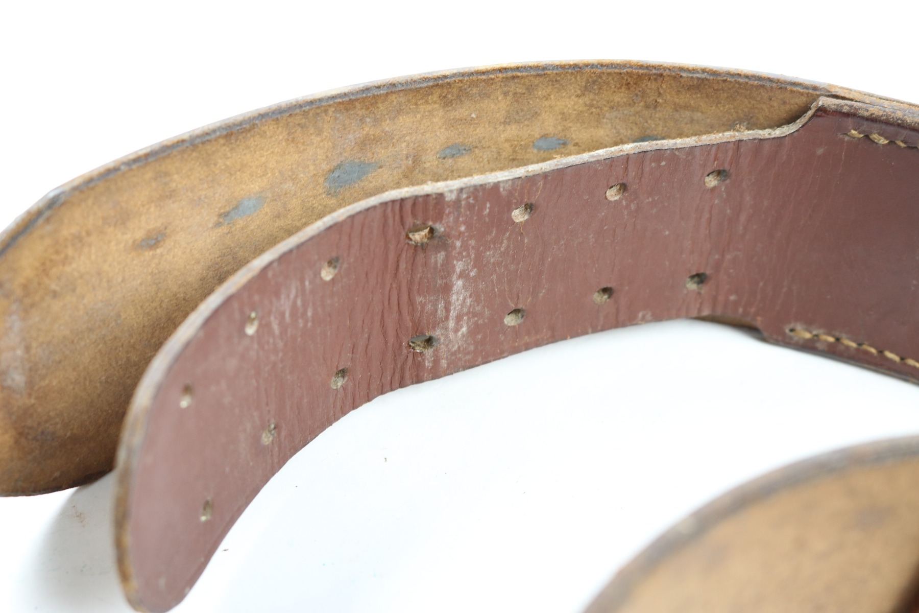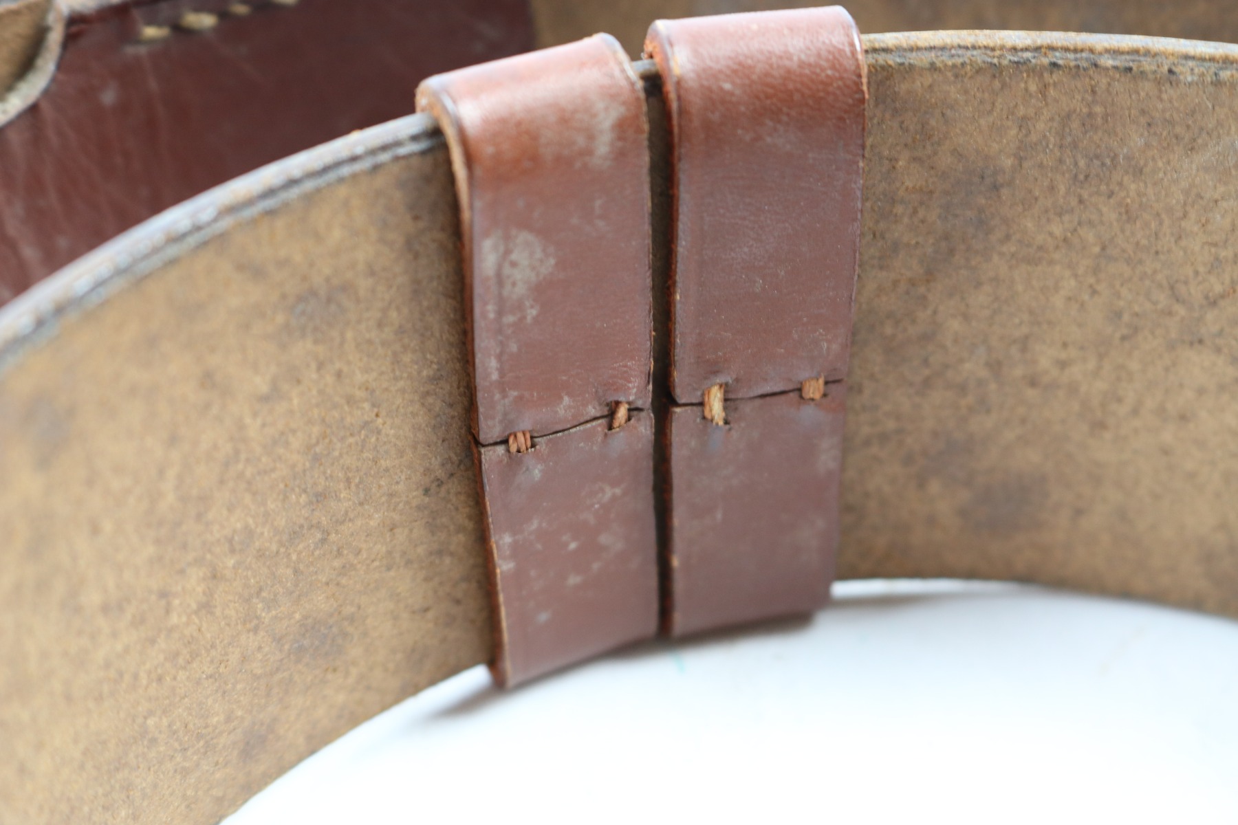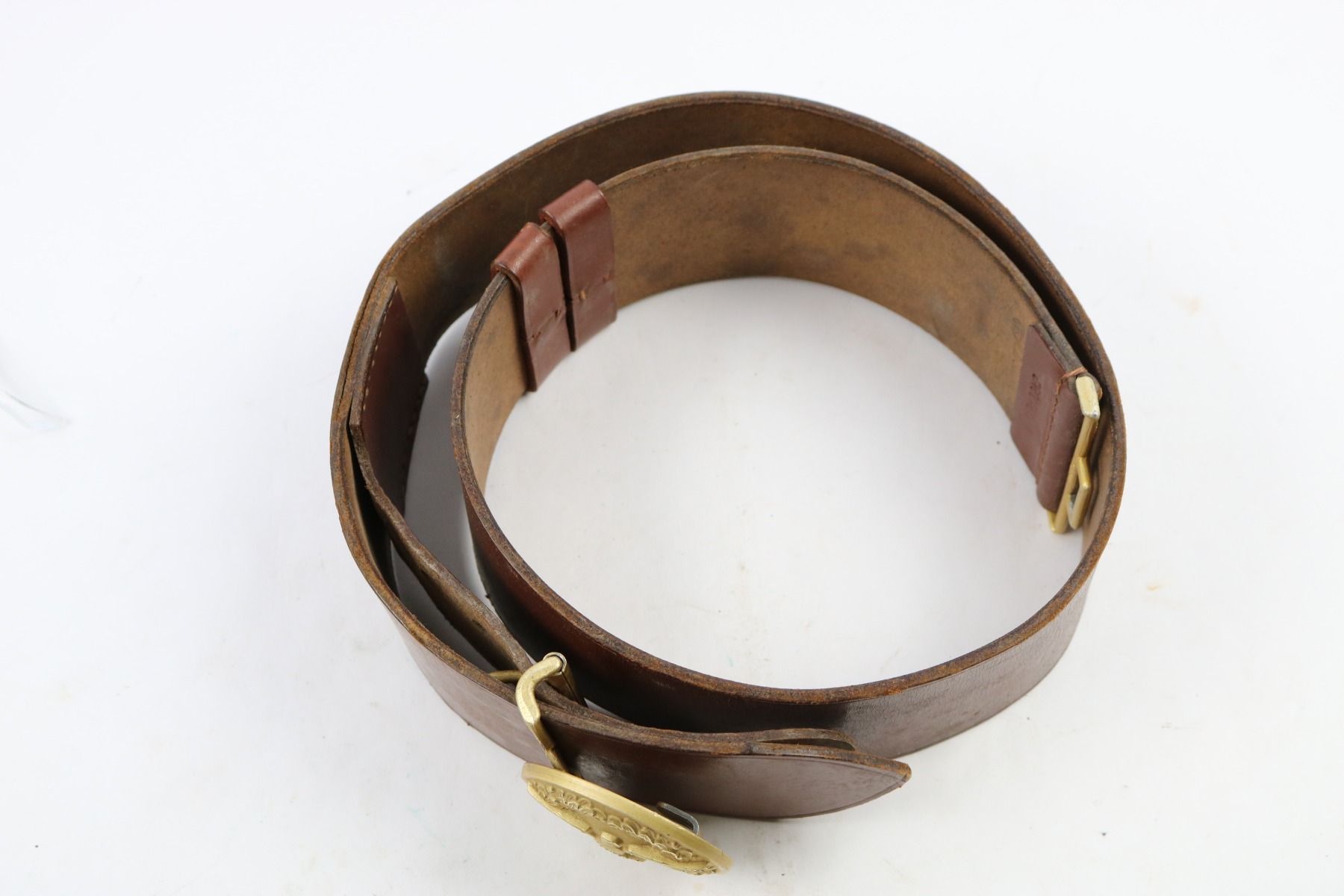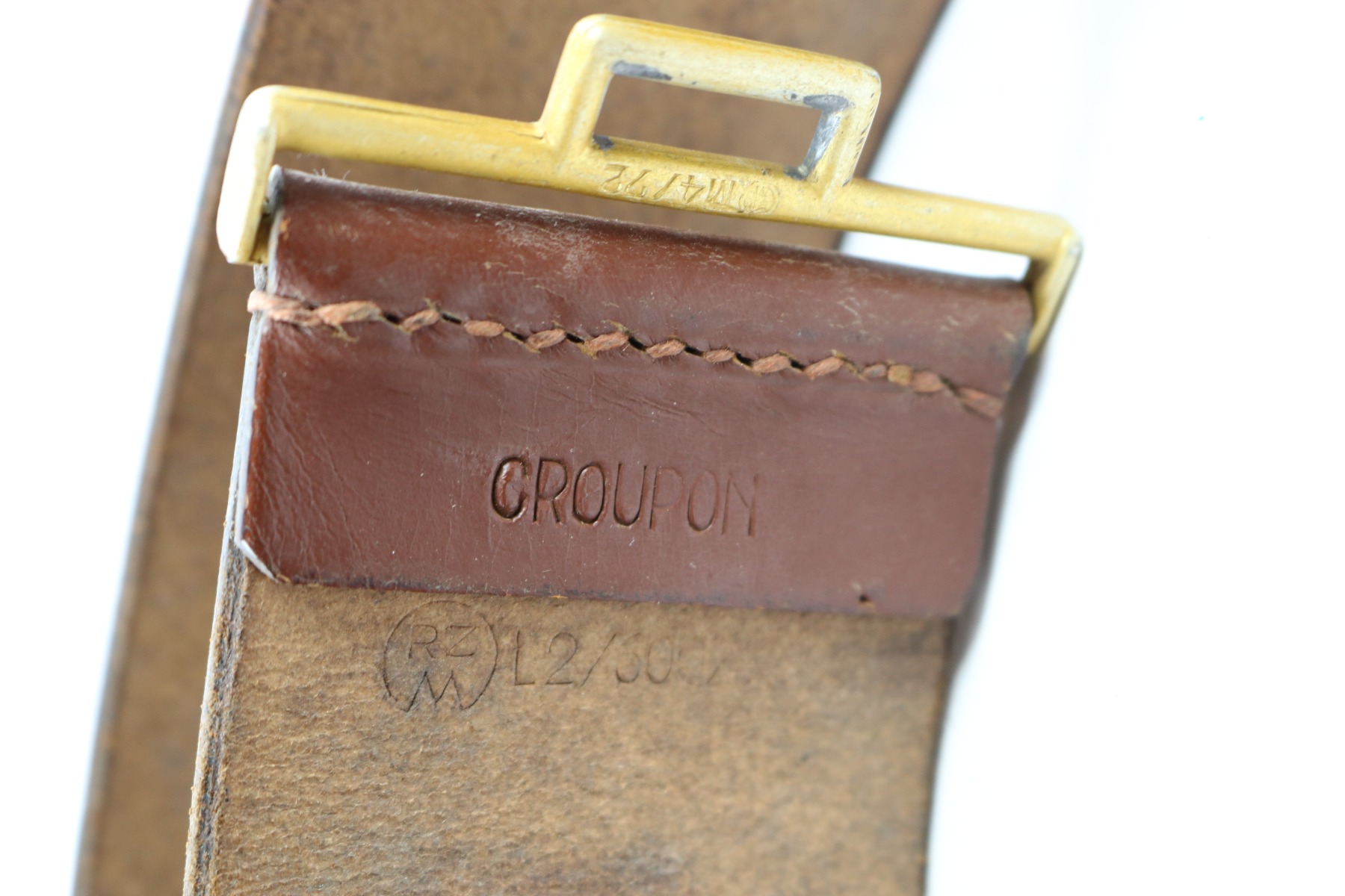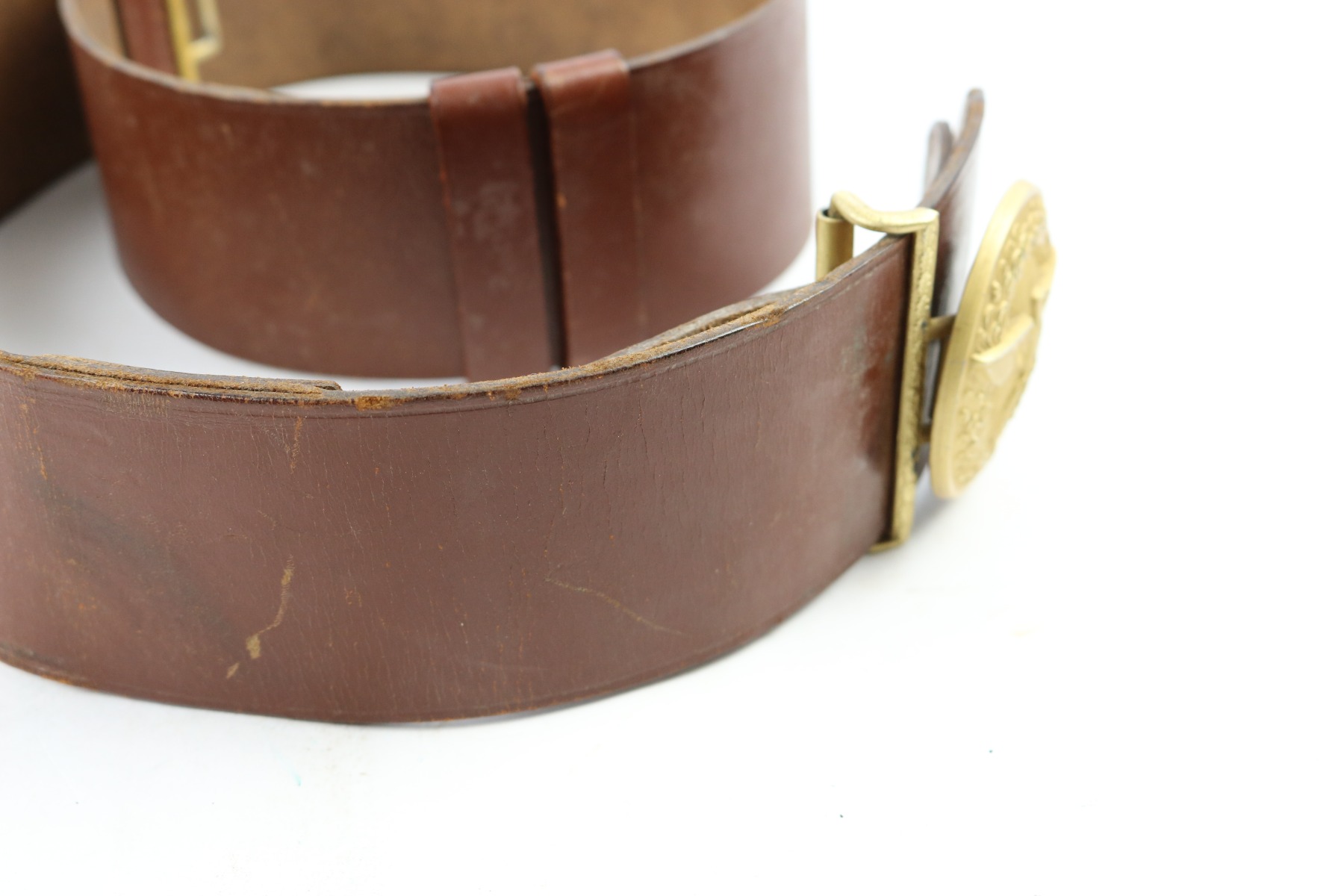 6/1/18 – This is an original WW2 Party Leader belt and buckle. They’re both in excellent condition and guaranteed original. The brown belt is strong leather and in minty conditoin overall – very clean with minimal wear. The buckle is minty as well with an RZM M4 / 24 maker stamp on the interior side. The belt is also RZM stamped and marked “Croupon”.