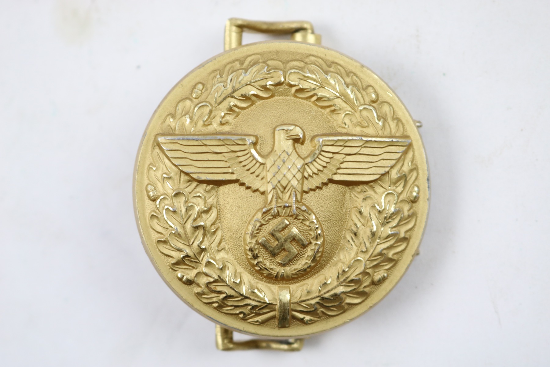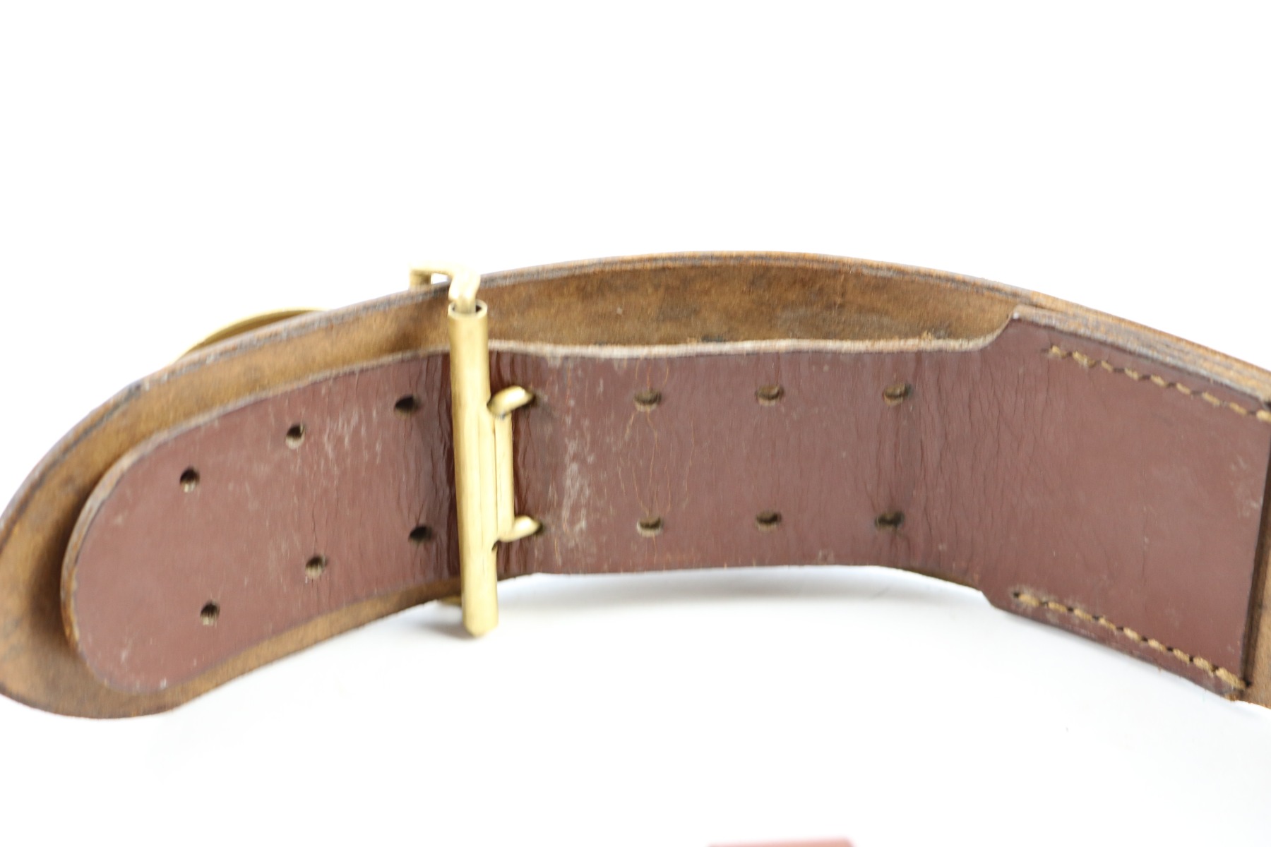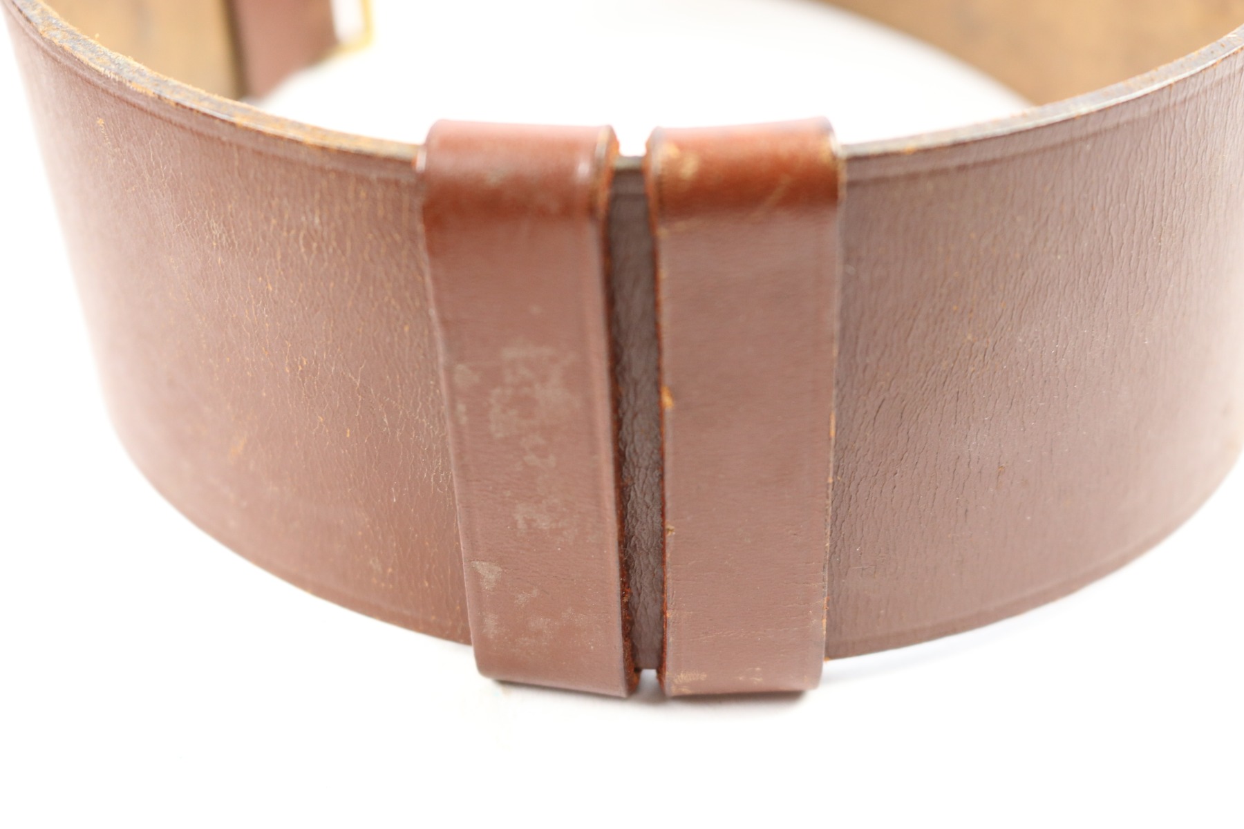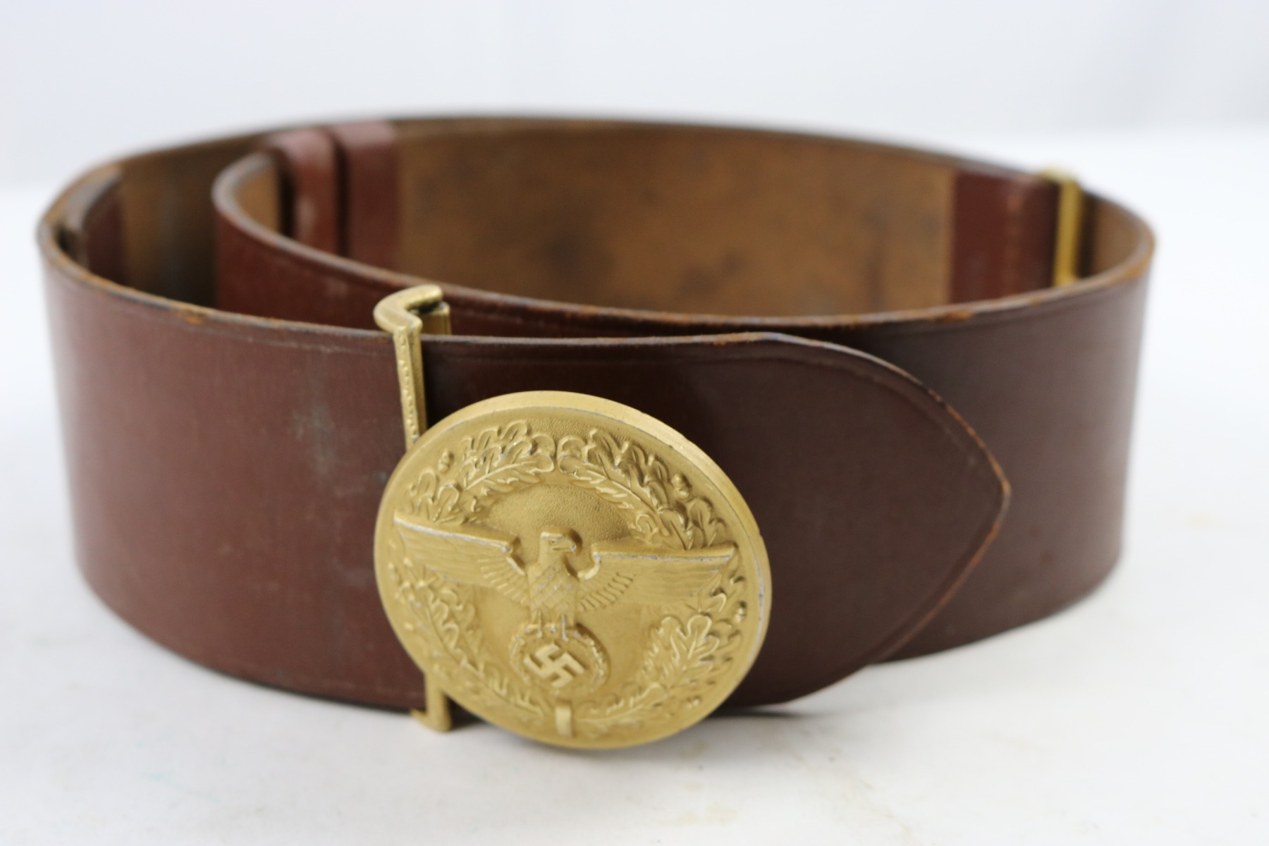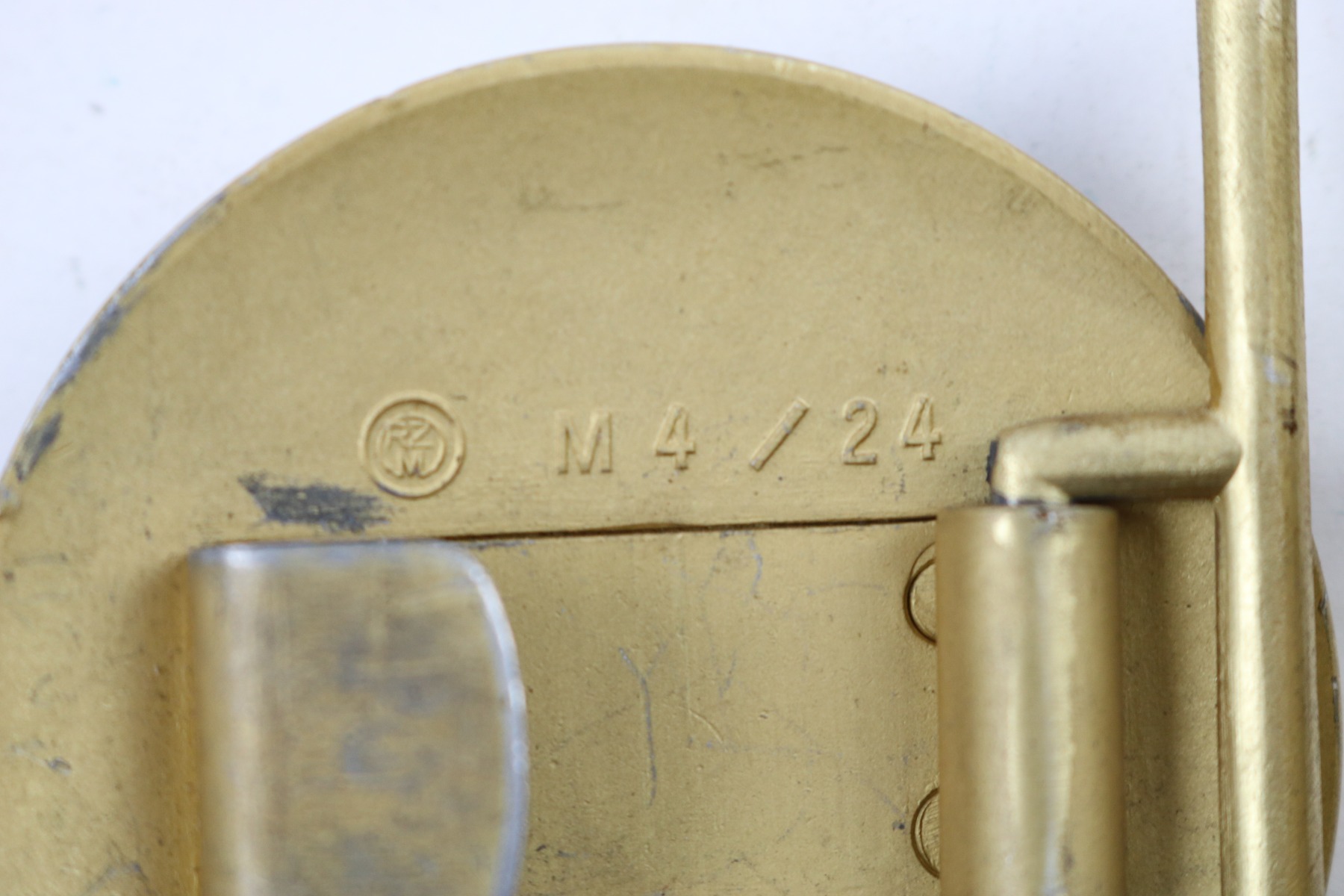 6/1/18 – This is an original WW2 Party Leader belt and buckle. They’re both in excellent condition and guaranteed original. The brown belt is strong leather and in minty conditoin overall – very clean with minimal wear. The buckle is minty as well with an RZM M4 / 24 maker stamp on the interior side. The belt is also RZM stamped and marked “Croupon”.