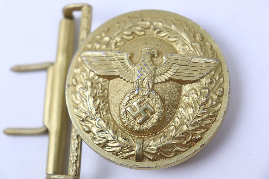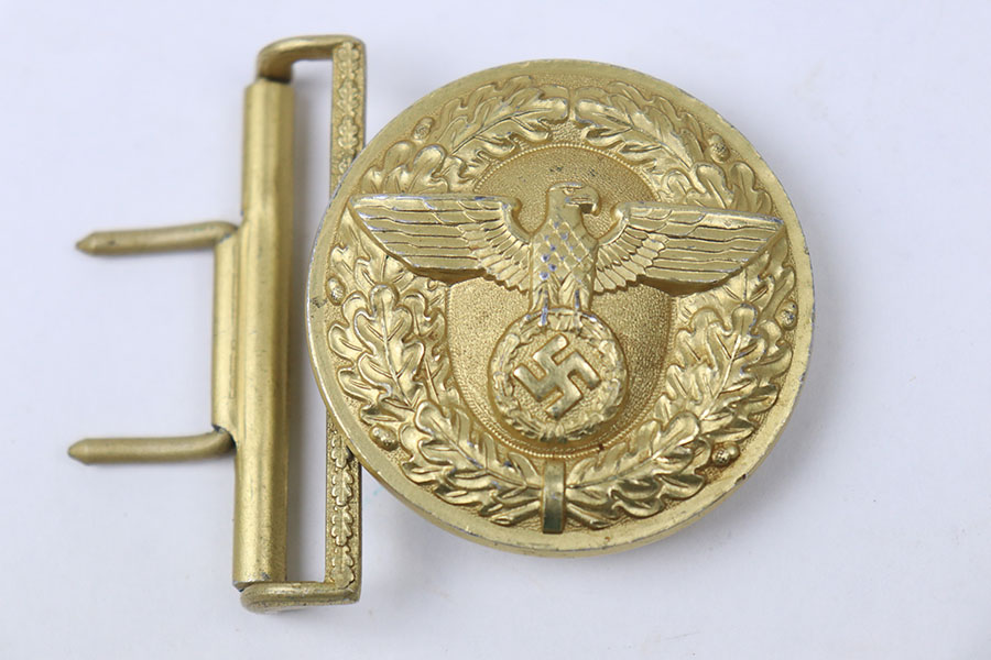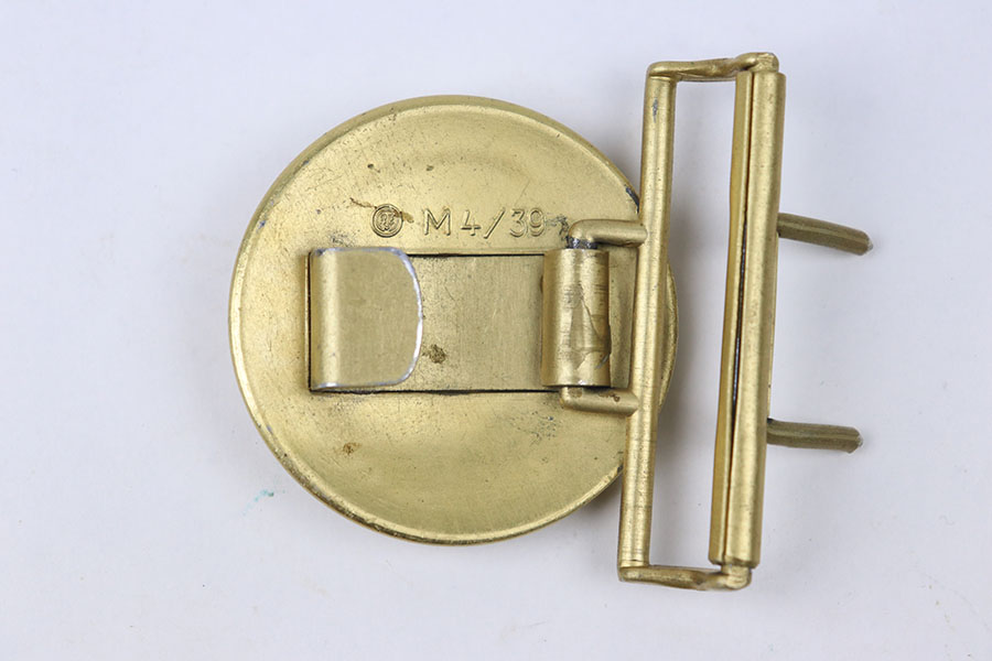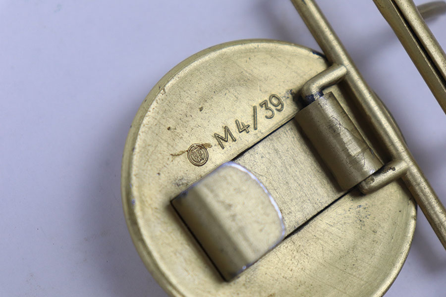 8/9/21 – This is an original Nazi Party Leader Belt Buckle from WW2. The buckle has some mild patina, and some finish loss around the edges of the eagle and wreath. None of this wear is excessive. Most of the finish is in tact. The reverse is RZM maker stamped, as shown.