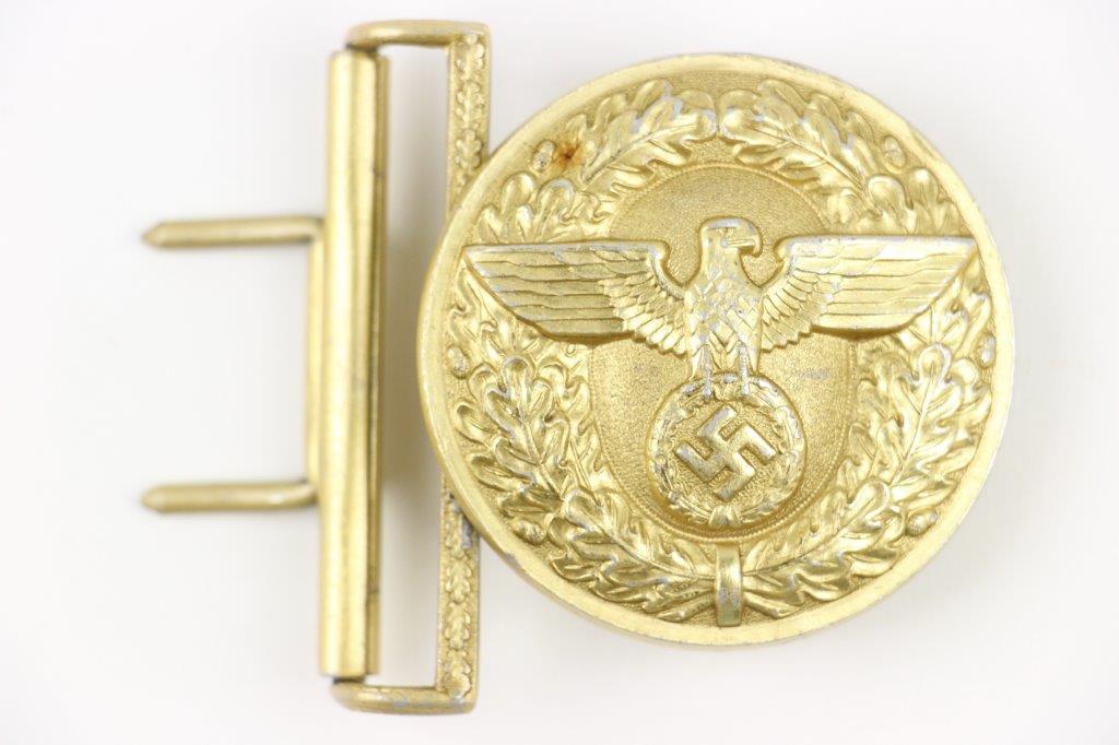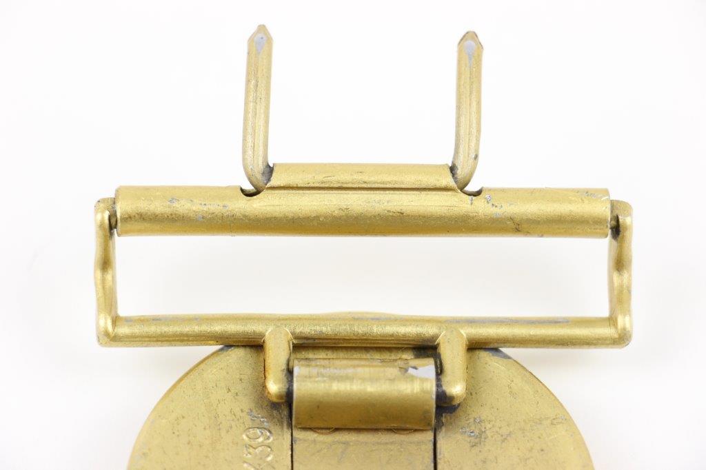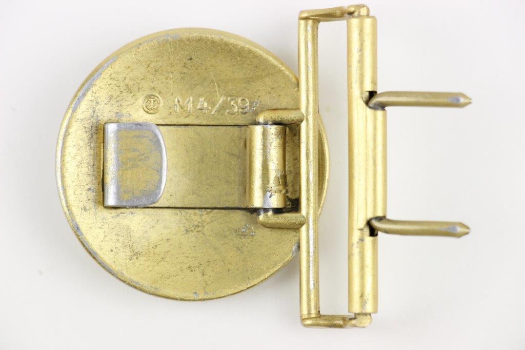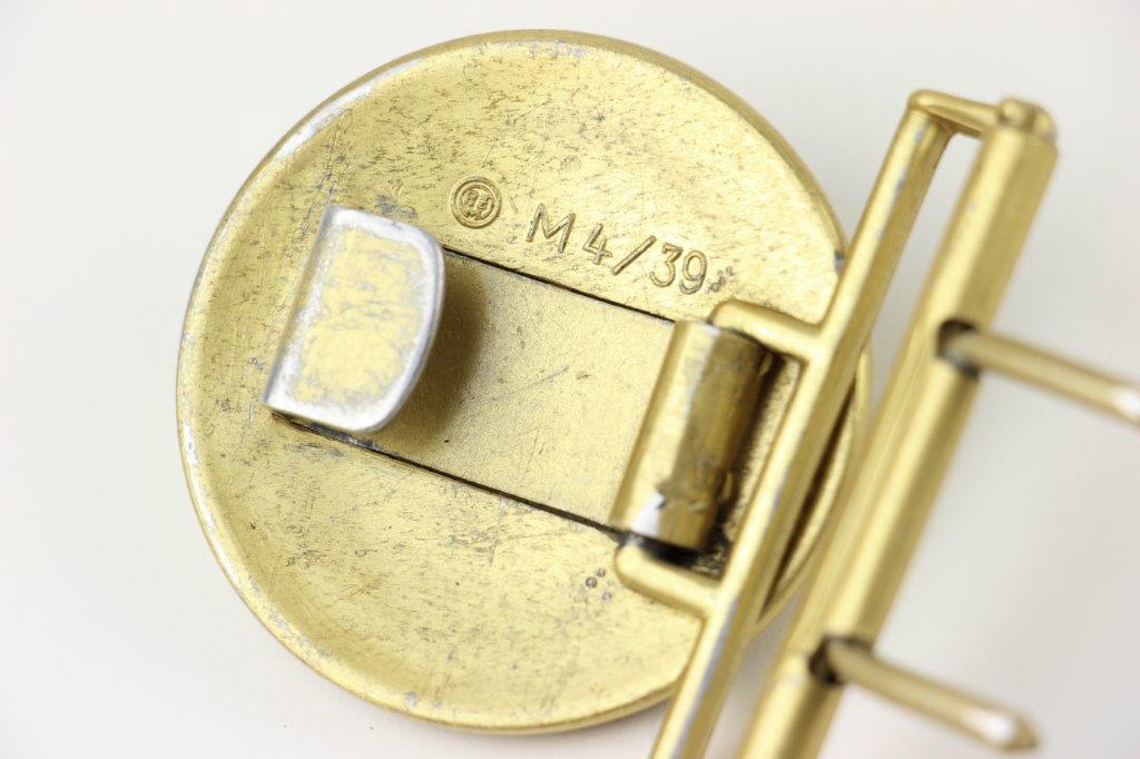 6/22/24 – This is an original WW2 German Party Leader Uniform Belt Buckle. The buckle is in great condition with a clean gold gilded finish. Light patina and high edge wear on the front of the buckle. Great condition details. The reverse is maker stamped “RZM M4/39” for F.W. Assmann & Sohne. The reverse has light age and patina often referred to as “honest wear”. Overall a great example.