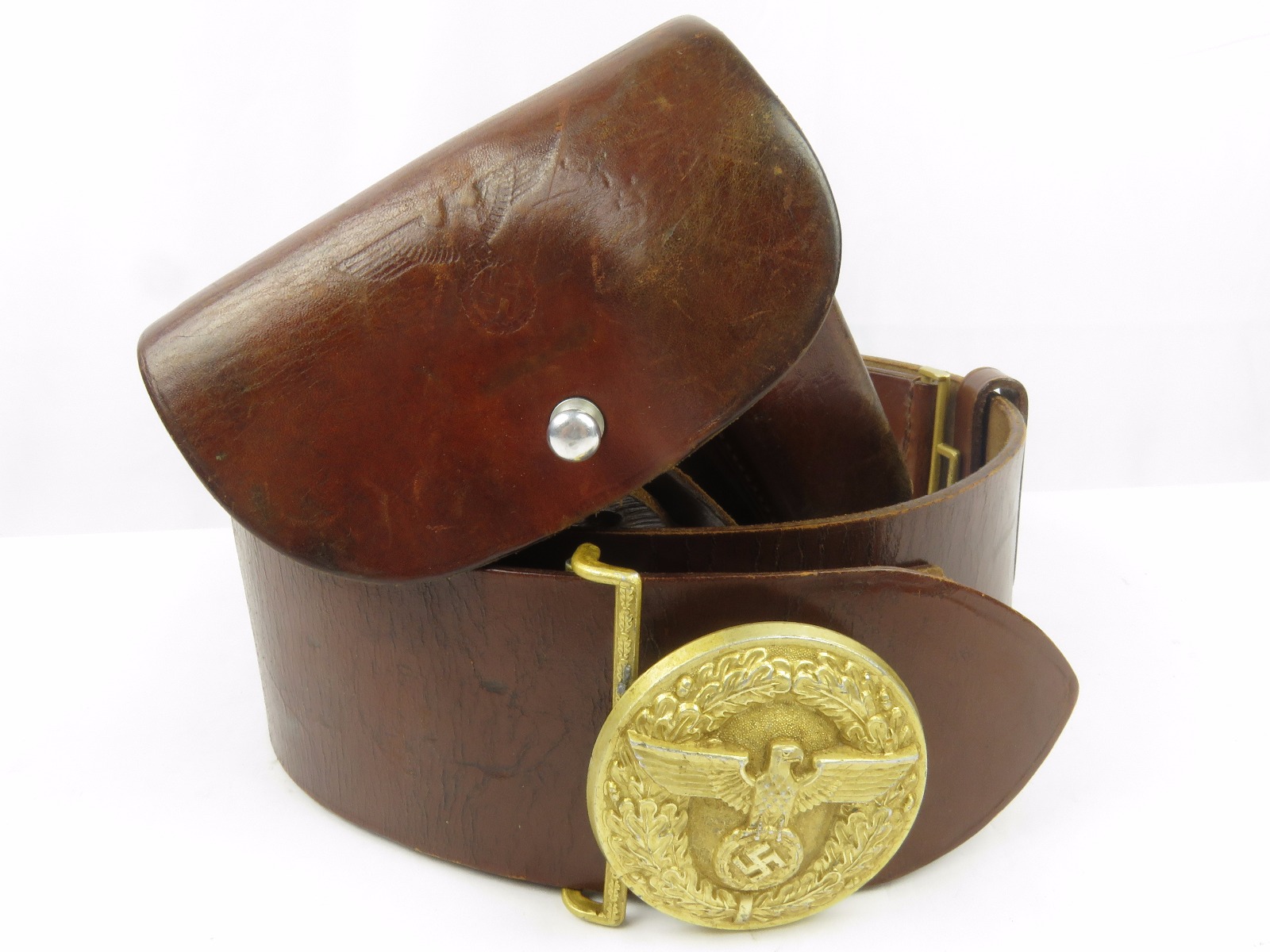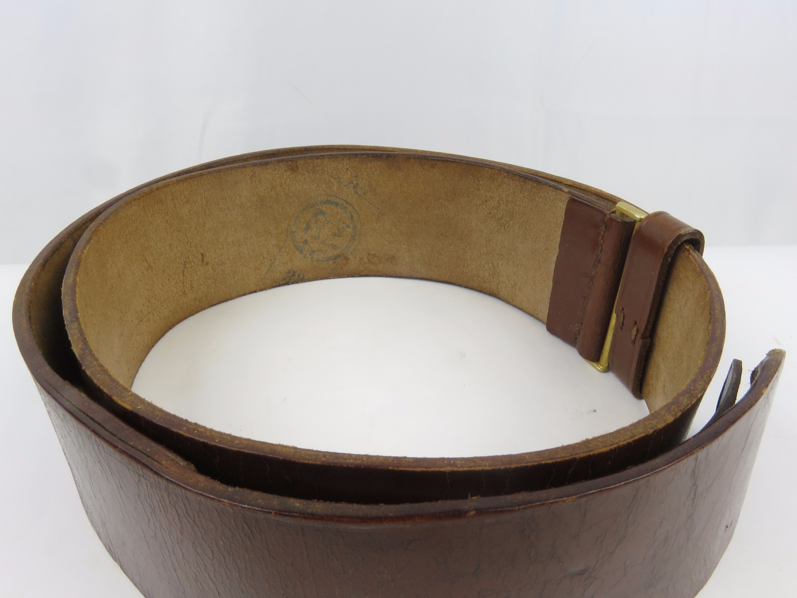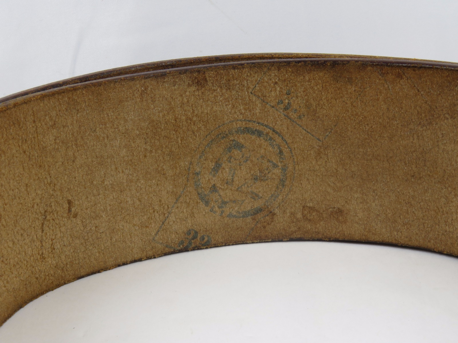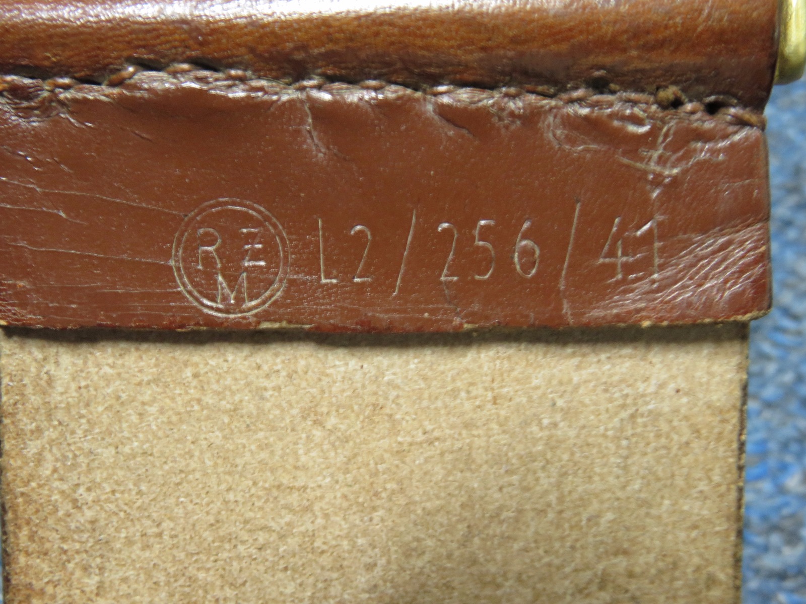 10/24/17 – This is an original WW2 nazi party leader holster complete with an original party leader belt and buckle! This rig is excellent overall, with the holster having a nice party leader stamp on the front leather. These scarce holsters have become harder to find in such nice condition. The leather is fairly firm and completely in tact outside of a few normal surface scuff and aging wear. The stitching is all original and excellent. The buckle and belt are both RZM stamped and excellent as well. The belt is minty leather – very clean and firm. The interior has a faint RZM ink stamp – and the end has another RZM stamp. Guaranteed all original and excellent!