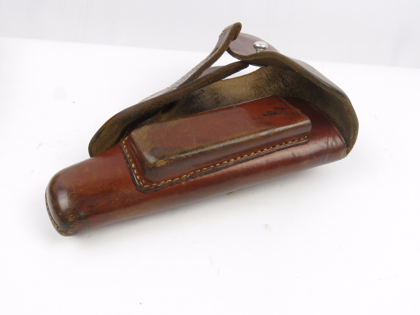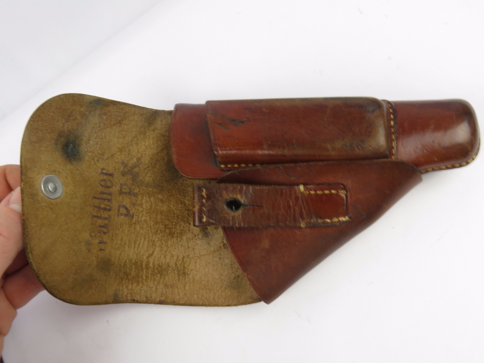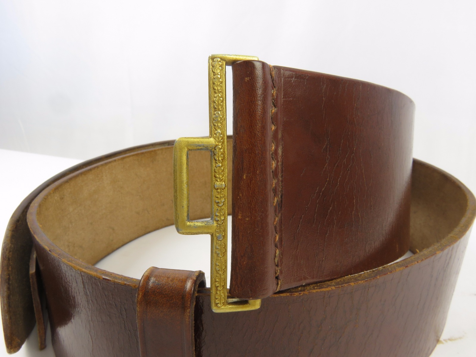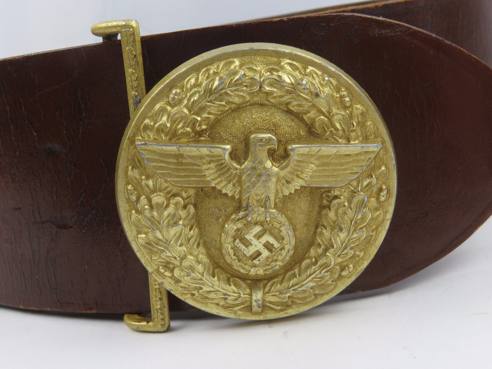 10/24/17 – This is an original WW2 nazi party leader holster complete with an original party leader belt and buckle! This rig is excellent overall, with the holster having a nice party leader stamp on the front leather. These scarce holsters have become harder to find in such nice condition. The leather is fairly firm and completely in tact outside of a few normal surface scuff and aging wear. The stitching is all original and excellent. The buckle and belt are both RZM stamped and excellent as well. The belt is minty leather – very clean and firm. The interior has a faint RZM ink stamp – and the end has another RZM stamp. Guaranteed all original and excellent!