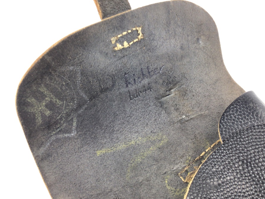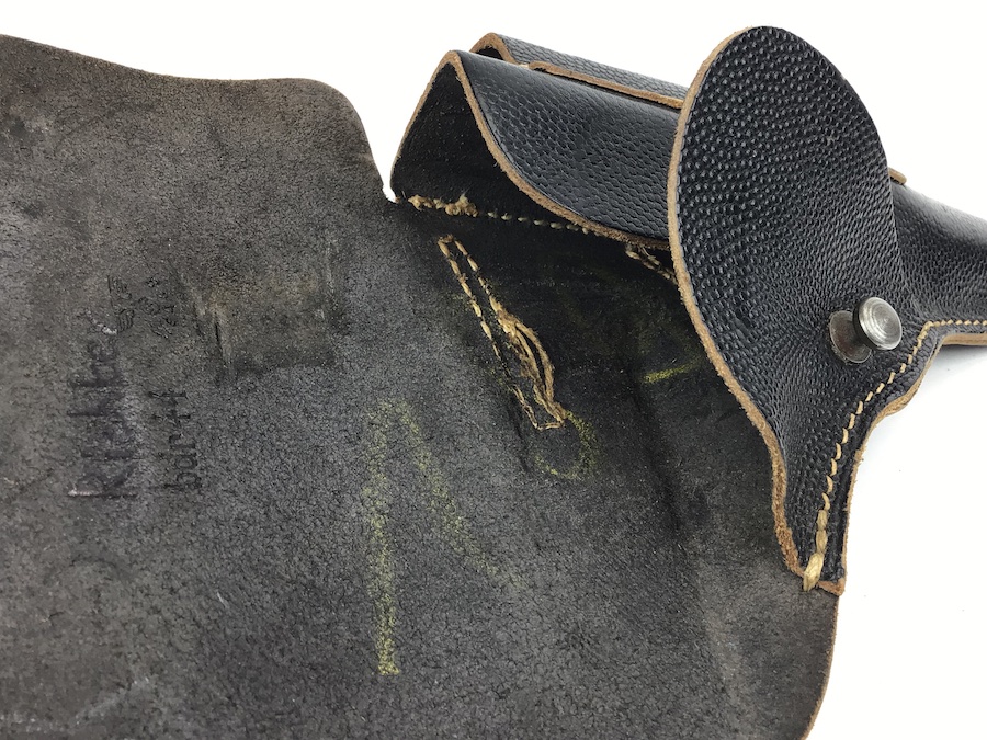 9/28/21 – Original and excellent condition. This pebble grain holster is for the FN 1910 / 1922 handgun. Maker stamped and dated under the closure flap “bdr44” along with military waffen proof WaA48. There is also a Krieghoff ink stamped “Star HK” Clean interior. The name “Richber” is also written under the flap.