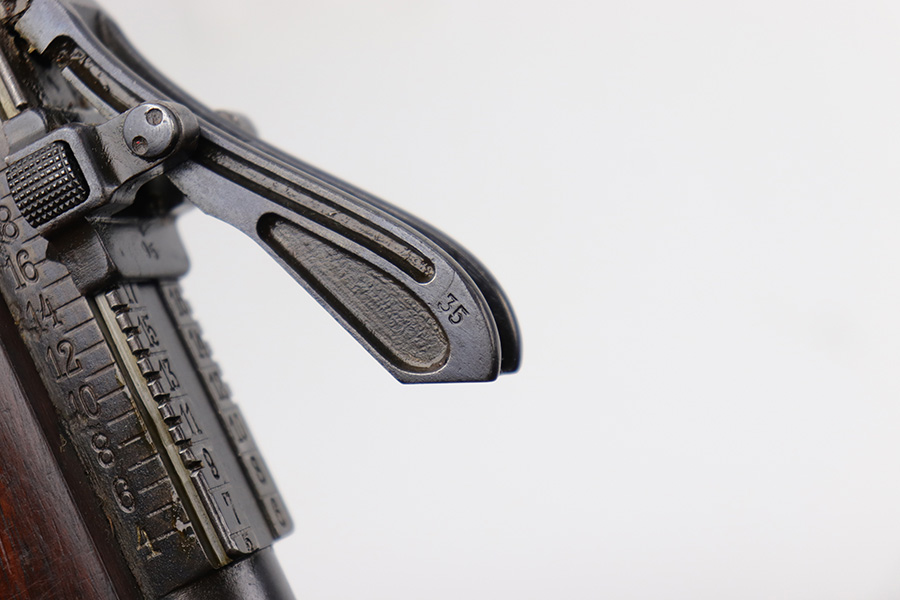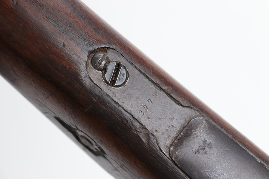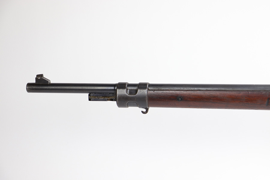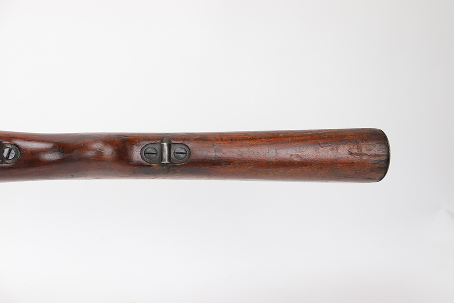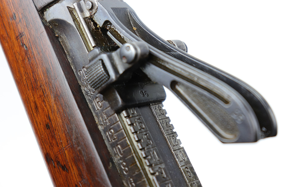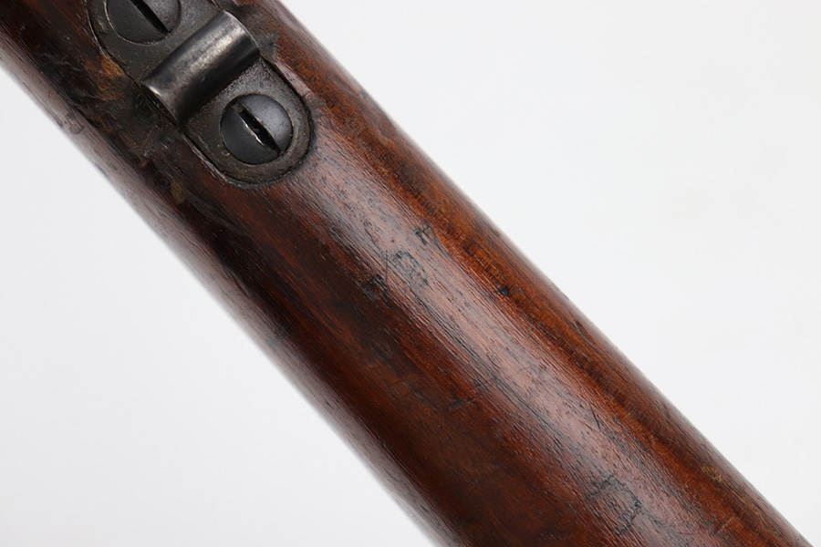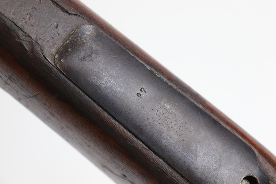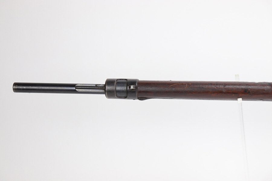 8/4/23 – This is a nice example of a Peruvian-contract Mauser Model 1909 rifle, manufactured between 1910-1914. The gun is mismatched but has the proper Peruvian crest on the receiver. No import marks. The entire gun has been refinished. There is very little actual bluing loss, but there are areas of pin-pricking under the finish throughout and some small dings on the floor plate / trigger group. Minor dings and scratches on the stock throughout. Mauser banner logo on the right side of the butt stock. The bore has good rifling with just minor pin-pricking throughout.