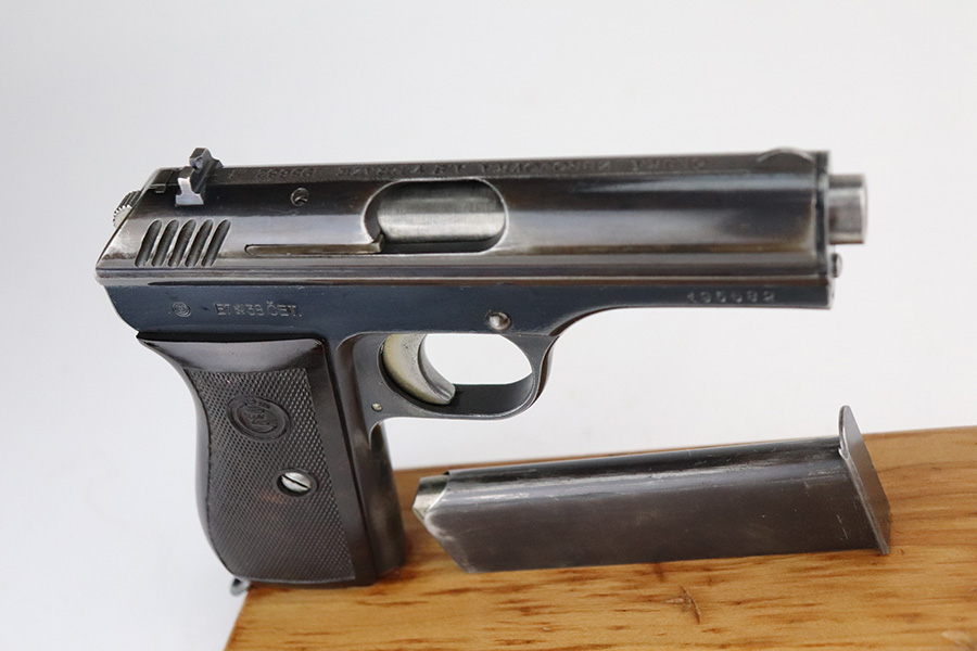 7/22/21 – This is an original CZ Vz. 24 that was made in 1938 and issued to the Czech police, as indicated by the ‘CET’ marking on the frame. It’s a very late example as the Nazis invaded soon after, but allowed the Czech police to keep their guns under Nazi supervision. This pistol is original but the slide and front strap have noticeable bluing loss. Nice grip with a few dings but no major chips or cracks. Shiny bore with strong rifling.