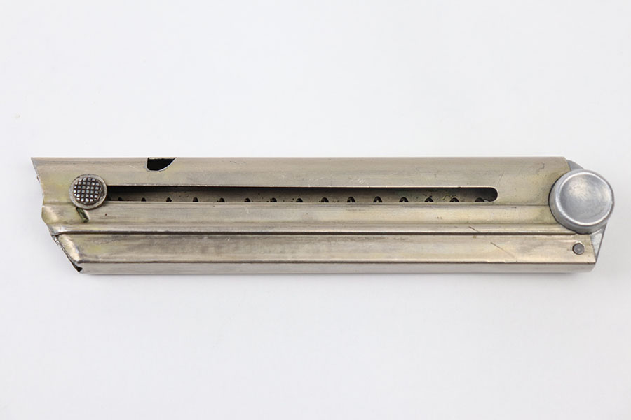 6/17/21 – This is an original, minty condition Police issued luger magazine. The magazine is stamped on the base with a serial number and police eagle/D proof stamp. No rust, pitting, or discoloration and a fully functional spring.