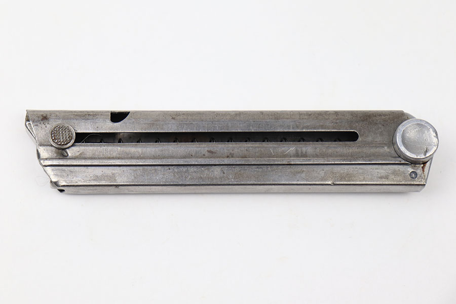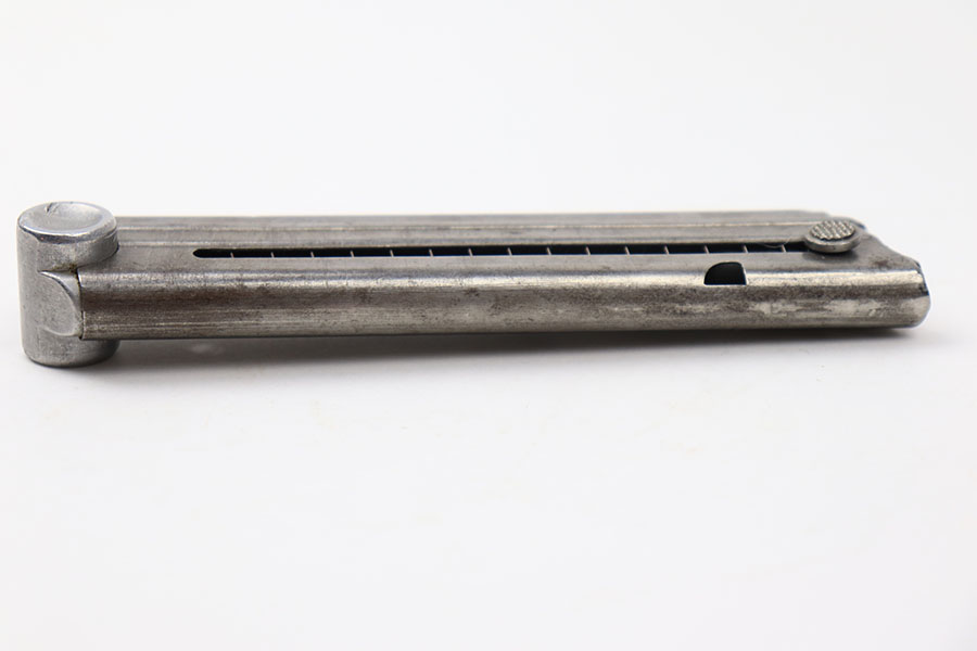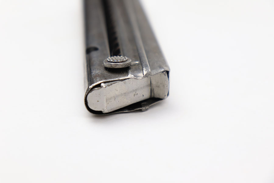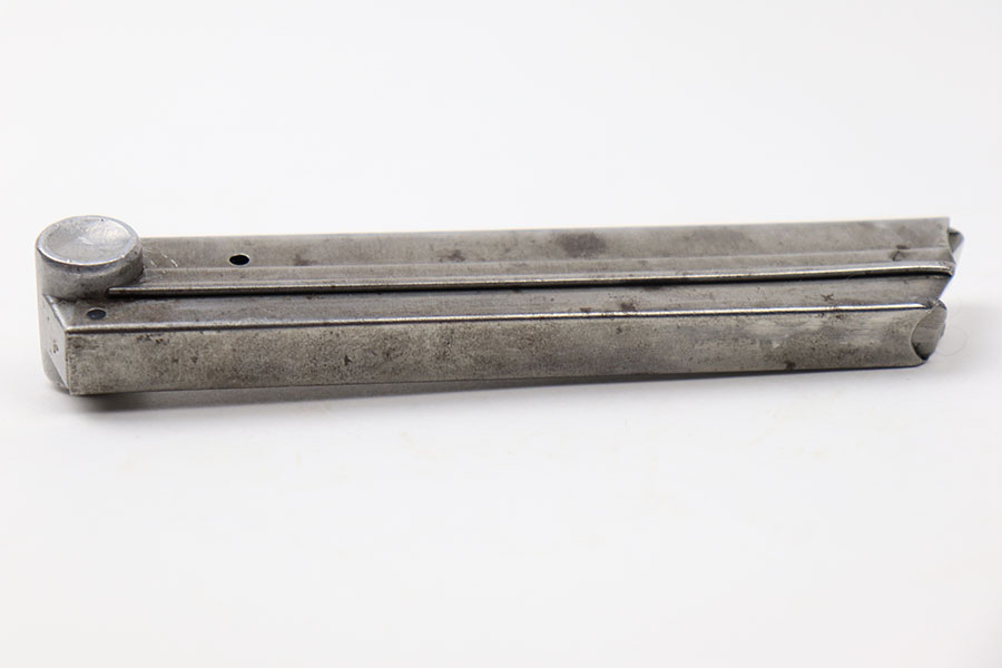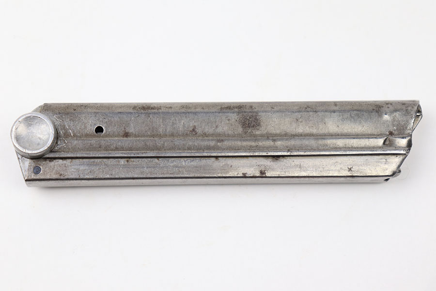 5/26/21 – This is an original Police Luger magazine from WW2. The magazine is in great overall condition with some mild patina on the tube but no rust or pitting. The base is stamped with a police eagle/L proof and no other markings. Strong, functional spring.