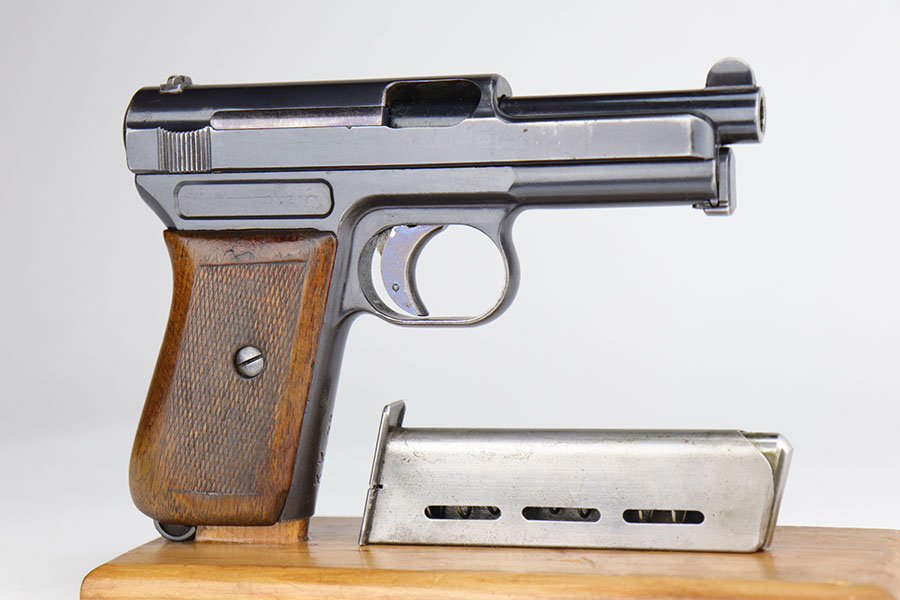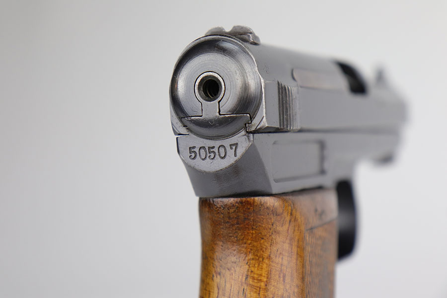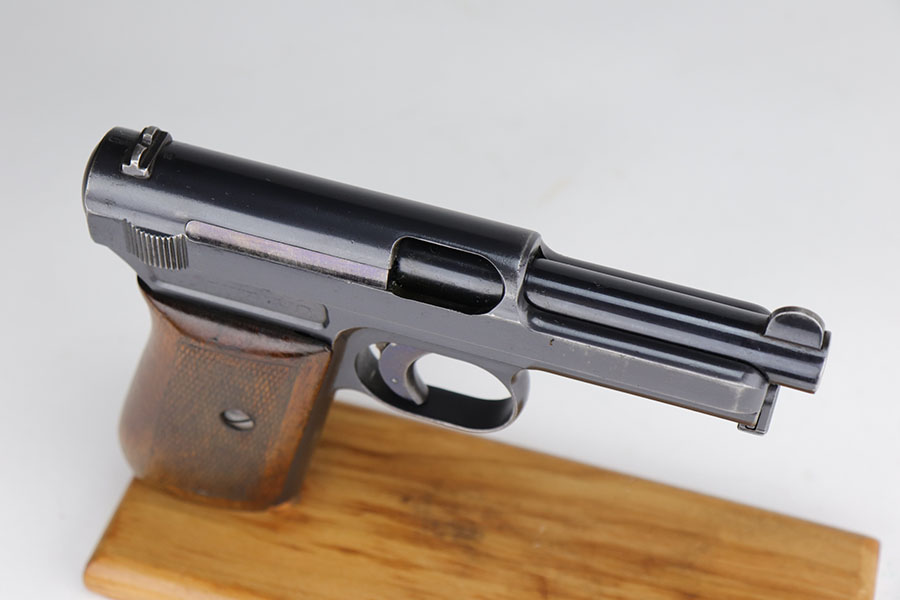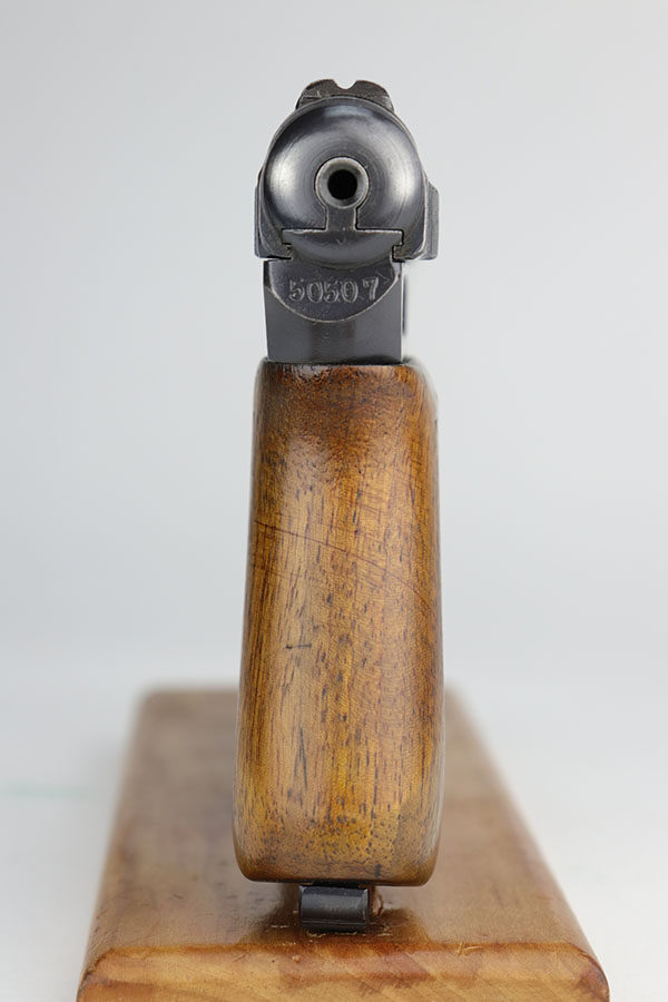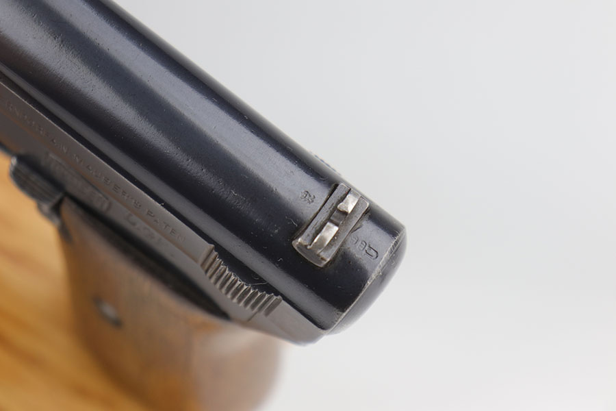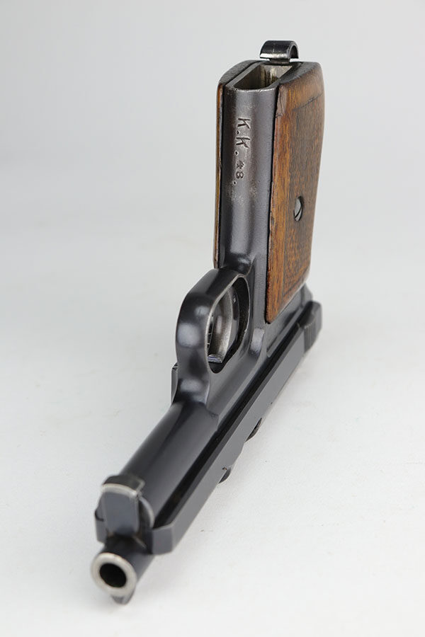 11/12/20 – This is an excellent example of a WW1-Era Mauser Model 1914, issued to the German police force. It is all matching and has “Crown U” proofs. There is an “L.GR.” and “K.K.48.” police arsenal markings on the frame and front strap, respectively. This gun has retained about 94-95% of its original finish. There is minor wear around the muzzle and high edges of the slide and frame. Minor wear on the front strap. It comes with an excellent period correct grip and one period correct magazine. The bore is excellent – shiny with strong rifling. The magazine release button is a little stiff.
