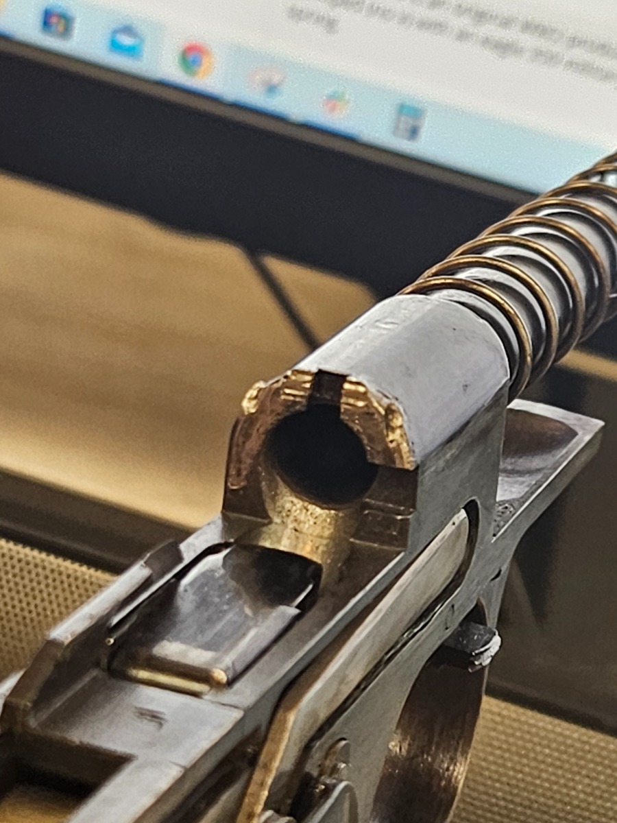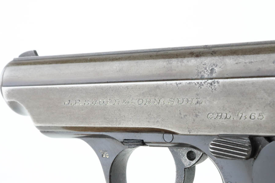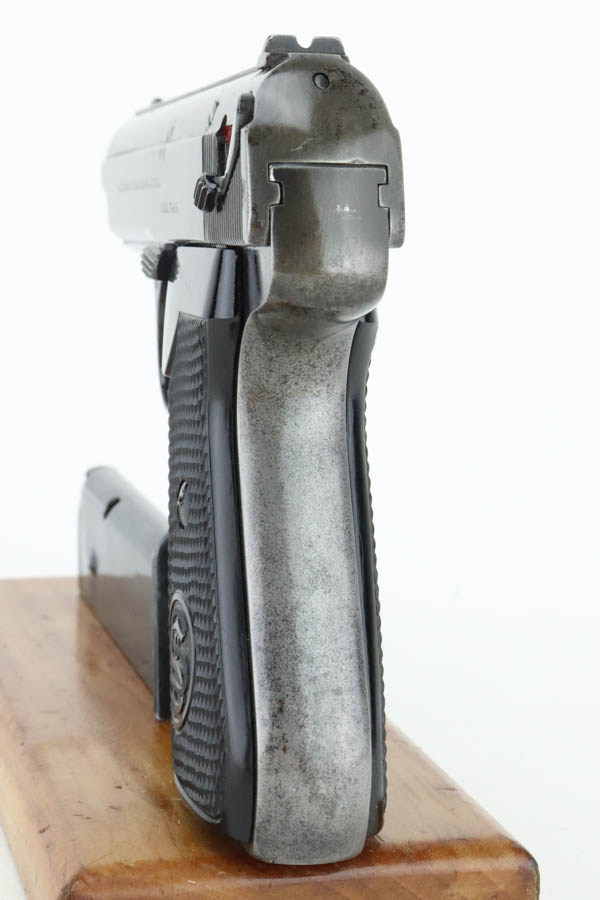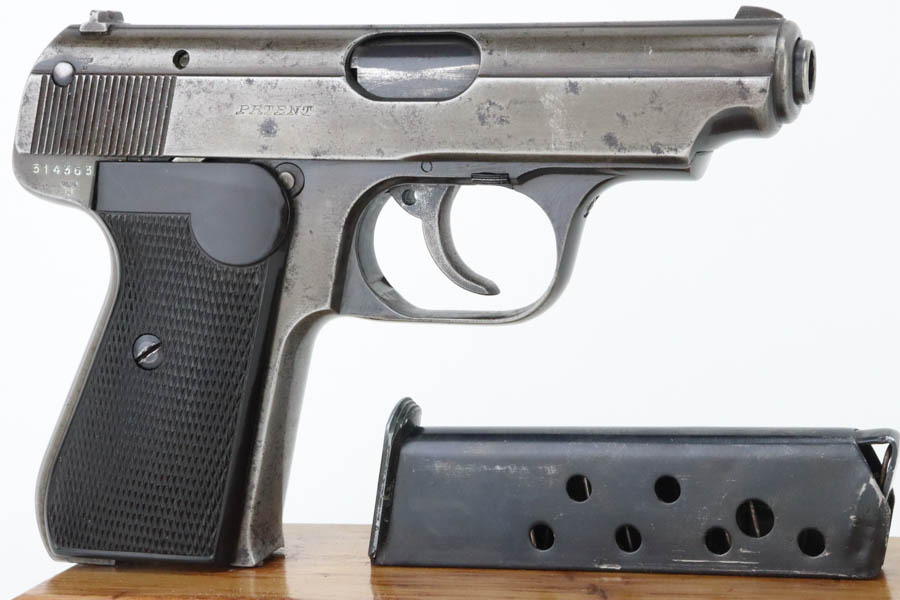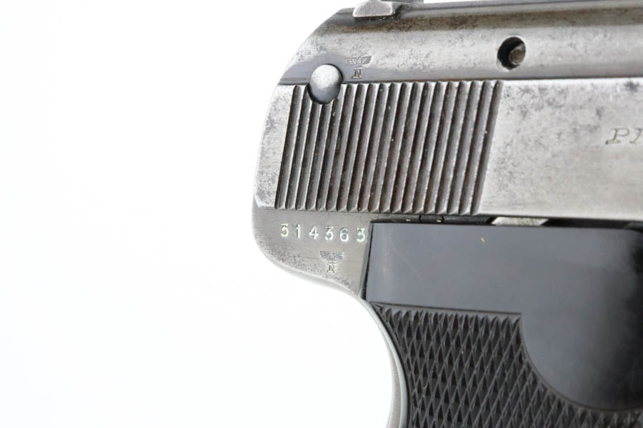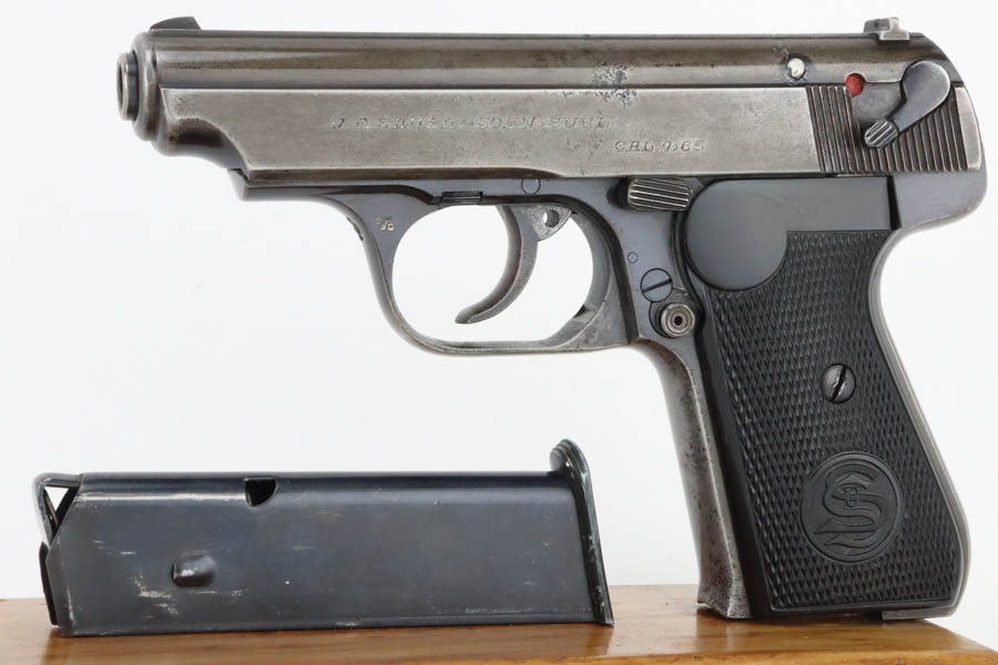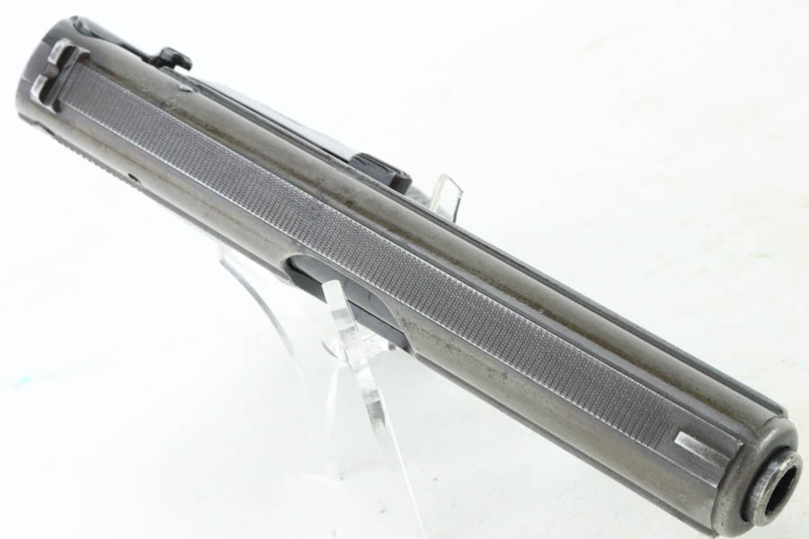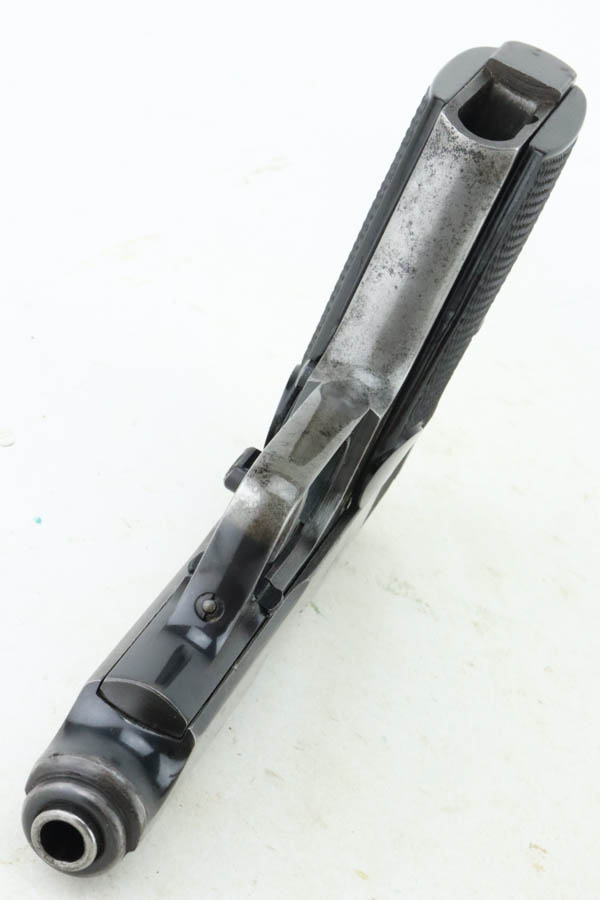 05/28/2024 – For sale is a Police issued Sauer 38h chambered in 7.65mm and made around WW2. The handgun is an overall 85% finish. The slide has lost majority of its original finish and the front & back straps of the frame and trigger guard are also heavily worn. There is an Eagle/C stamped on the frame to note it being issued to the police. There are some minor pitting on the frame and slide as well. The plastic grips are clean and free of cracks. There is some slight marring on the breech of the barrel. The bore is excellent and very bright.