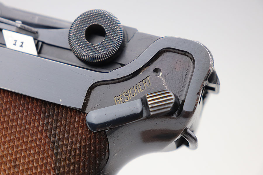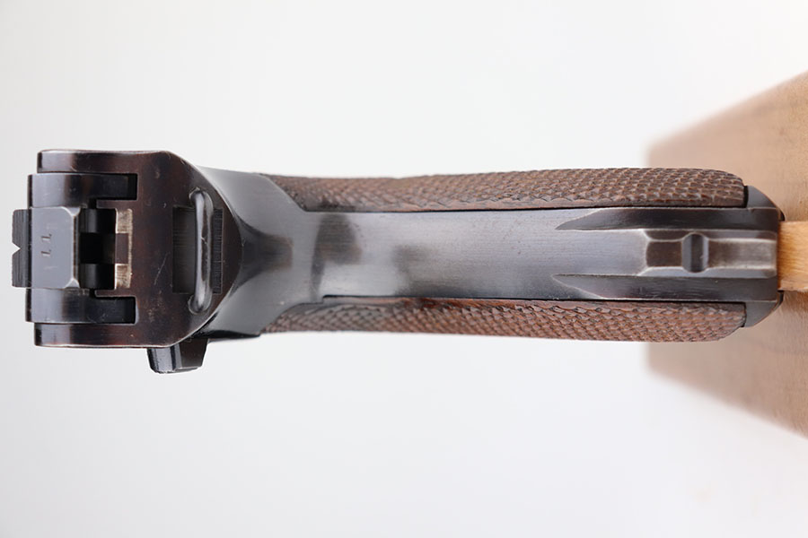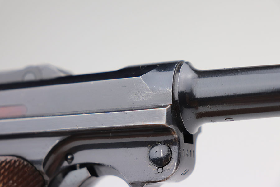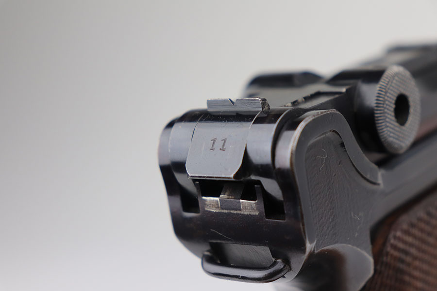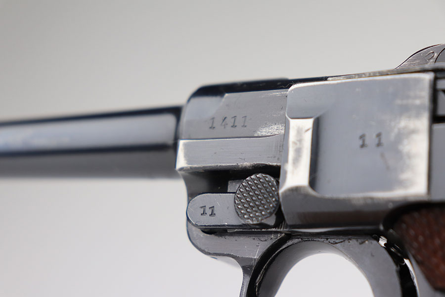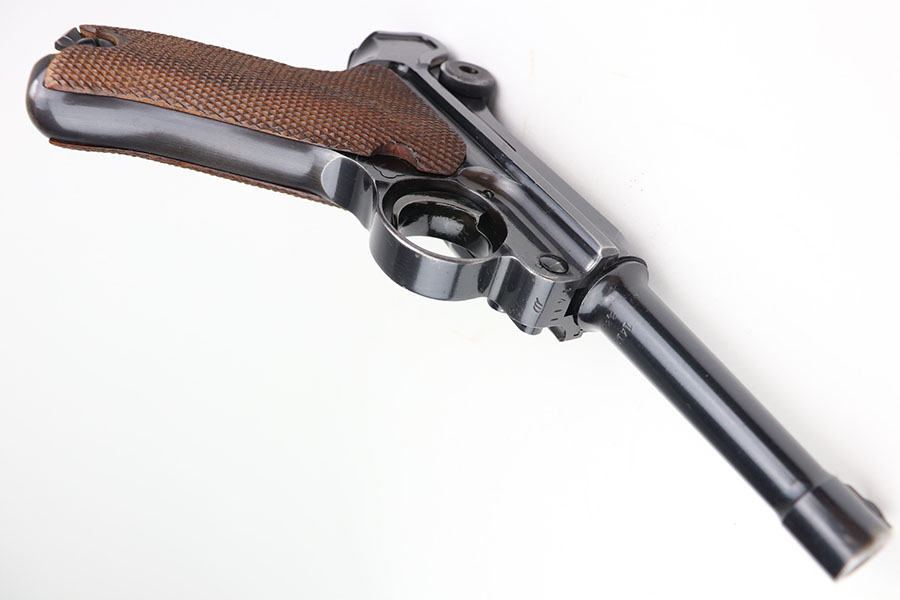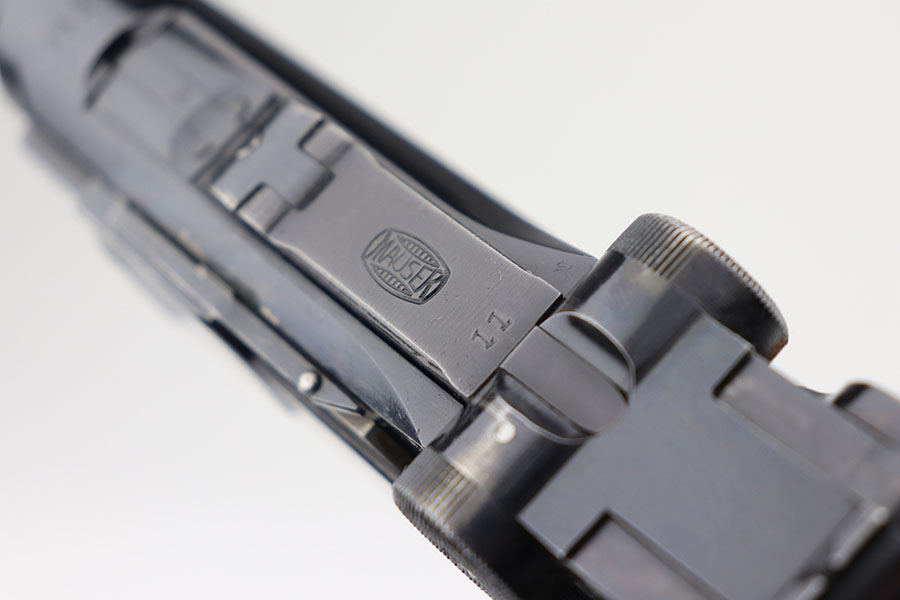 2/1/21 – This is a very rare and original Mauser Luger that was issued to the German Police in 1939, and is marked with Eagle/C proof on receiver. It’s all matching and original with nearly all the bluing loss on the sideplate and left side of barrel. It’s otherwise in excellent condition. There were only about 1,300 of this variation produced. Excellent grips with no defects. Magazine is also Eagle/C proofed and unnumbered.