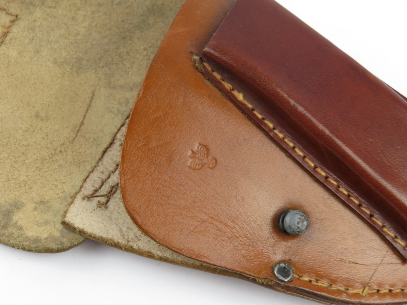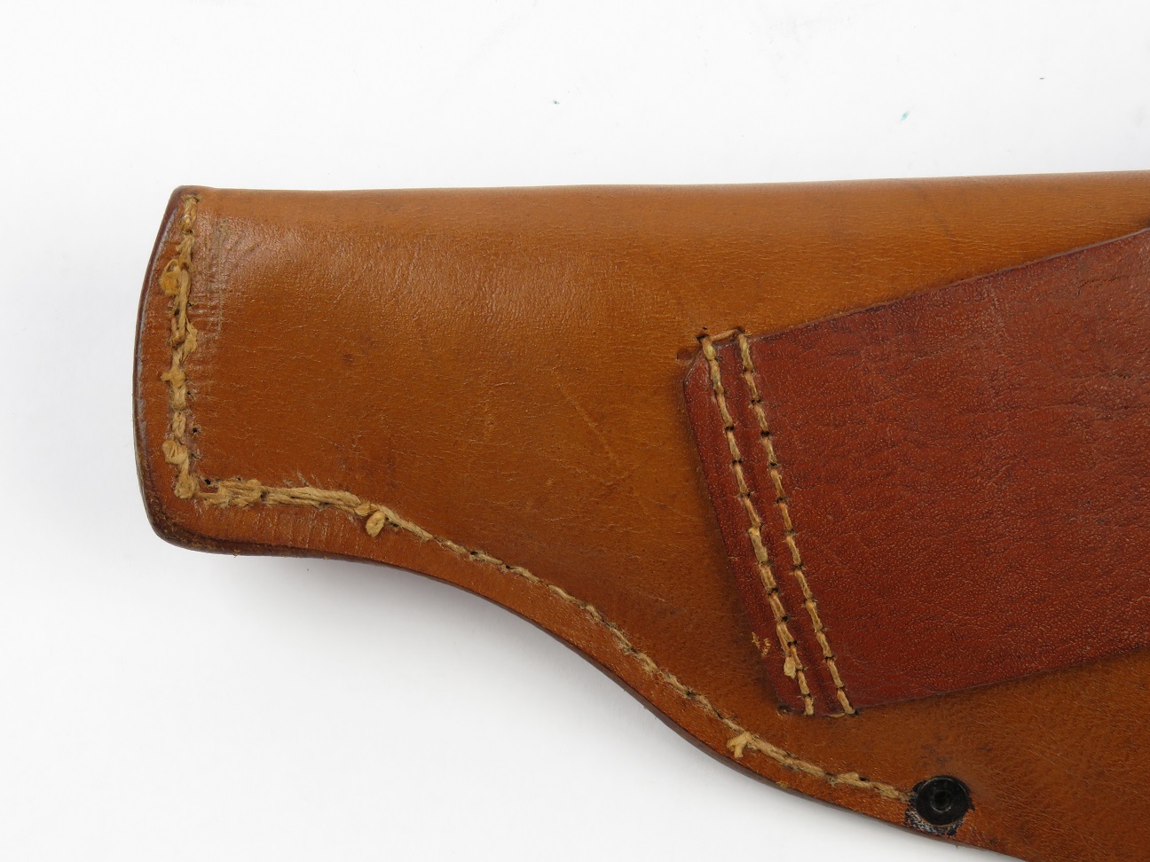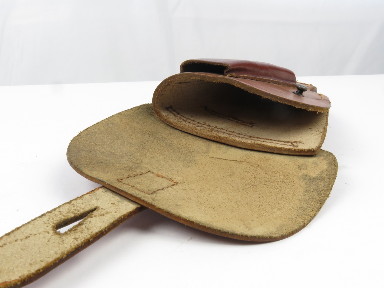 7/26/17 – This is an excellent, unissued condition Mauser police pistol holster from WW2. The holster is stamped with a police eagle mark, and no other markings. The leather is very clean and strong. The stitching is all original and excellent. The base of the holster is double and triple stitched, and I’m not sure why. However this appears all original and correct. Fits a model 1934 or similar sized pistol.