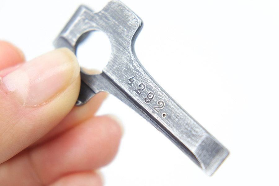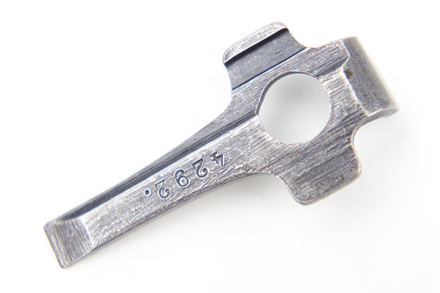 3/24/23 – This is an original Luger tool with a unit or serial number stamped on the back side. These are commonly considered Police tools, as the police were known to add unit number stamps, but this could also be a WW1 unit stamp. The tool is in great condition with some typical surface patina throughout.