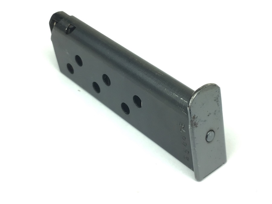 1/17/20 – This is an original WW2 production Walther PPK police numbered magazine. The right side of the magazine is serial numbered on the side of the frame, which is most likely from the police arsenal. This would be correct for an Eagle/C stamped PPK. Minimal use wear on the frame. The spring is strong and fully functional. Guaranteed original.