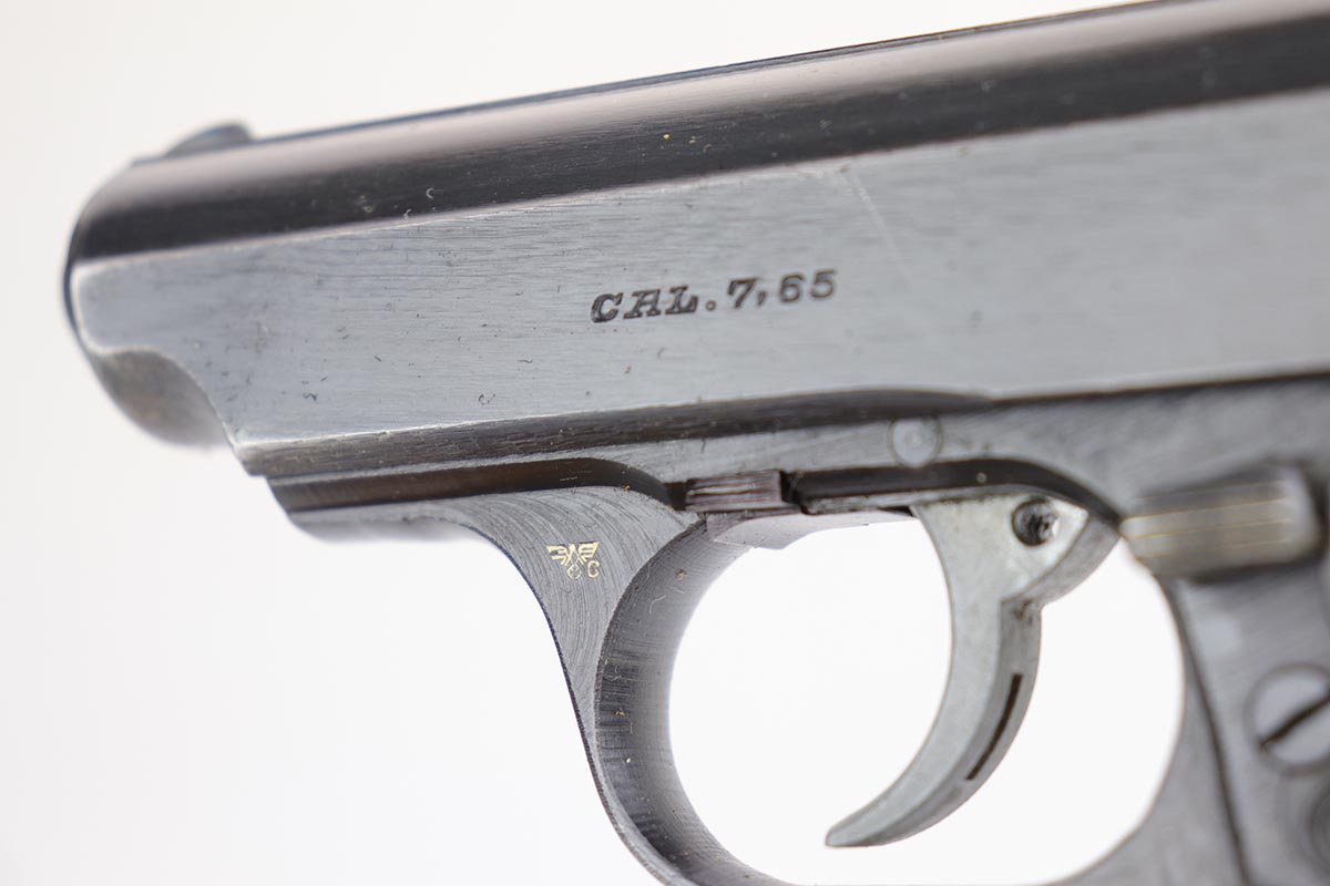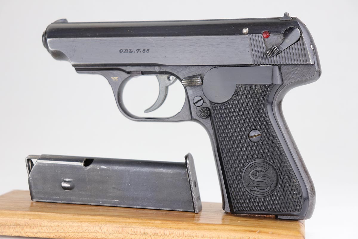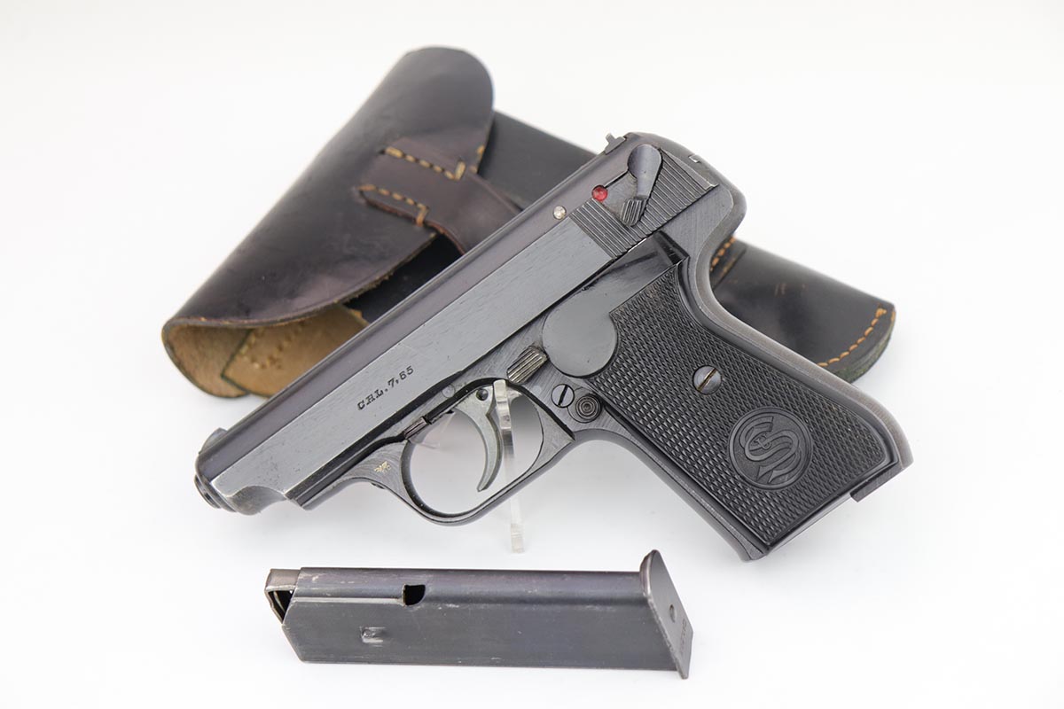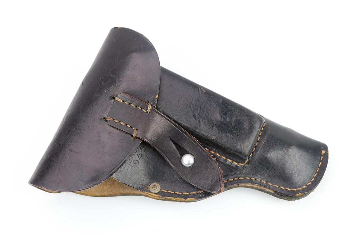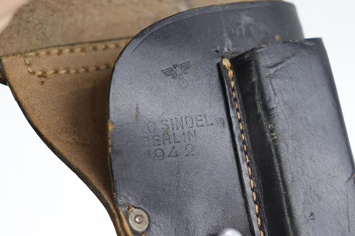 3/26/20 – This is a nice Police issued Sauer 38h with 1942 dated, Otto Sindel police holster. The gun has a very nice profile but notable thinning on the straps. Mint bore and excellent grips. One of only about 13,500 of this variation produced, with E/C on frame and military blue. Holster is in excellent shape.