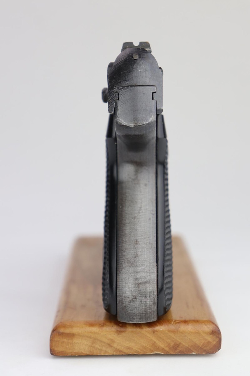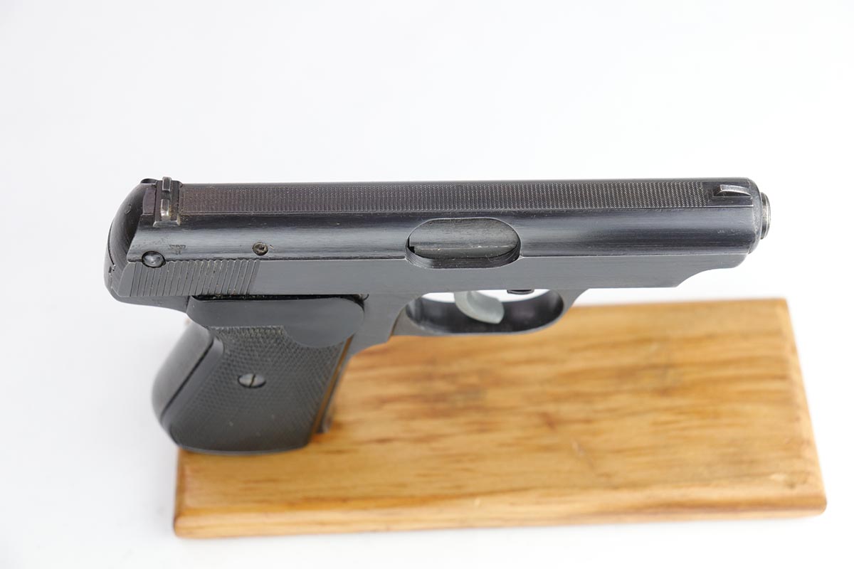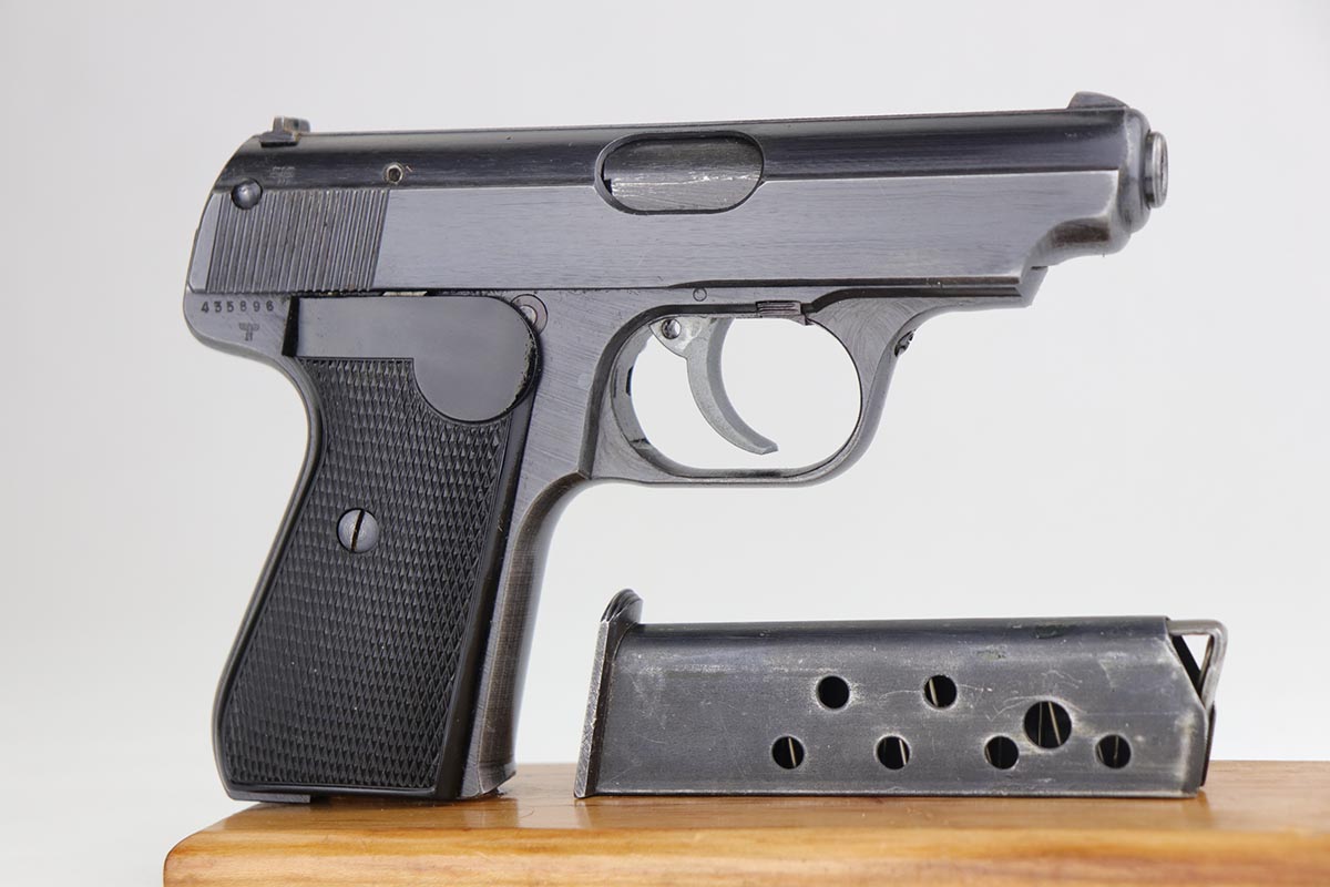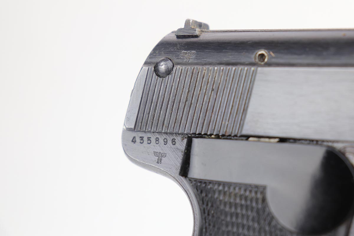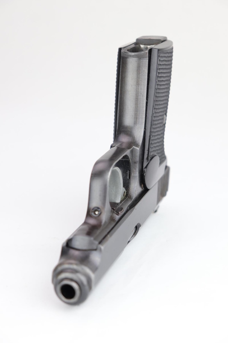 3/26/20 – This is a nice Police issued Sauer 38h with 1942 dated, Otto Sindel police holster. The gun has a very nice profile but notable thinning on the straps. Mint bore and excellent grips. One of only about 13,500 of this variation produced, with E/C on frame and military blue. Holster is in excellent shape.