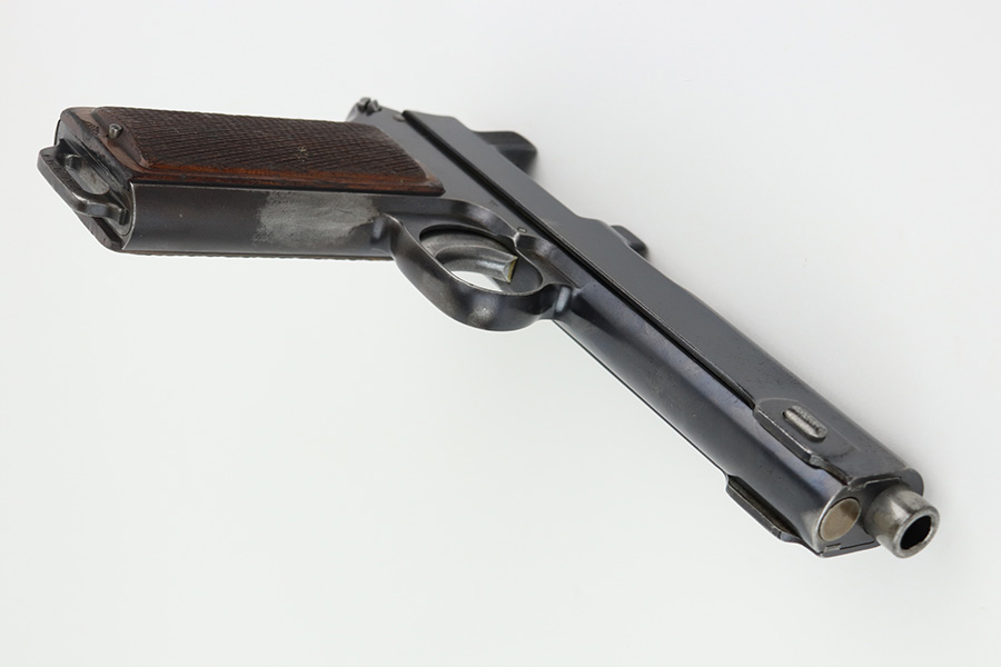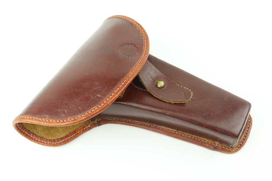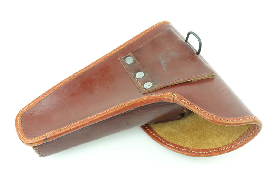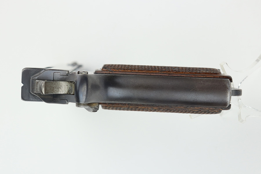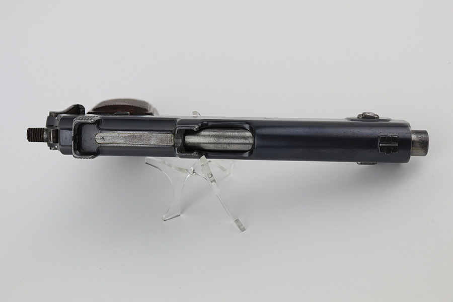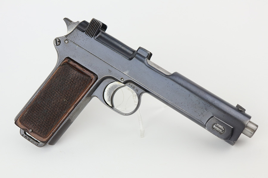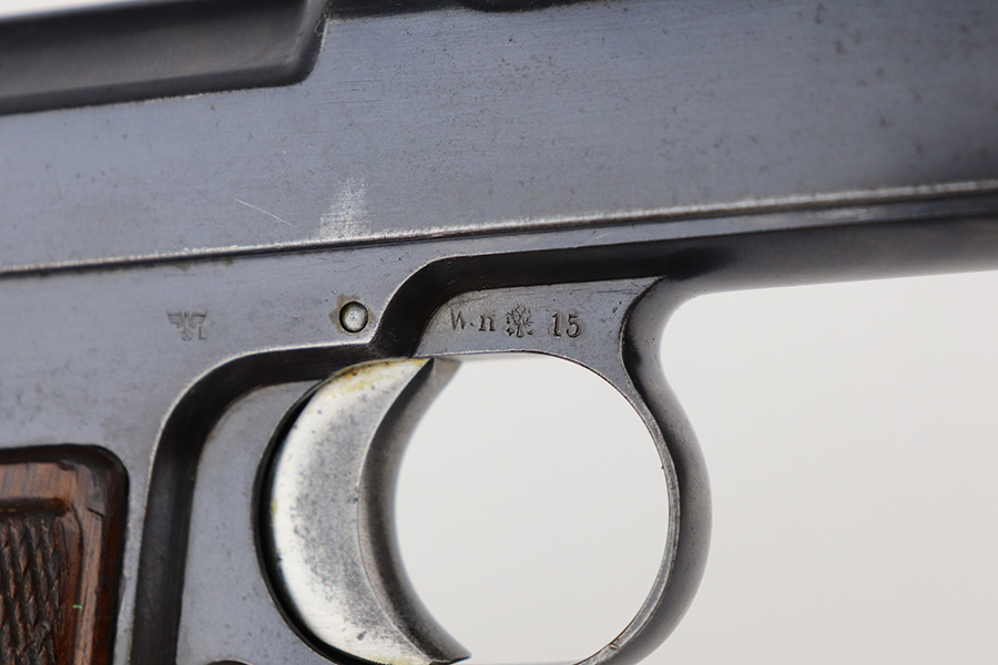 8/16/21 – This is an original and correct Steyr Hahn M1912 that was reworked by Mauser for use by the German police during WW2. The Steyr Hahn 1912 was manufactured in Imperial Austria, but after the 1938 German occupation of Austria some were converted to 9mm. They were stamped ’08’ to indicate this conversion, E/N proofed, and accepted with the German Police Eagle/L. This pistol is all original and correct with about 90% bluing remaining. There is some finish loss on the left side of the slide, and a large area of finish loss on the front strap that has some scratches in it, as well. Slide and frame are both dated 1915. Excellent bore. Comes with a very nice reproduction holster.
