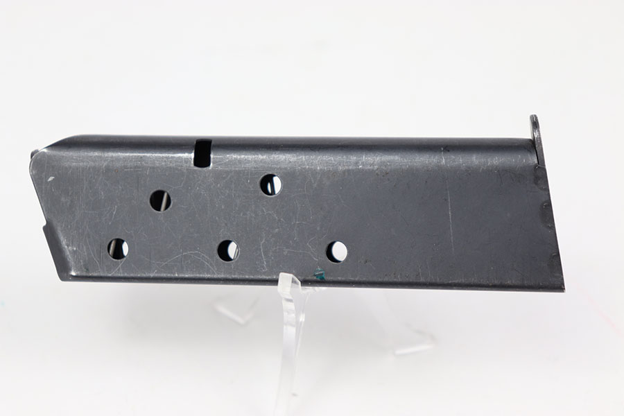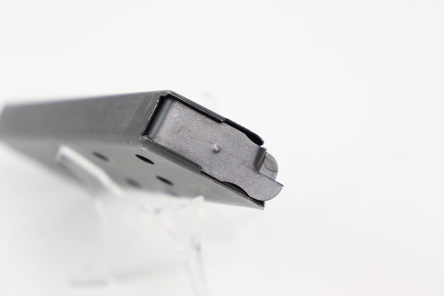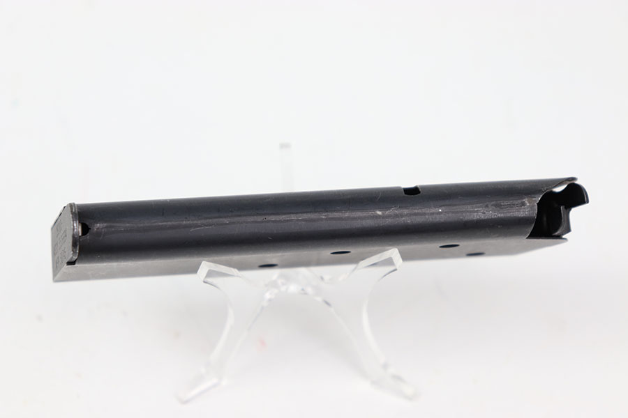 6/27/24 – This is a post WW2 60’s era 1911 magazine. Excellent condition with only some minor wear. Strong and functional spring. Magazine is marked on the baseplate.
