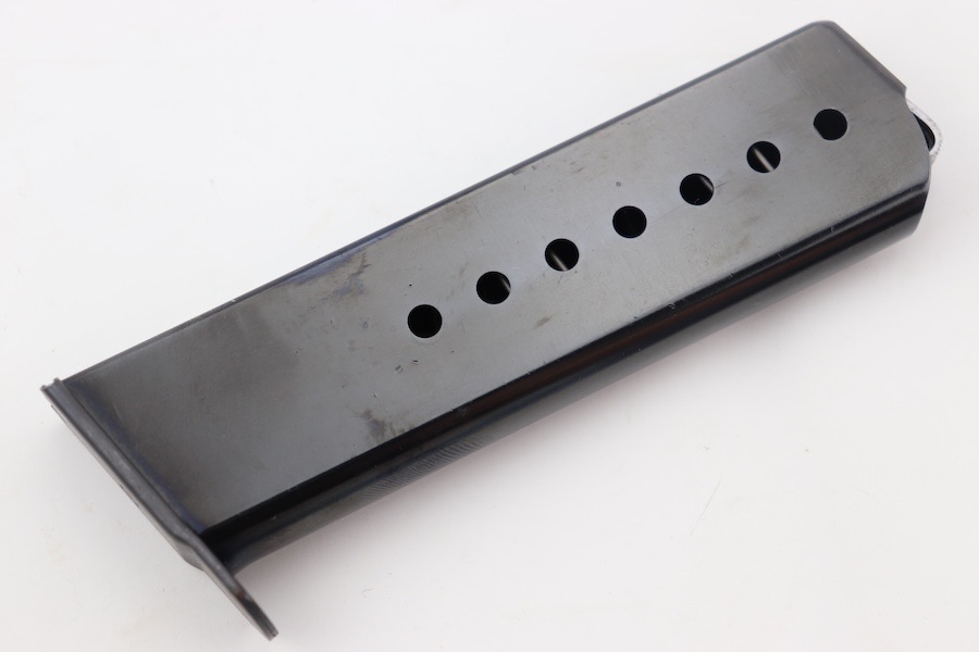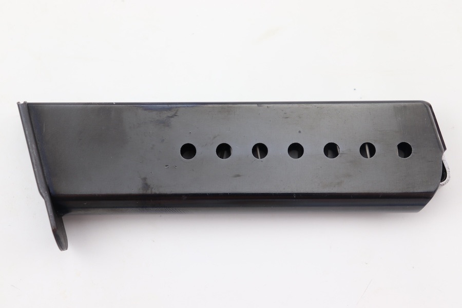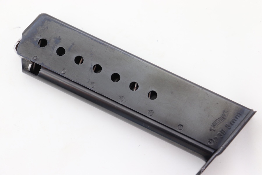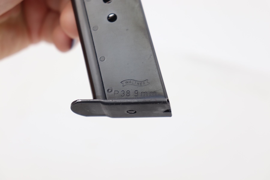 2/7/24 – This is an excellent condition Post WW2 Walther P.38 magazine. This magazine retains virtually all its original bluing finish, showing little to no wear. Spring works as it should. On the bottom left side is the Walther banner, along with P38 9mm.