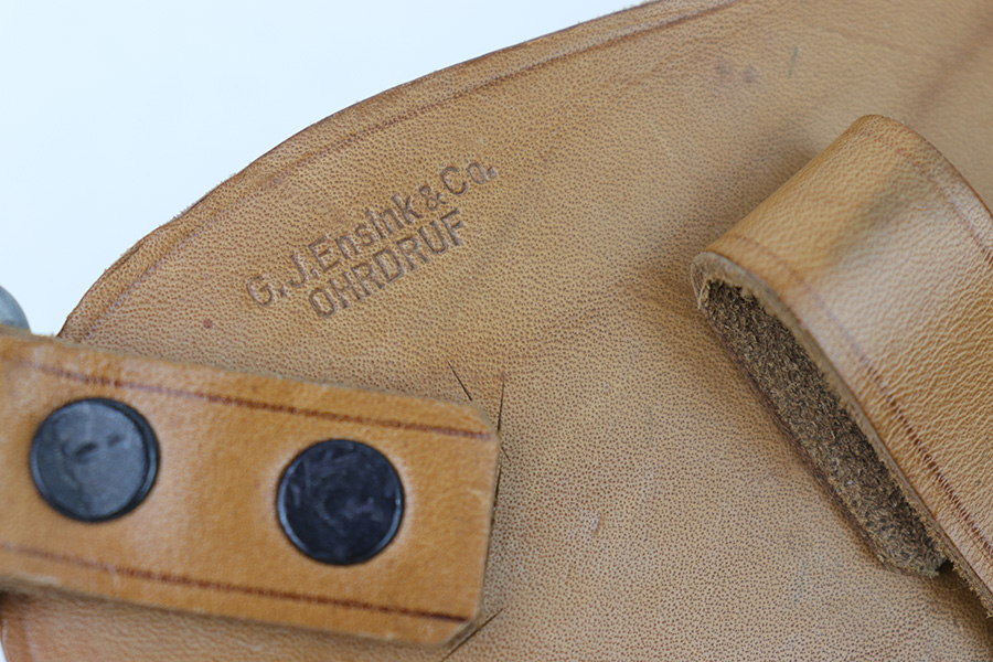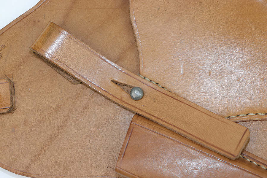 3/7/23 – This is a minty, unissued example of a Post WW2 production Walther PP / 7.65mm shoulder holster. All original leather and stitching intact with almost no signs of previous use or wear. Very clean and strong leather throughout, including the shoulder straps. Maker stamped on the front as shown.