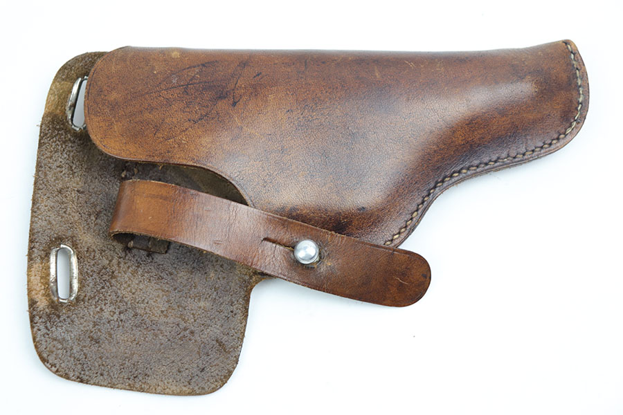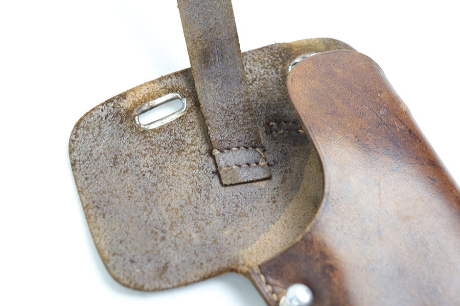 12/16/20 – This is an original AKAH stamped shoulder holster for a Walther PP or similar sized 7.65mm pistol. Made post wartime. The back leather is AKAH maker stamped and there are no other markings. A Walther PP fits the form of the holster perfectly. These are scarce desirable holsters.