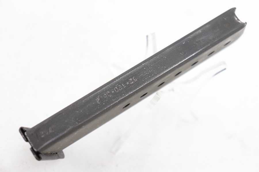 8/26/24 – For sale is a post WW2 East German Walther P.38 magazine. This magazine retains nearly all of its original parkerized finish with only light edge wear on the spine. Spring is strong with excellent retention. Marked on the spine is 12-120-08-2 with the date code 9/62. Marked on the bottom left side of the tube is Walther P.38 9mm. Excellent overall condition.
