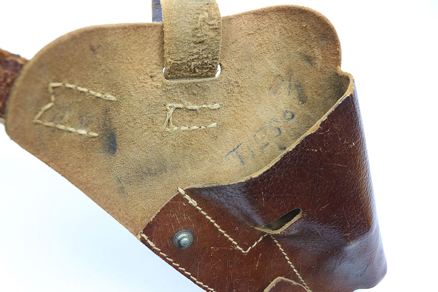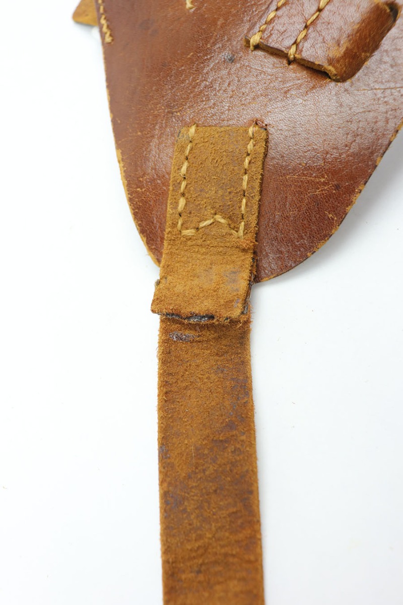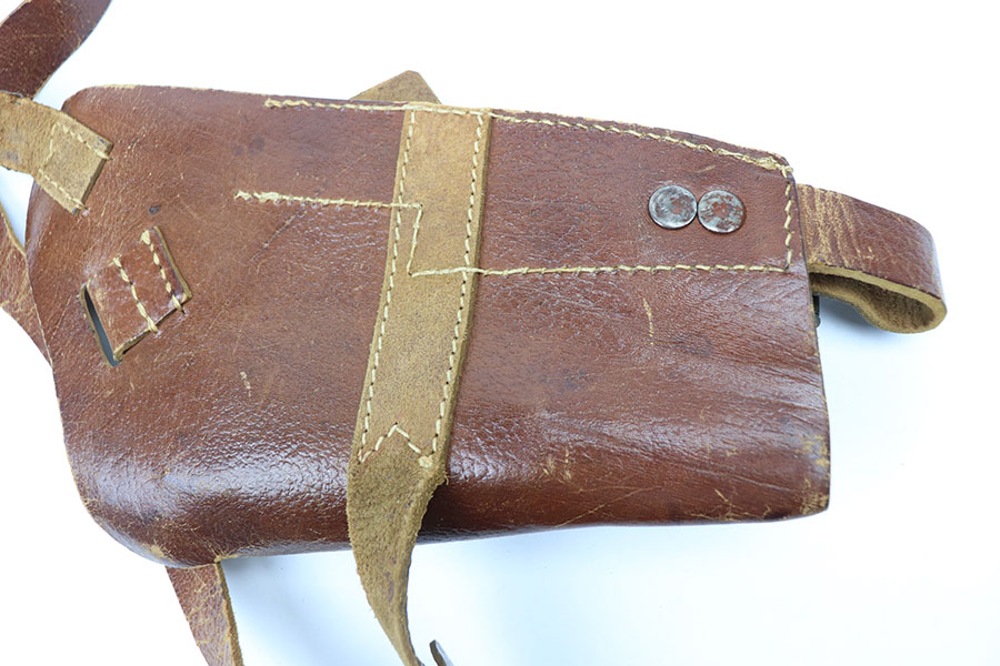 1/28/21 – This is a post WW2 production P.38 holster. Likely 1950s or 1960s production. The holster has some surface wrinkling and signs of previous use, but no major issues. Leather is all in tact, as is the original stitching. The shoulder strap has one “weak” point but the leather is still secure. No maker markings or stamps.