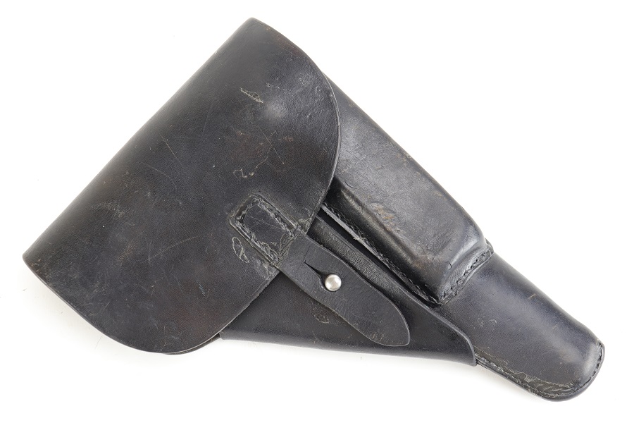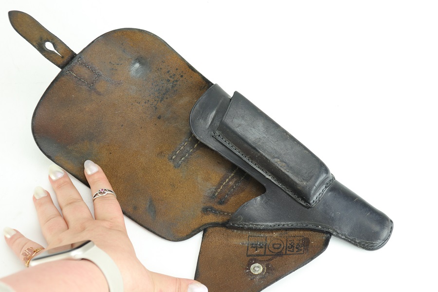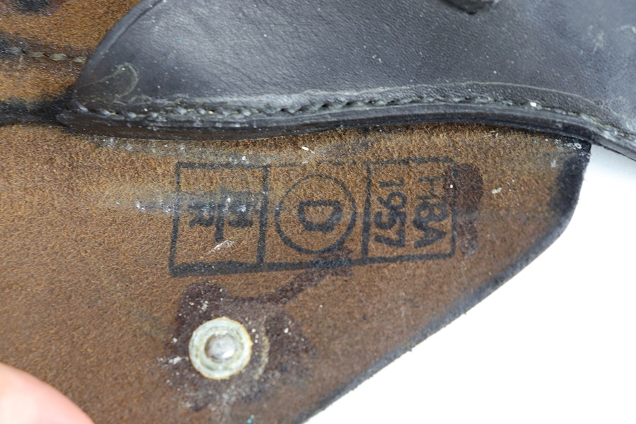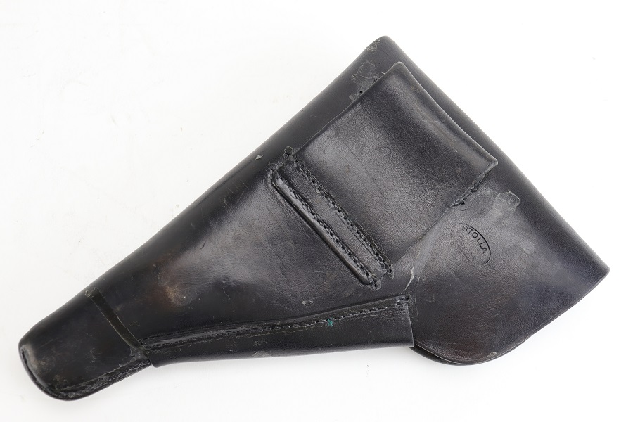 5/22/24 – This is a fairly early post war p38 holster that comes in great condition with original stitching. The exterior and interior of the holster is clean has minimal scuffs and or scratches. The back of the holster features its makers mark “Stolla Wien” though mildly worn down it is still legible.