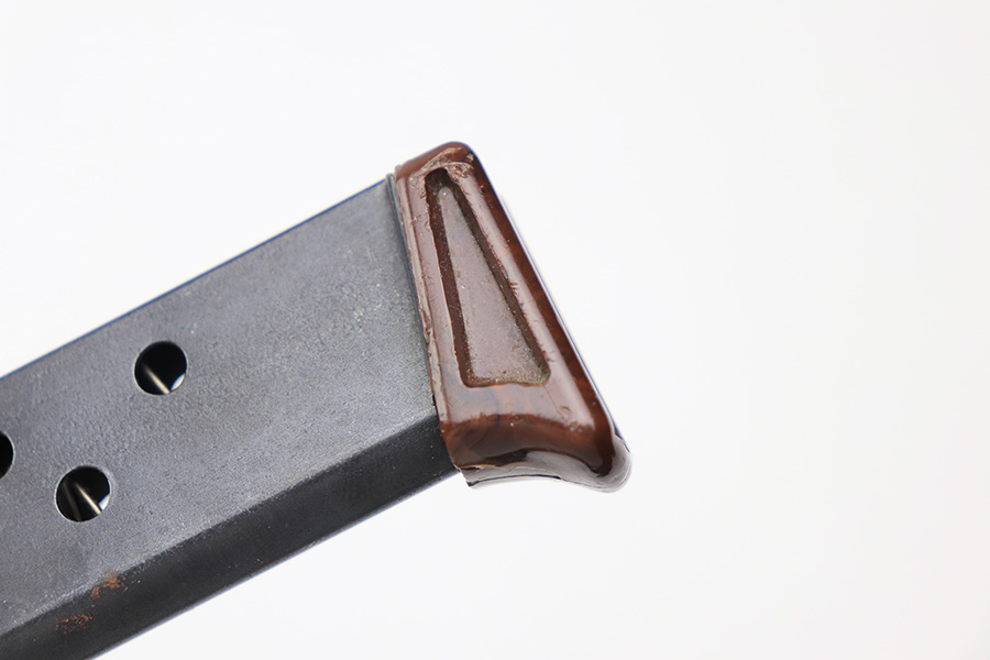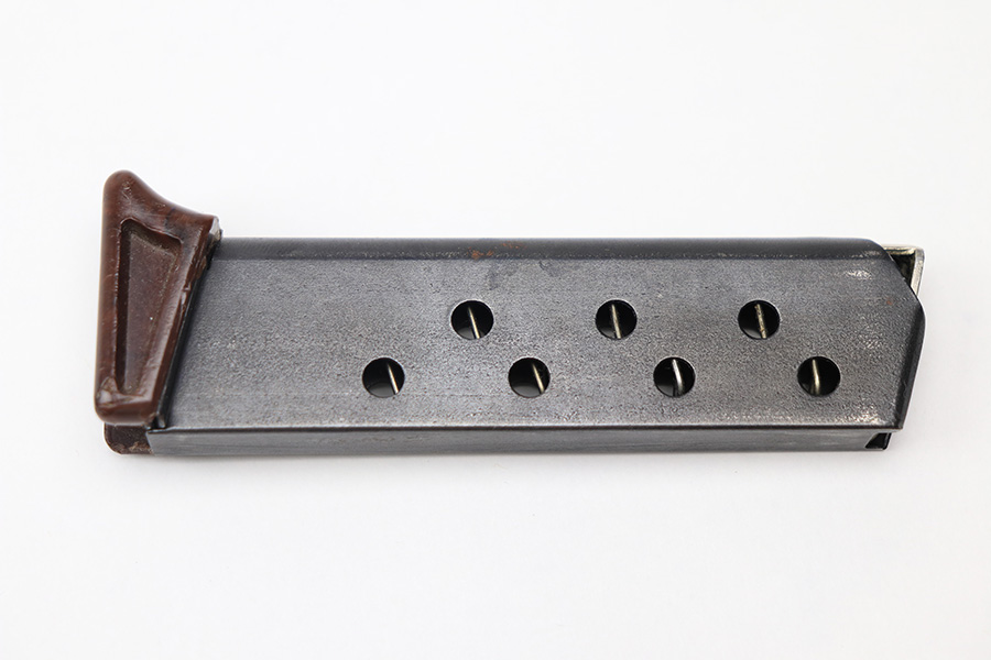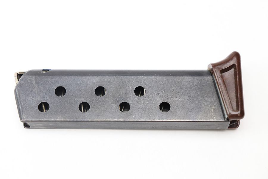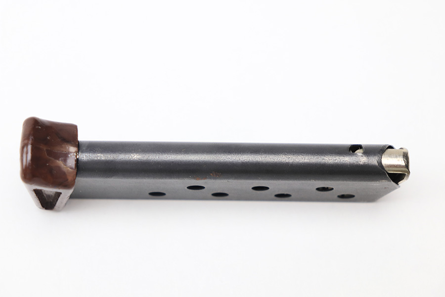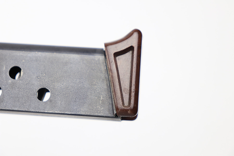 1/3/22 – This is an excellent example of a Post-war Walther PP magazine. The blued tube is in great condition, having retained a majority of its finish and only showing minor pinpricking throughout. The brown plastic bottom is also in great condition. The spring and follower are strong and functional. Fits .380 or 9mm kurz.