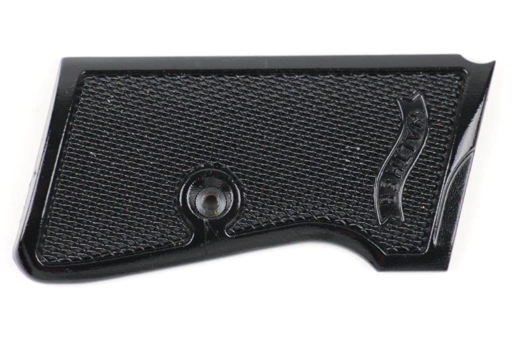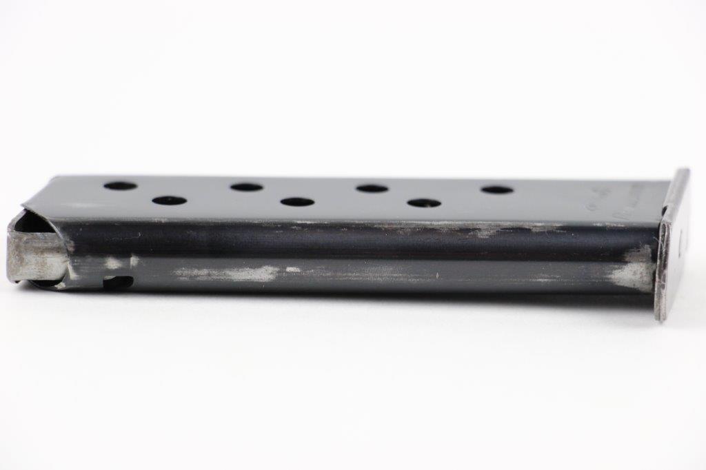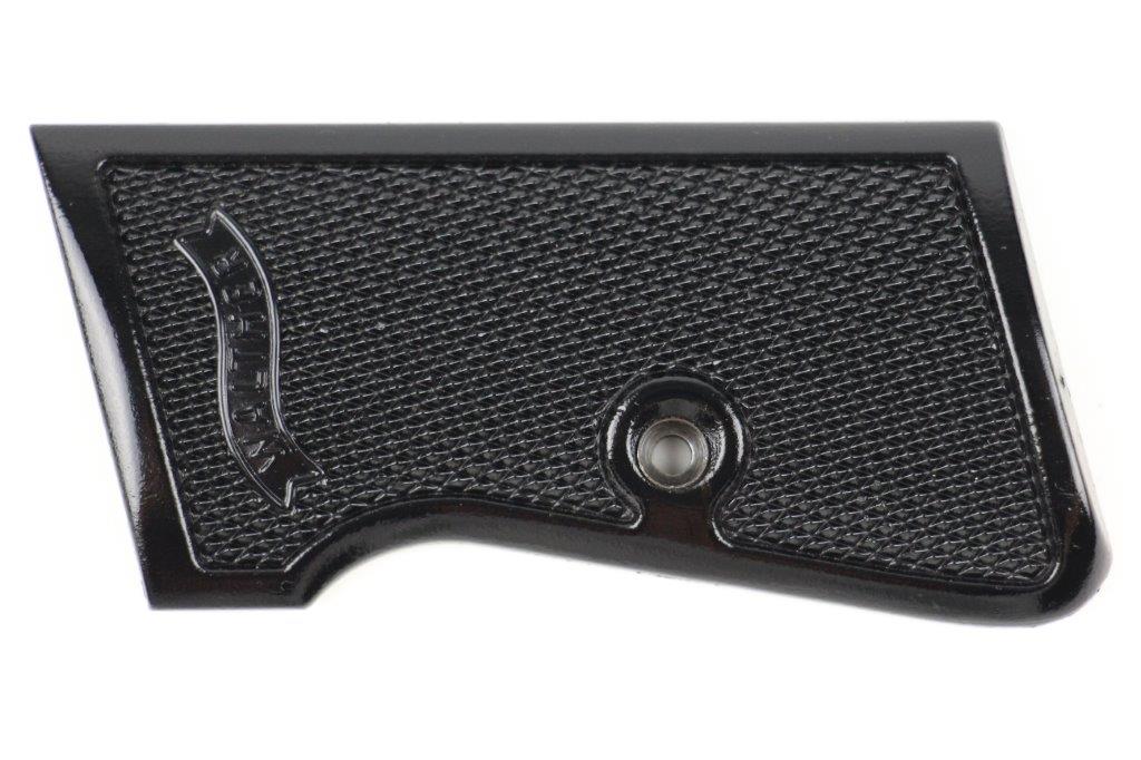 5/25/24 – This is a post WW2 production Walther PP magazine and pair of grip panels. The magazine is excellent with nice original finish and no rust or pitting. Fully functional spring. The grip panels have a few mild surface scuffs but no cracks or chips, and a strong diamond pattern on each panel. Each panel has a Walther banner at the top as well. These would fit a WW2 production PP, and make for a great “range set” or shooter pair / replacement.